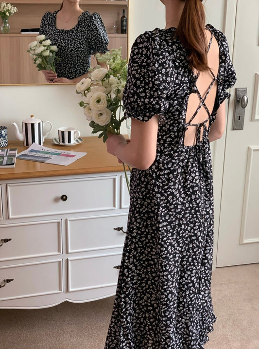 Sold outCriss Cross Tie Puff Sleeve Dress