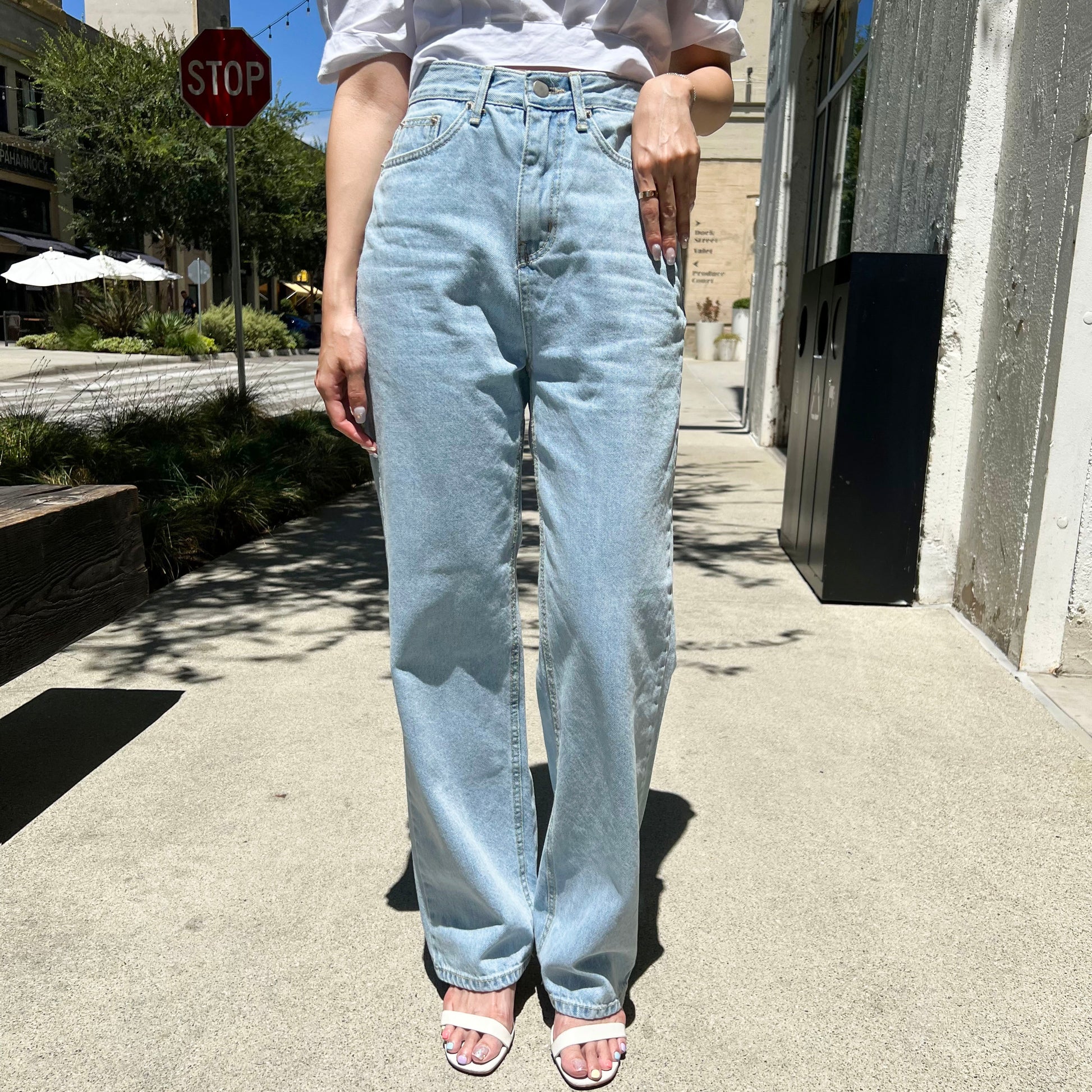This baggy jean is featured in a high-rise with straight-out silhouette.