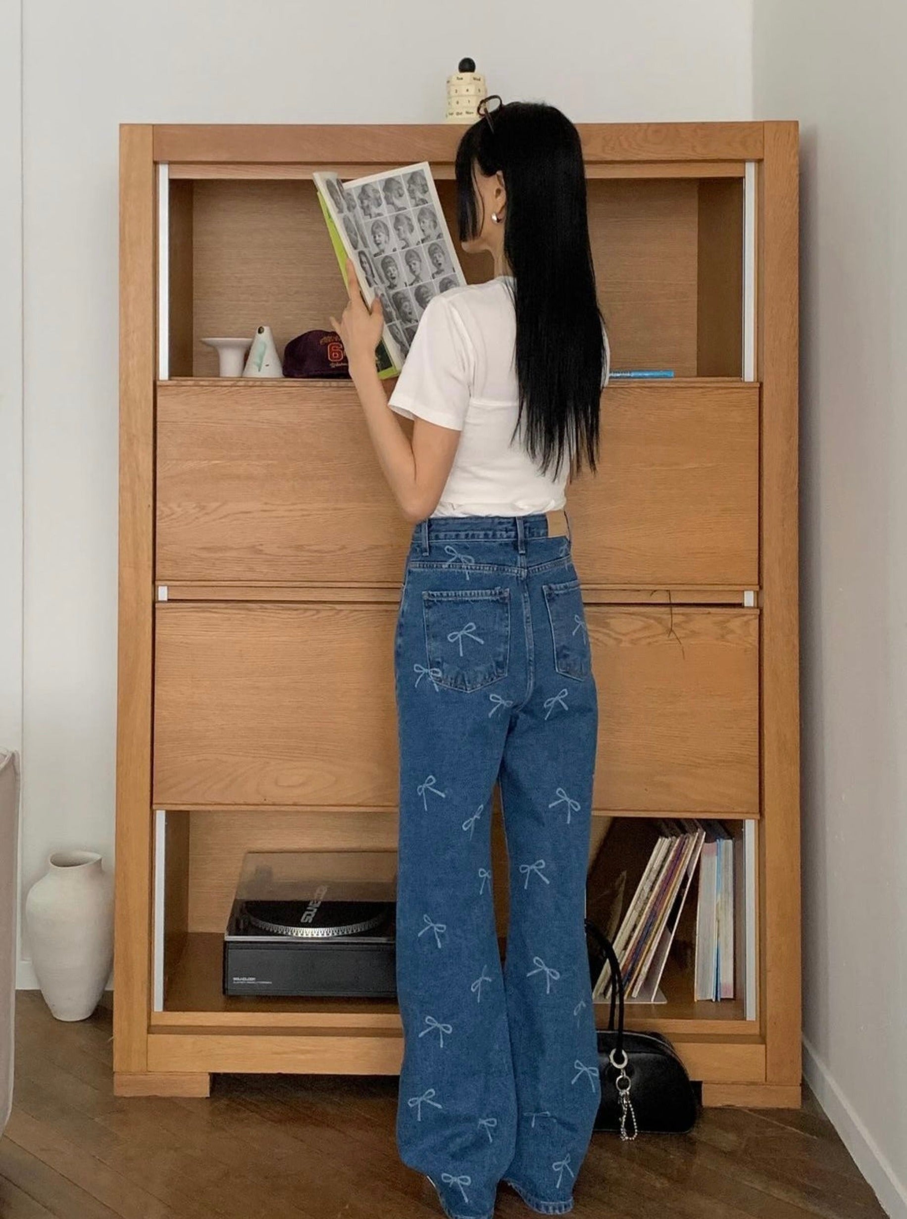 Looking for trendy pants for this year? Our bow print denim is here for you! Unique bow print that covers them from hip to ankle is perfect for anyone who wants to add a little personality to their wardrobe. Add our straight leg jeans with bow print to your cart today and get ready to turn heads wherever you go!
