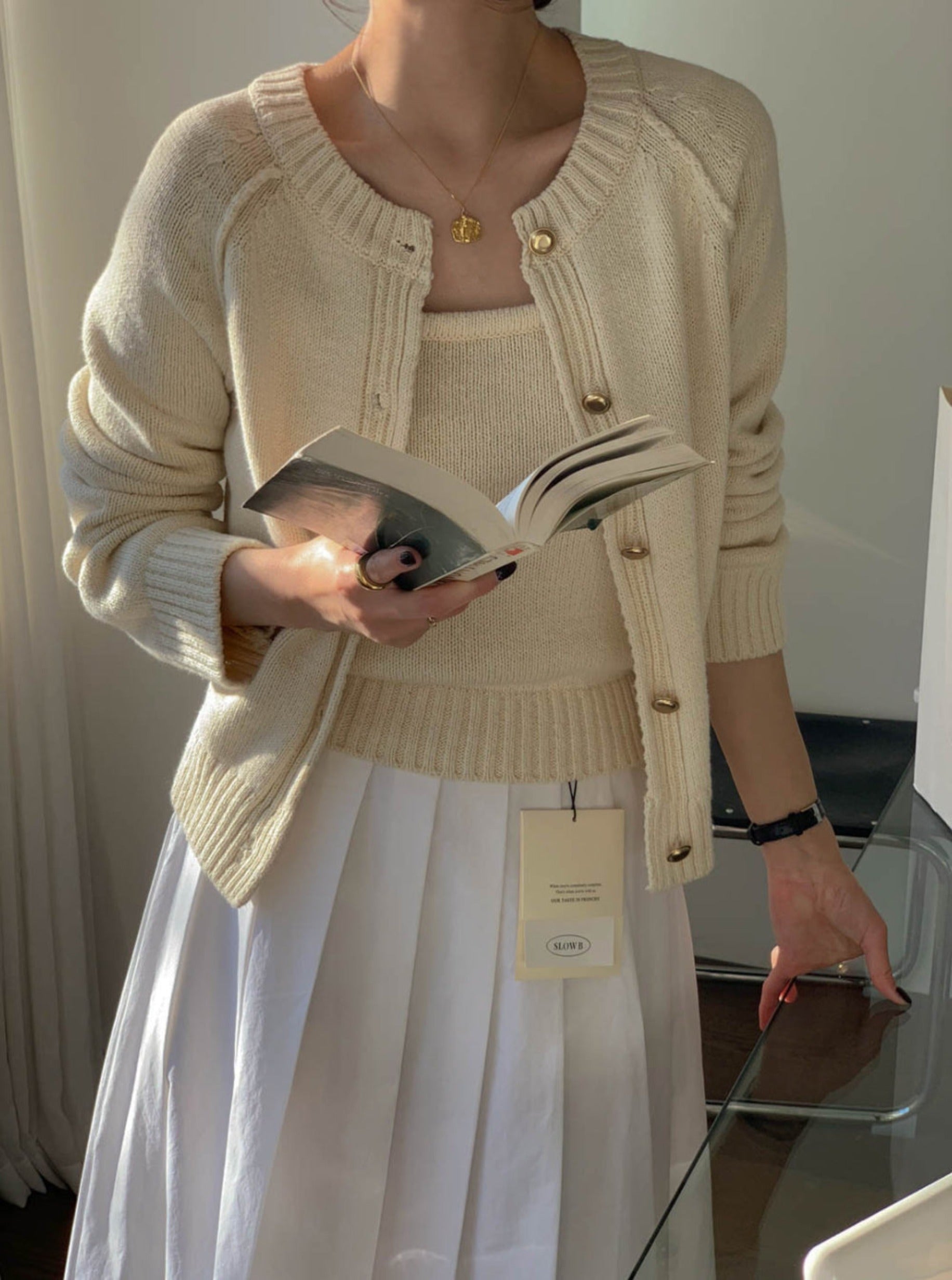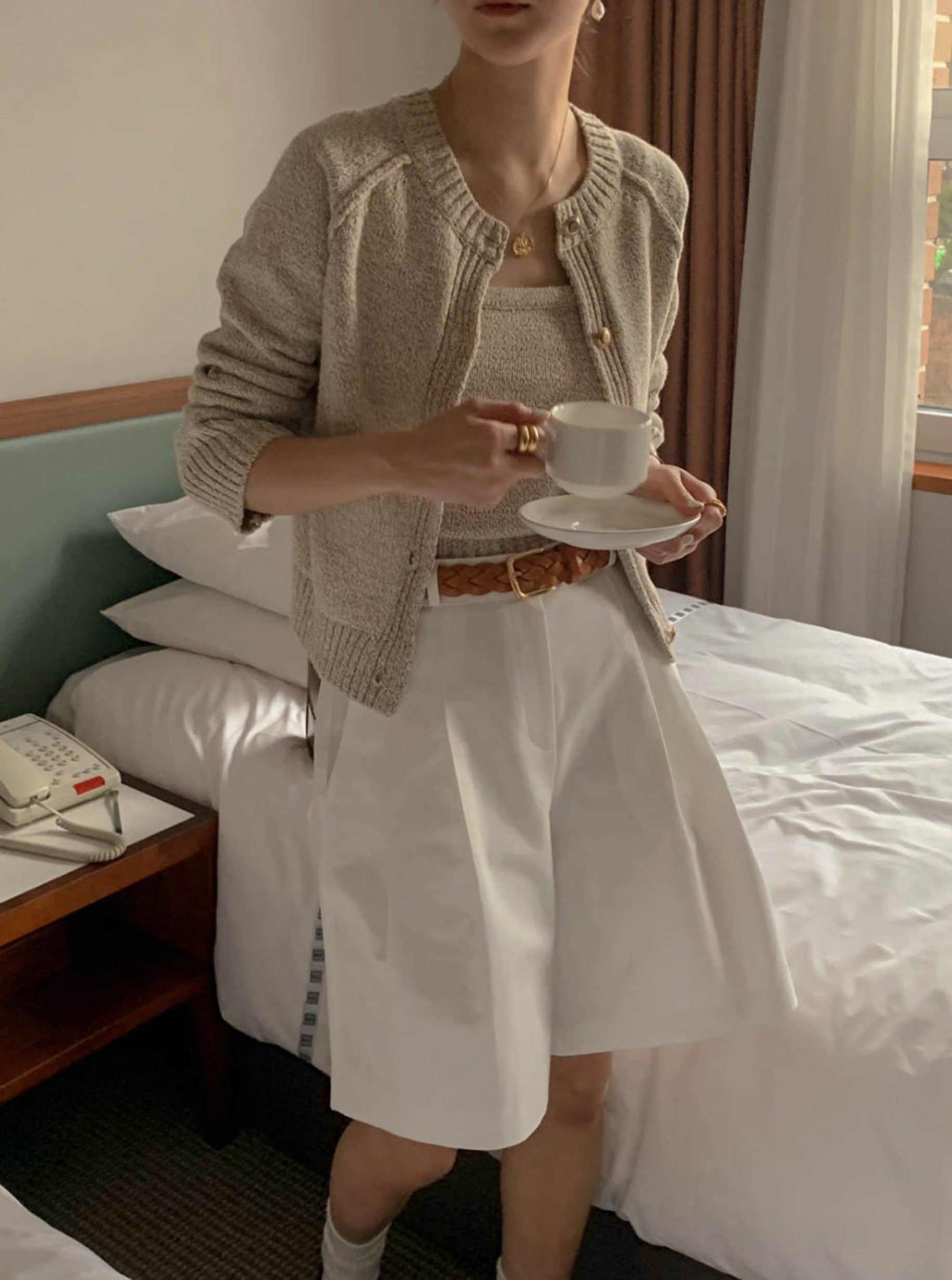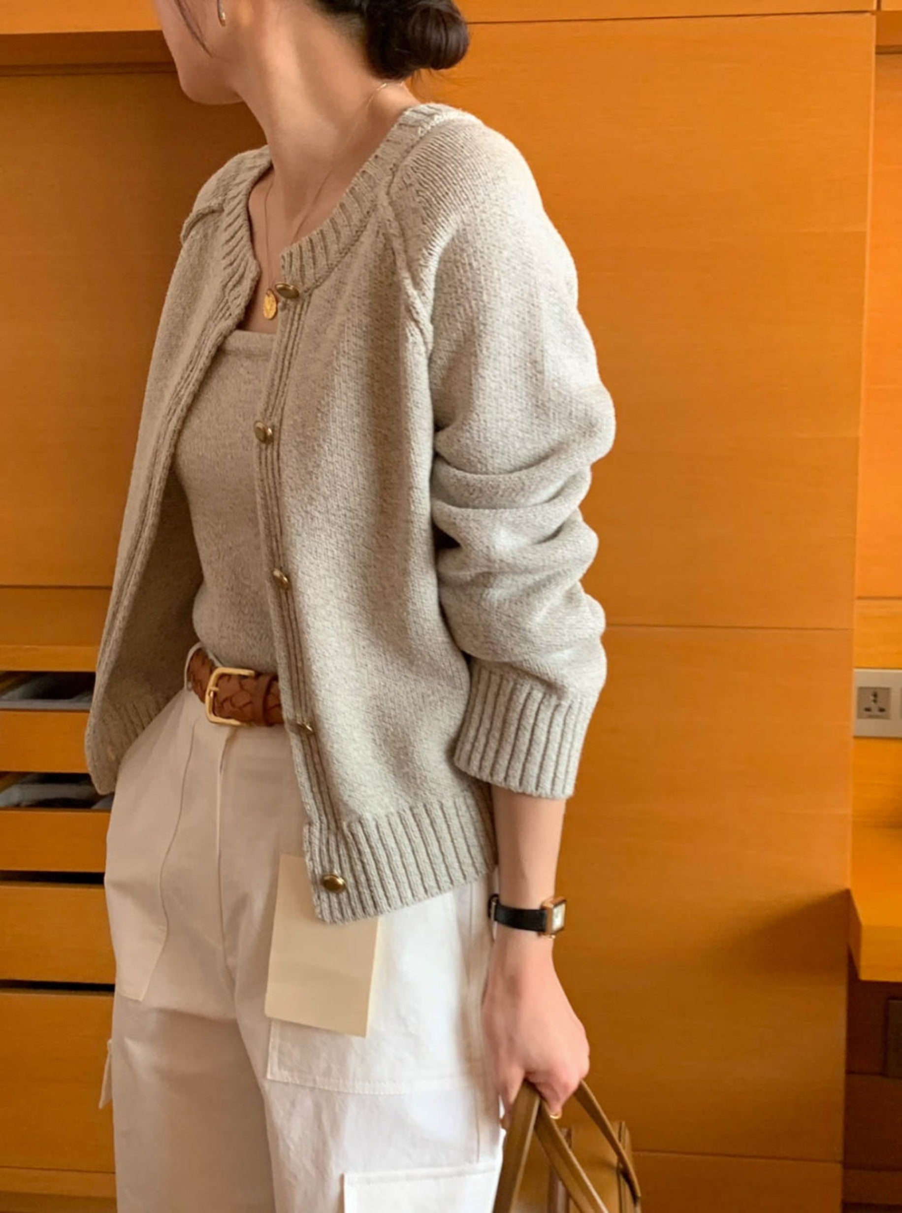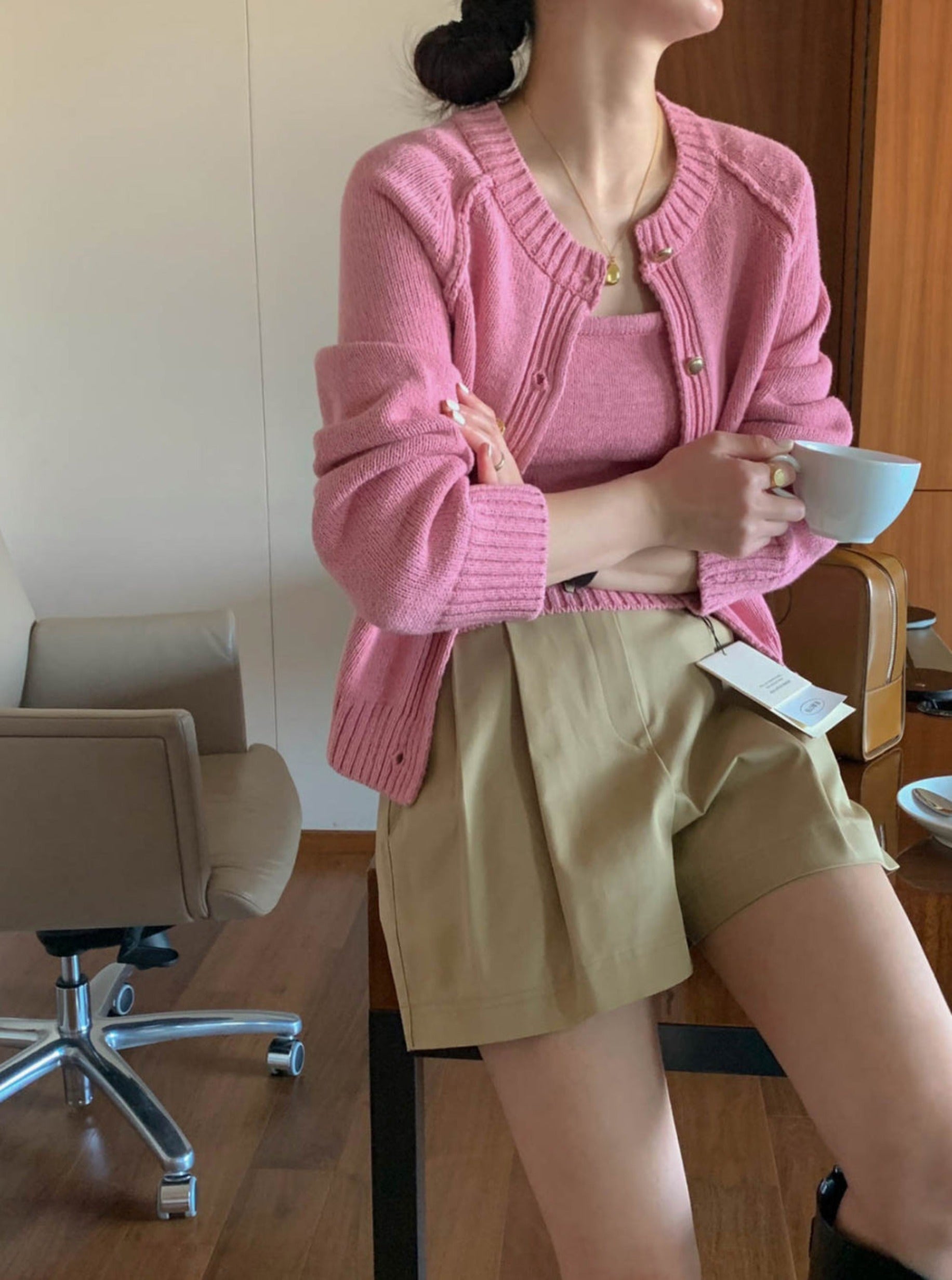 Cami and cardigan with soft knit fabric 2pcs set.