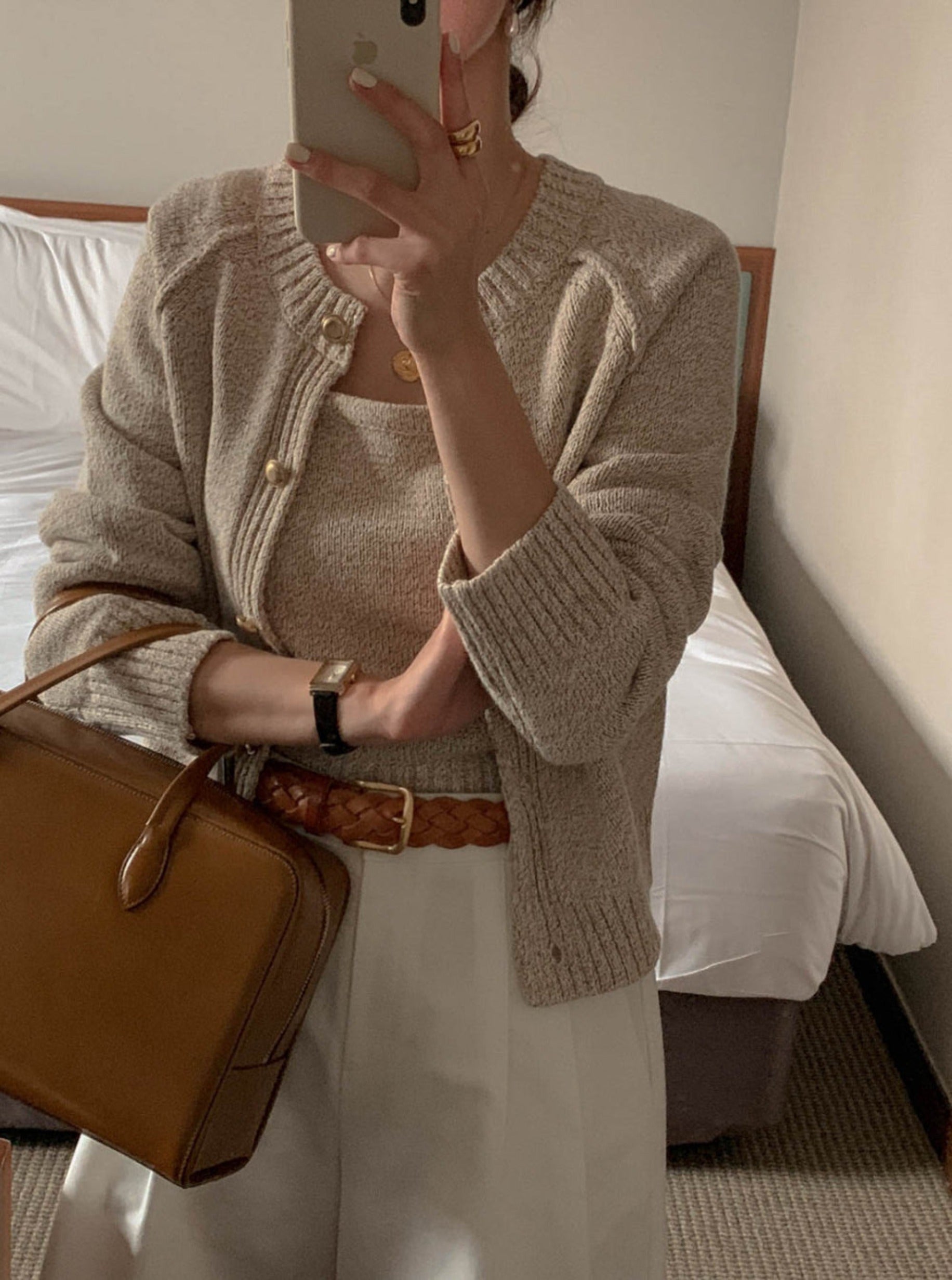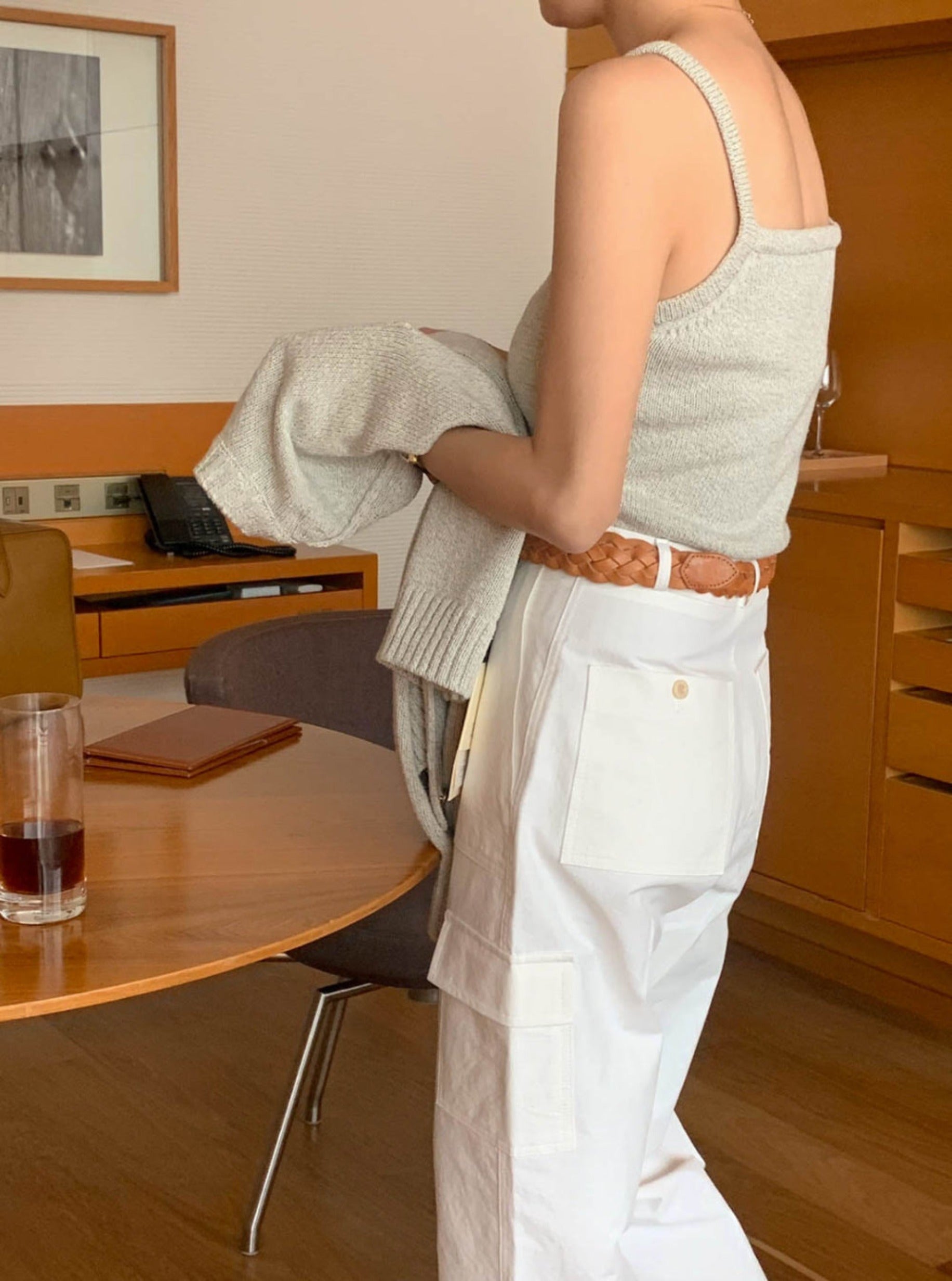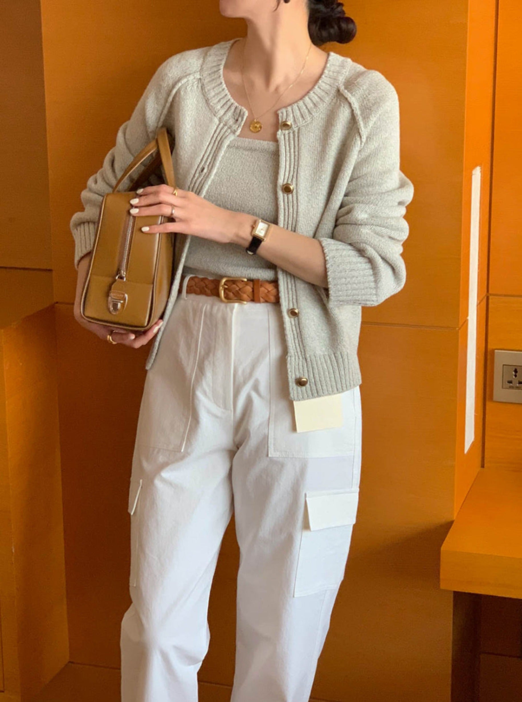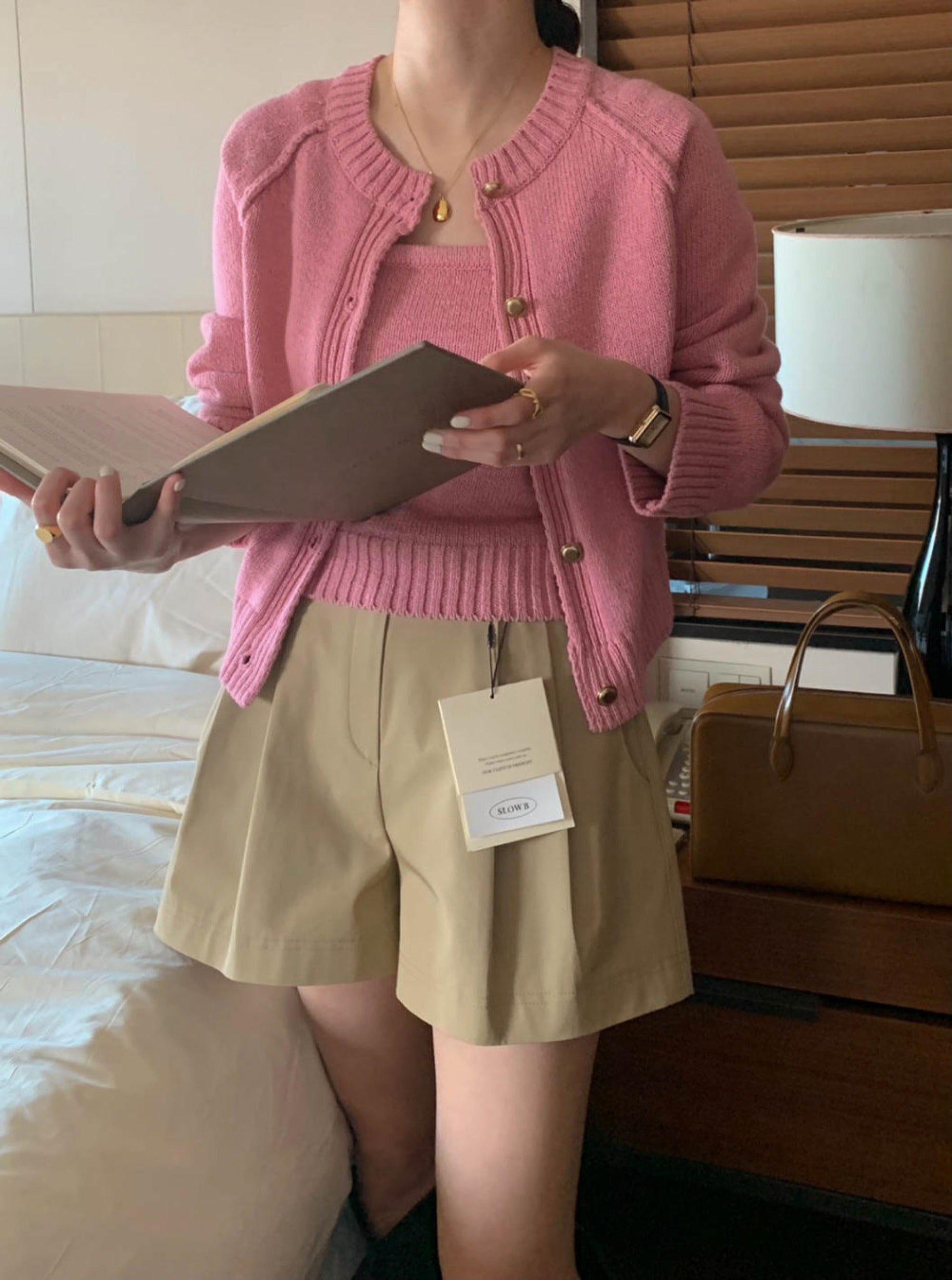 Cami and cardigan with soft knit fabric 2pcs set.