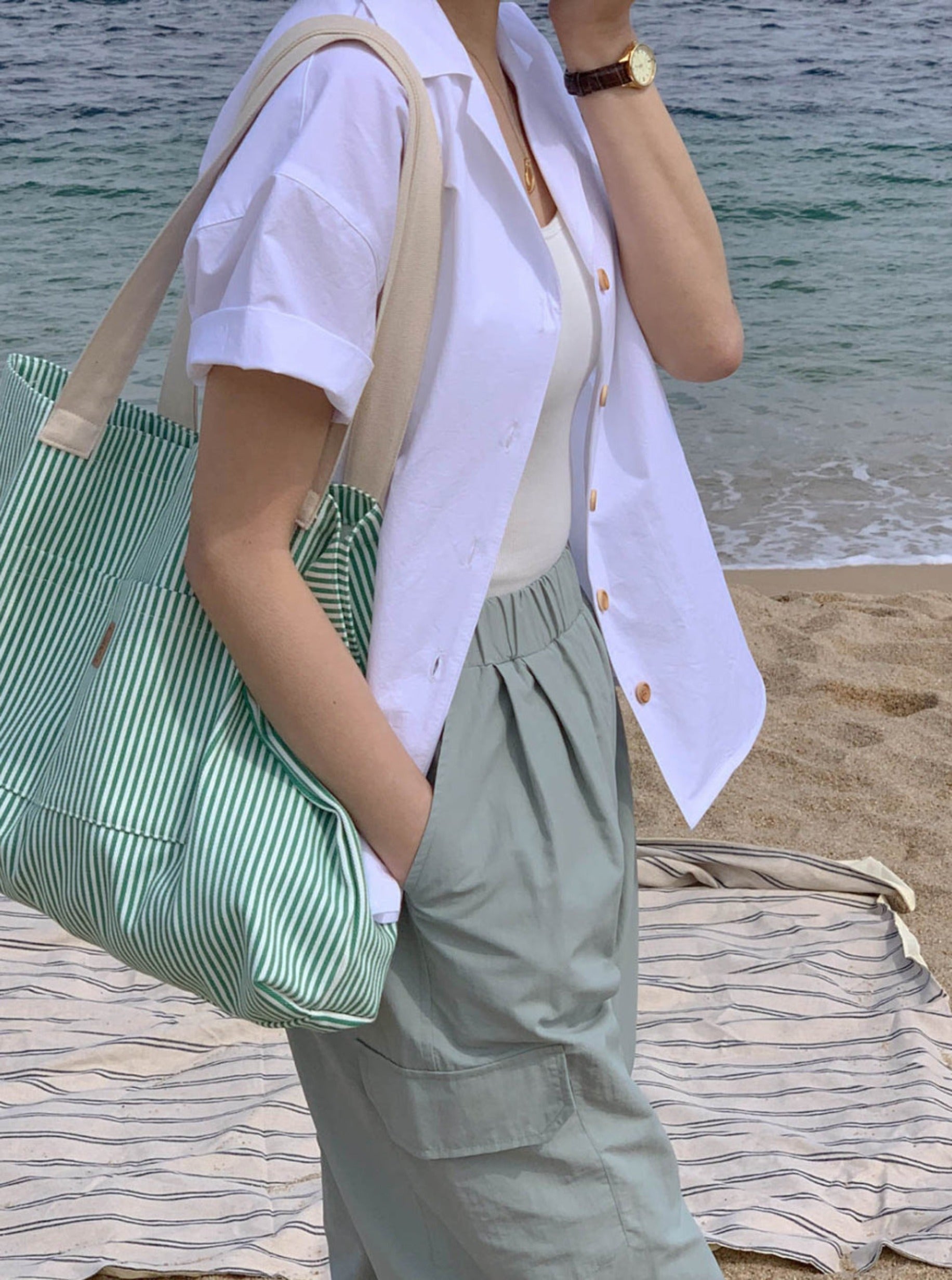 Relaxed fit, Elastic waist, Two-way, string at the bottom , Pockets