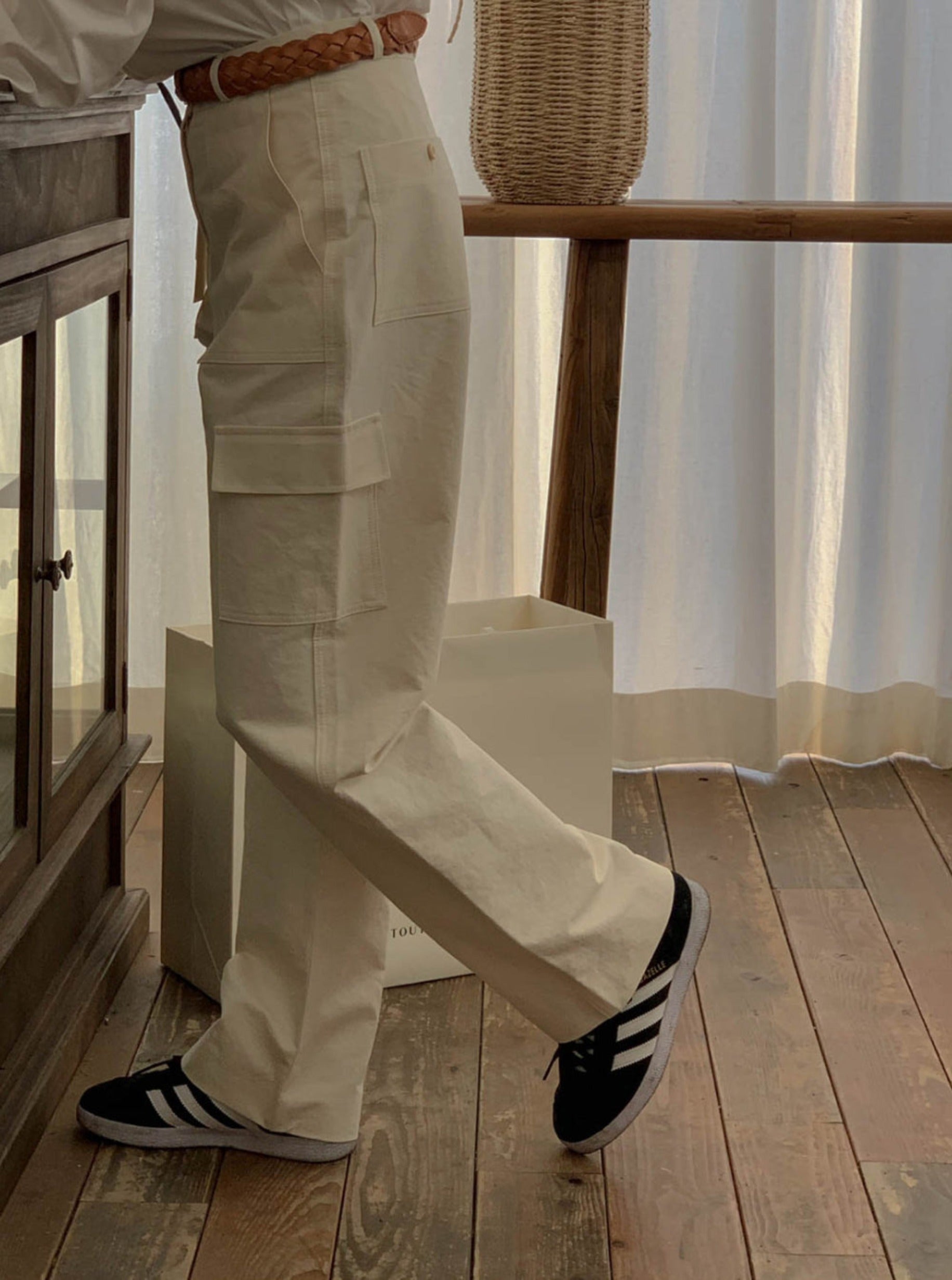 This cargo pants is featured in a high-rise, straight-out silhouette with multi pockets.