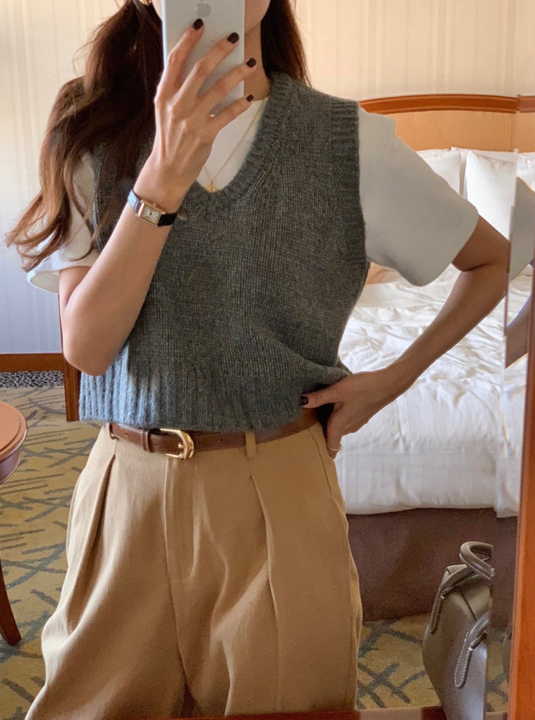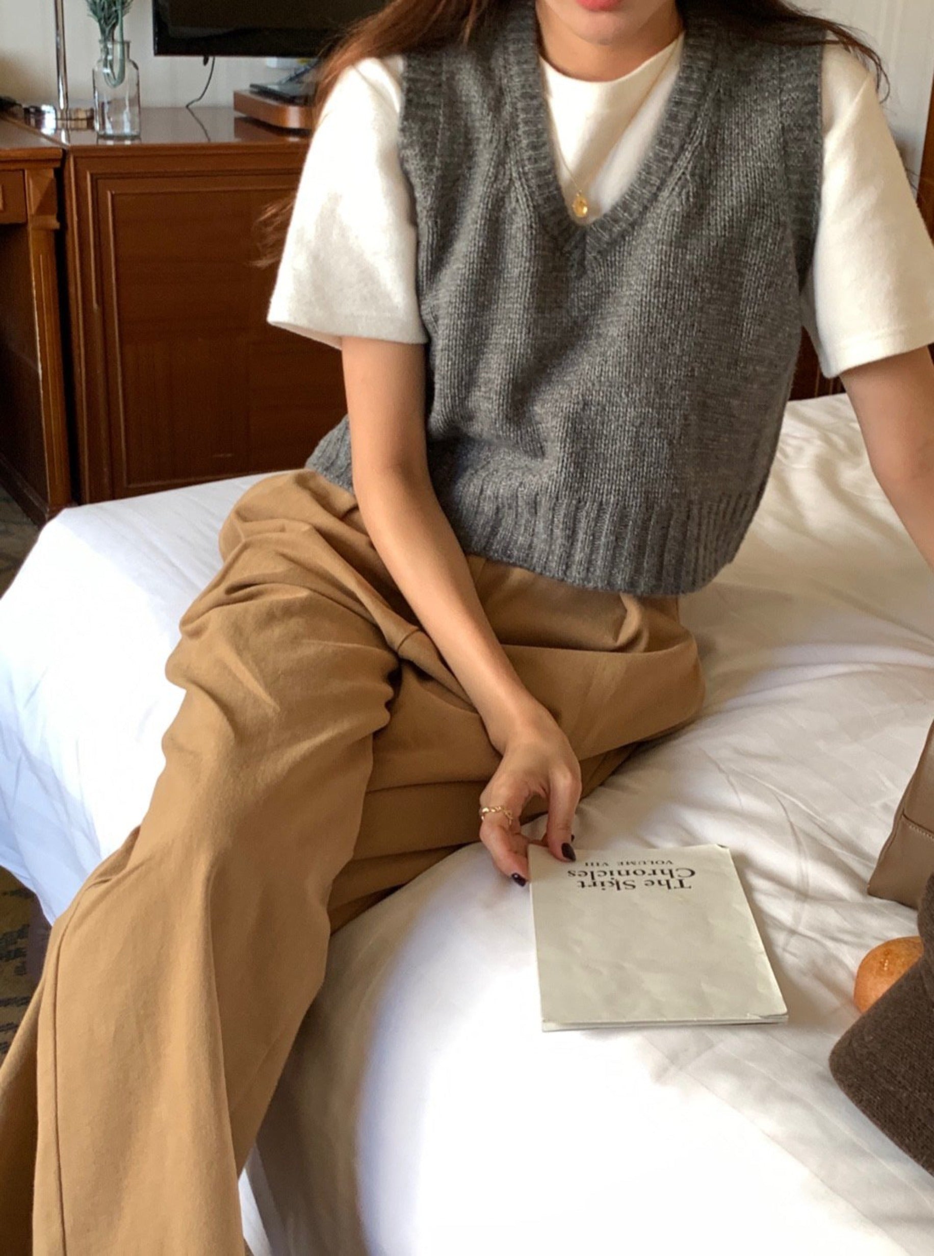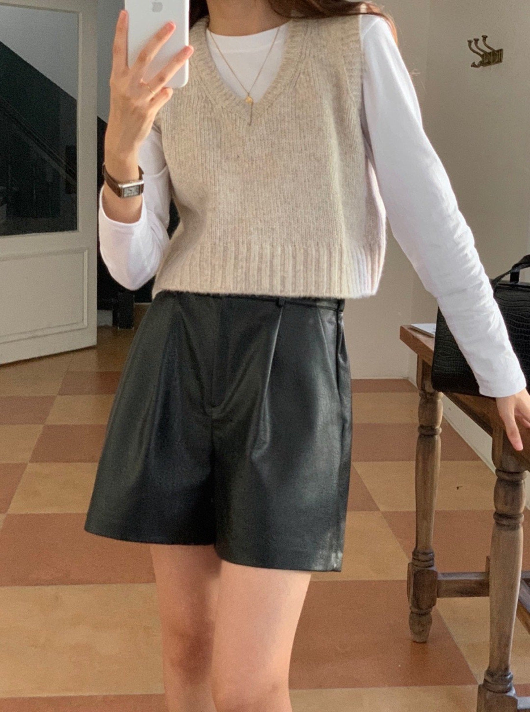 This crop vest will makes you warm and comfortable during this fall season. Featuring a v neck, crop length with loose fit . Layering with short sleeve or long sleeve top for a fashionable look.