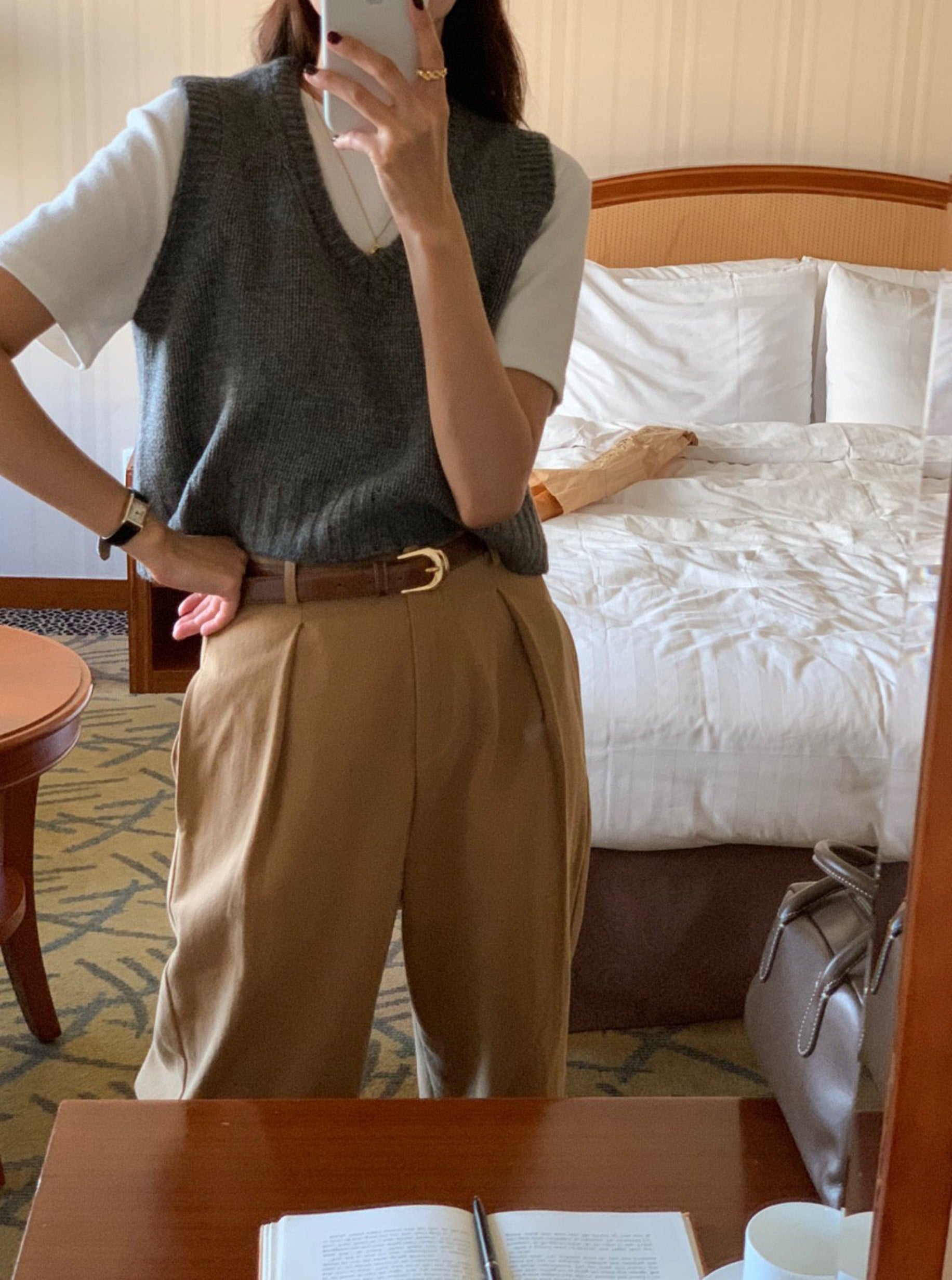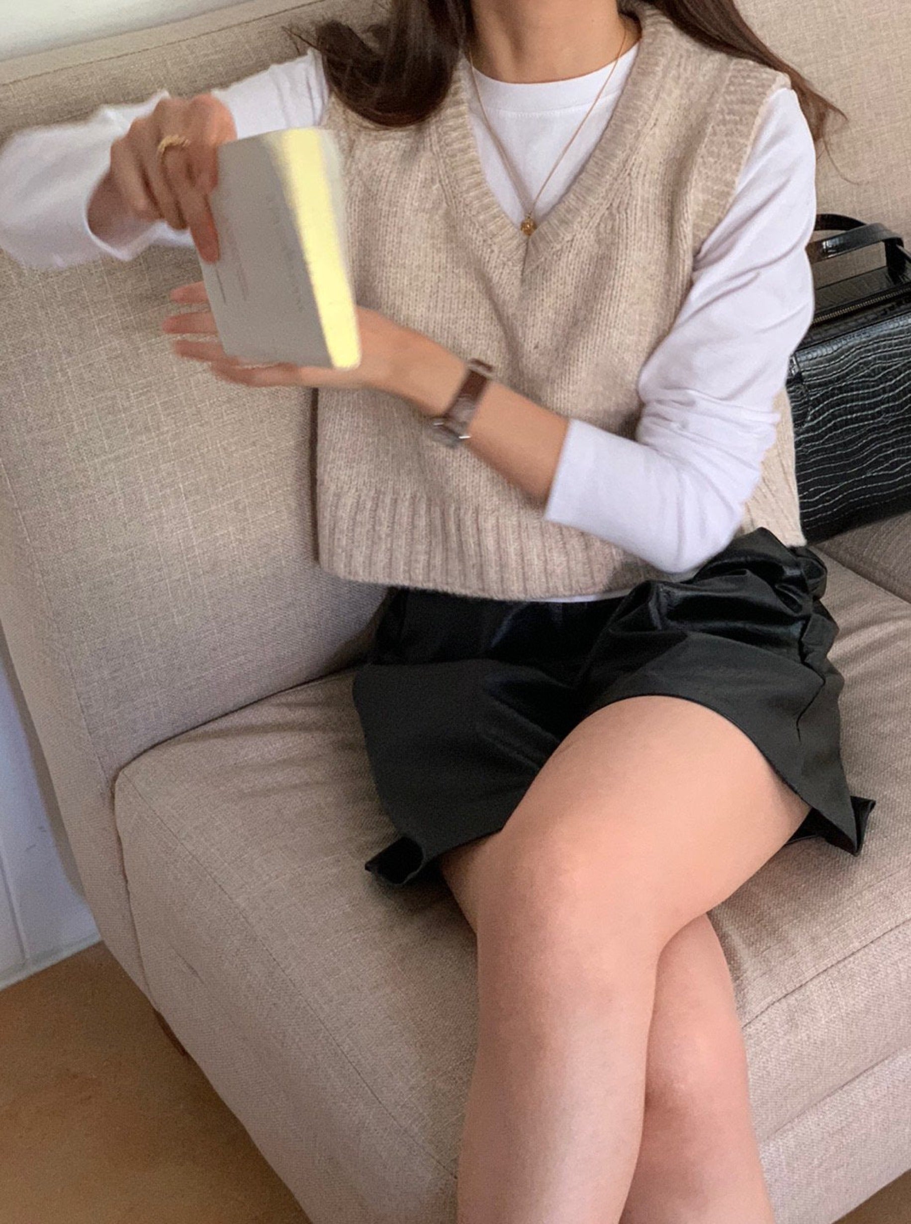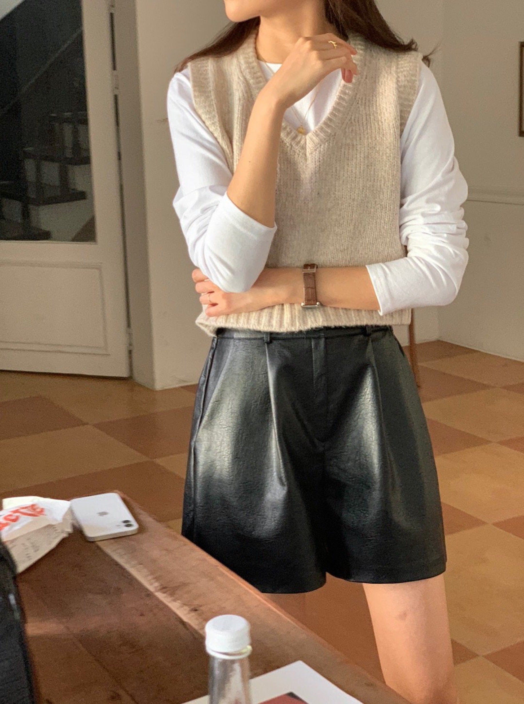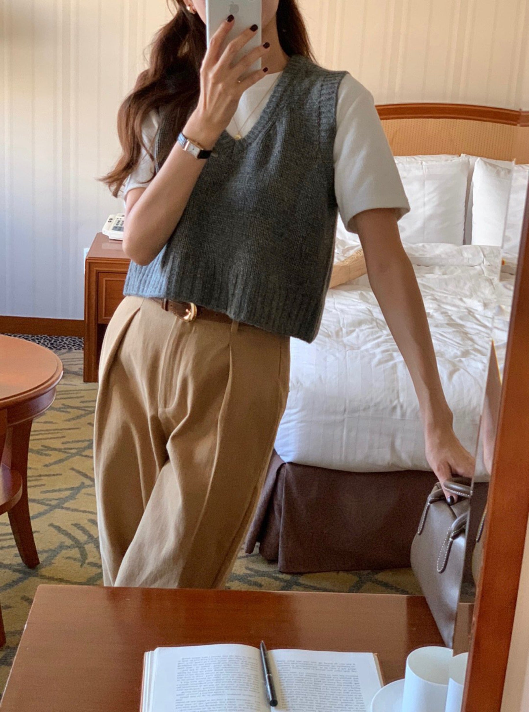 This crop vest will makes you warm and comfortable during this fall season. Featuring a v neck, crop length with loose fit . Layering with short sleeve or long sleeve top for a fashionable look.