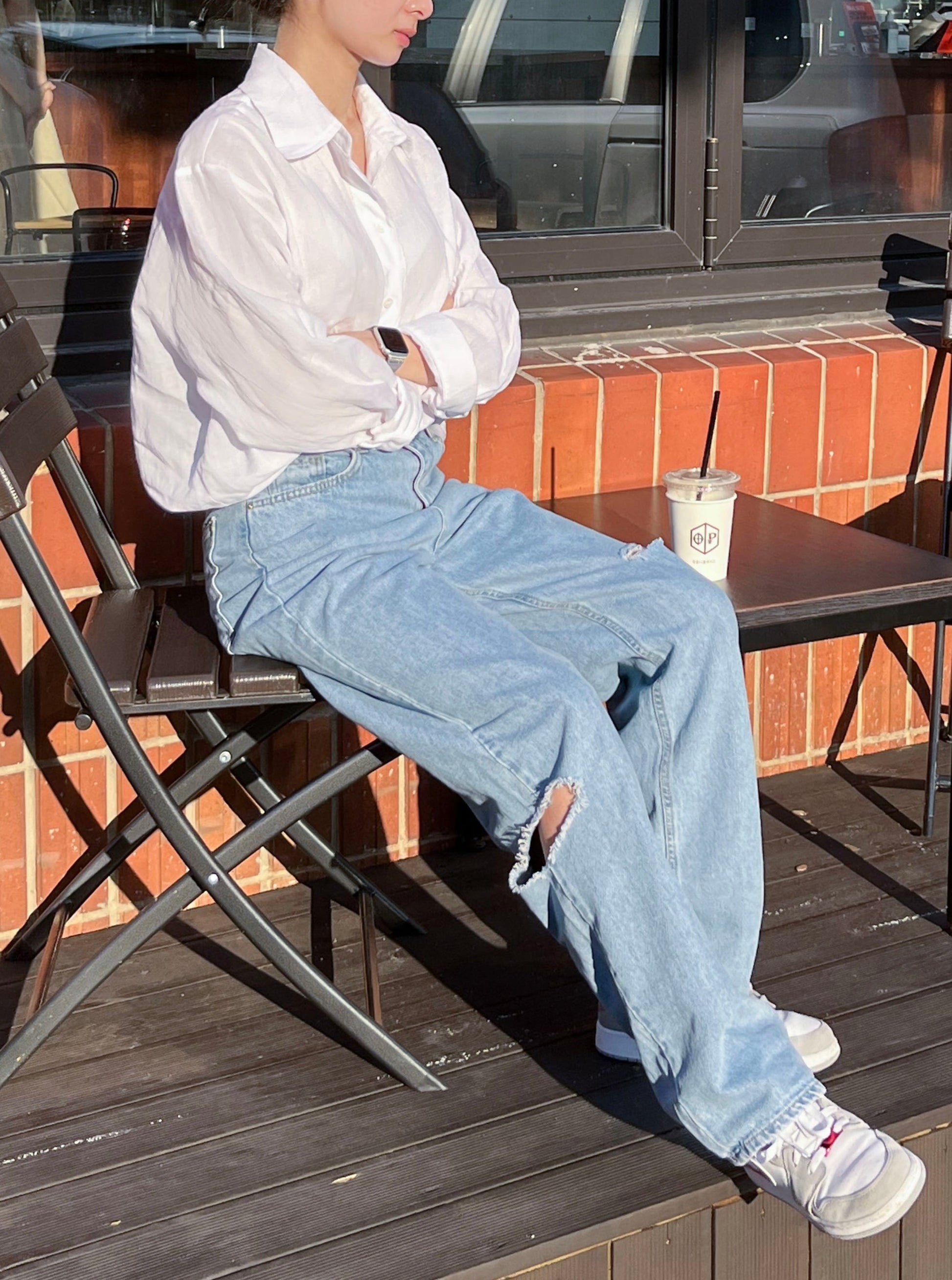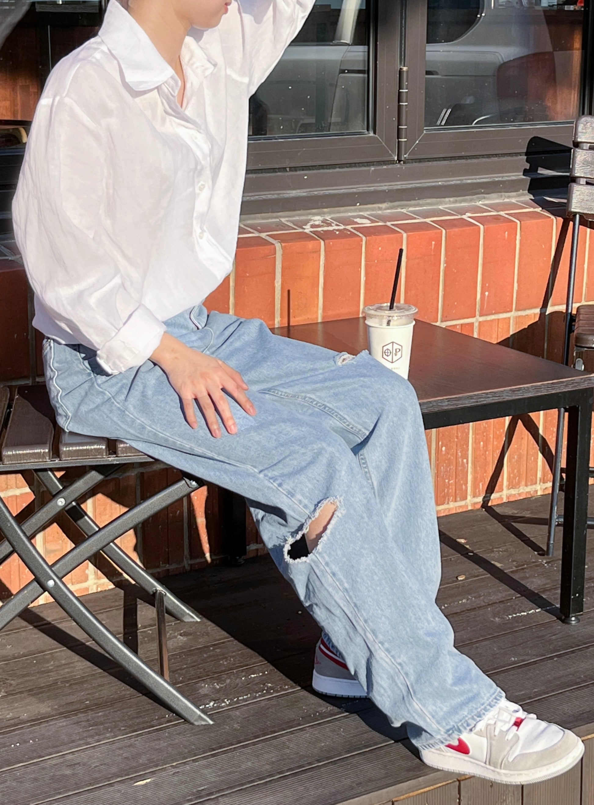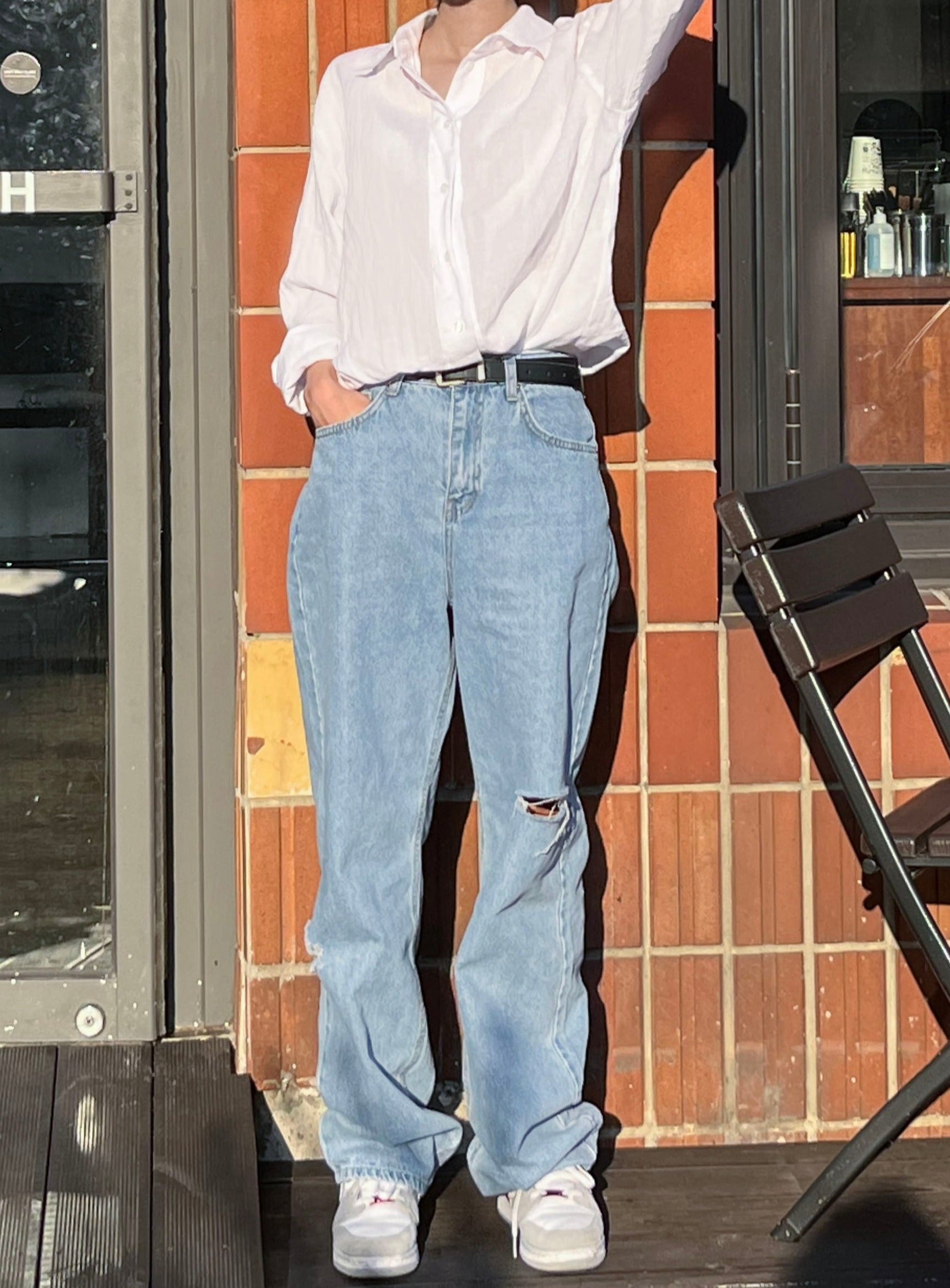 This baggy jean is featured in a high-rise with straight-out silhouette.
