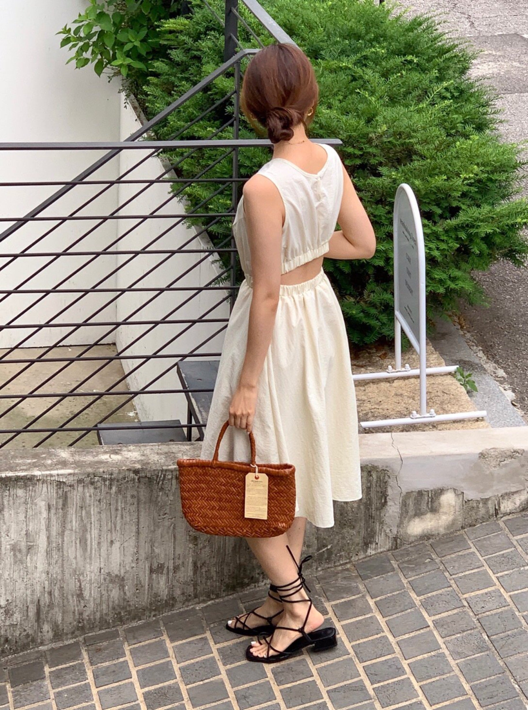 Back cut out, Round neck , Elastic waist, Sleeveless, Back button