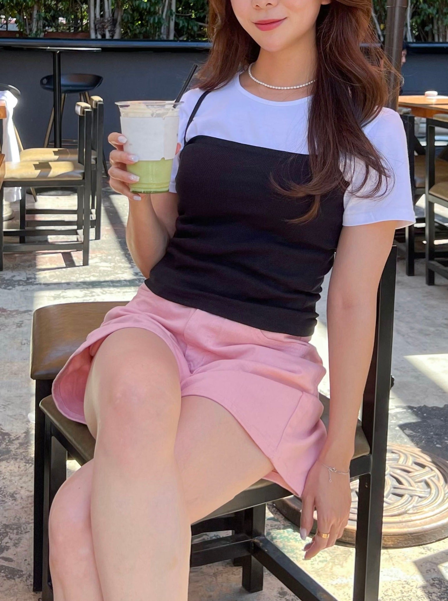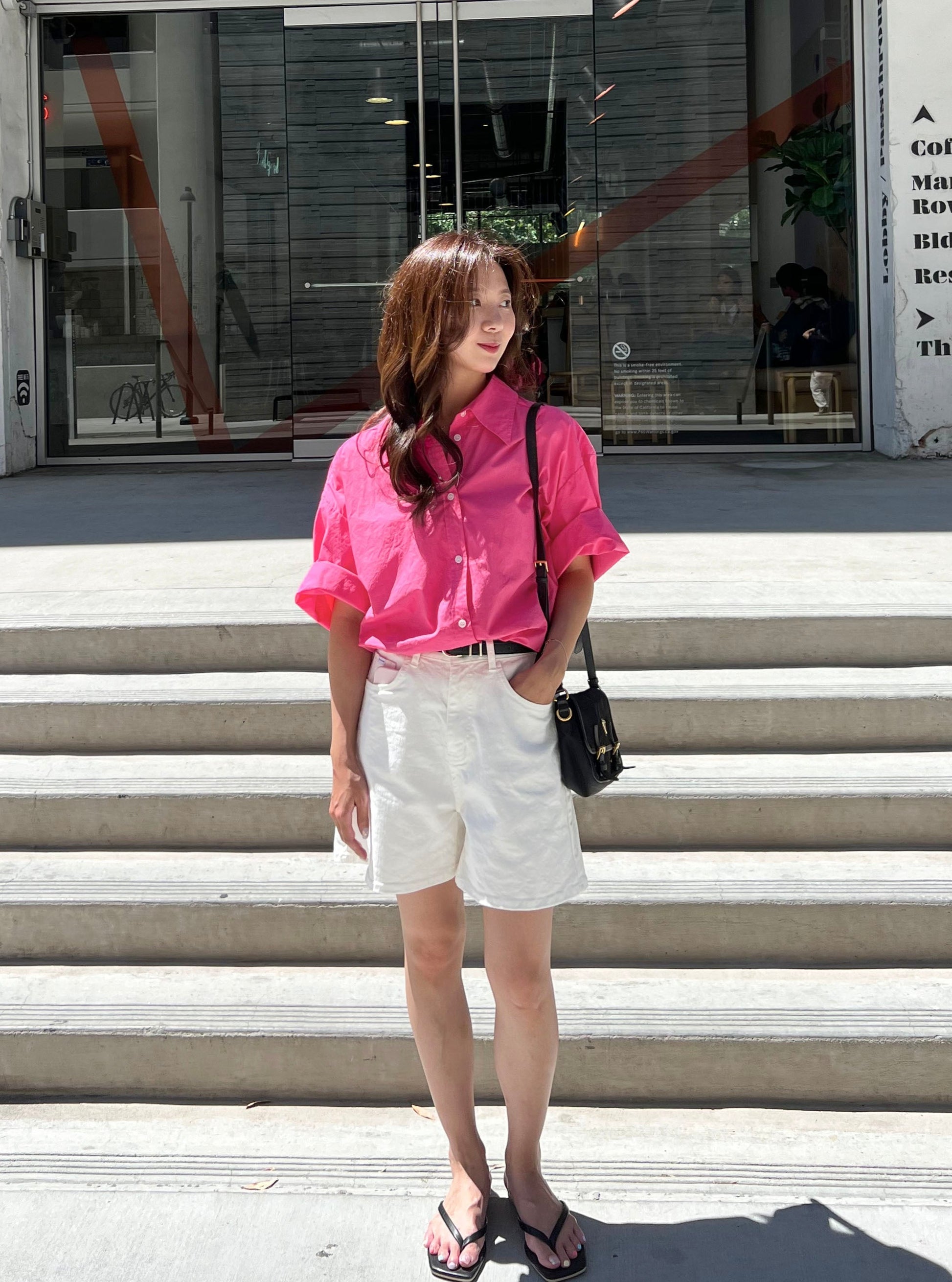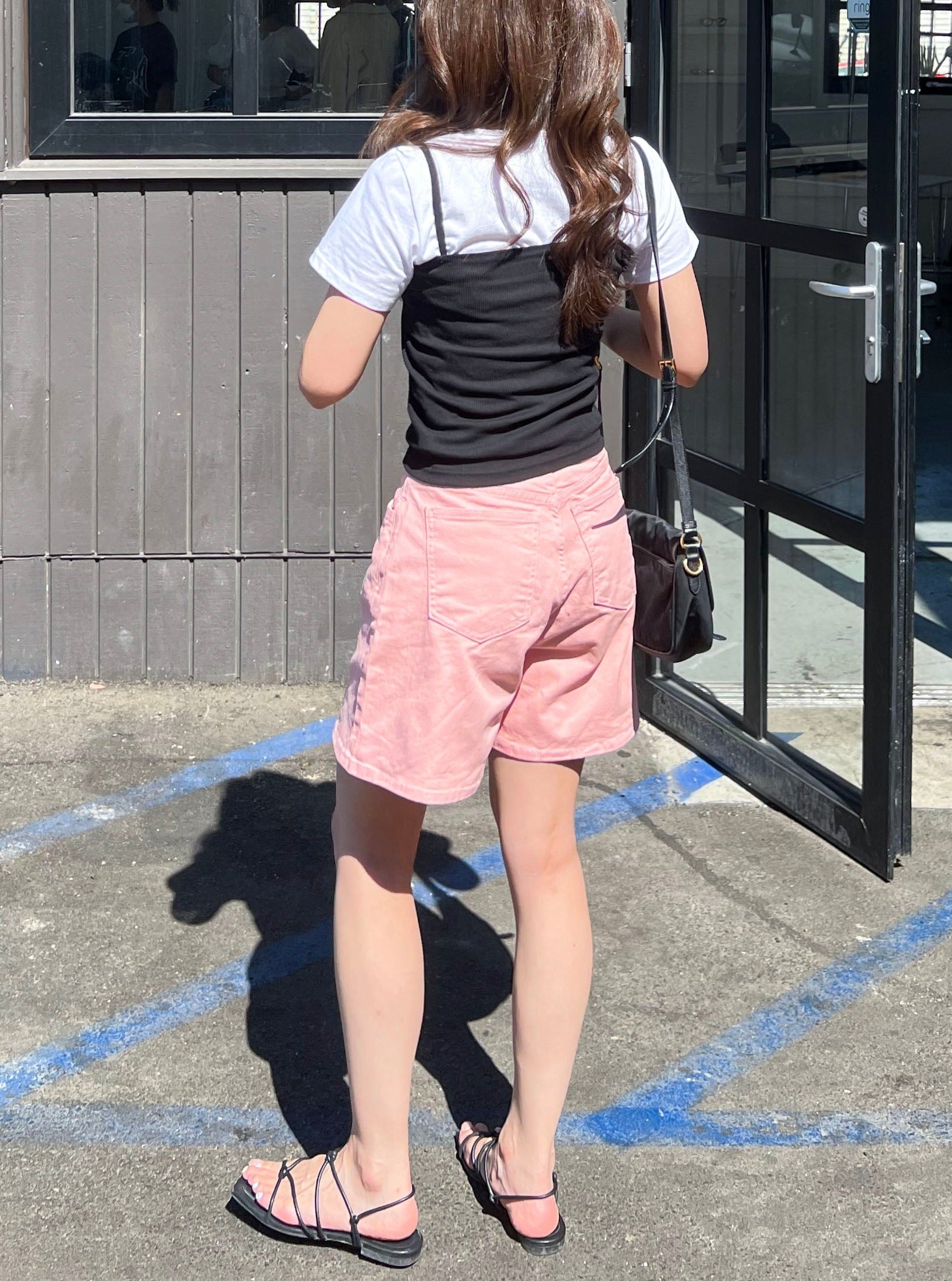 This washed shorts is featured in a high-rise with a-line silhouette.
