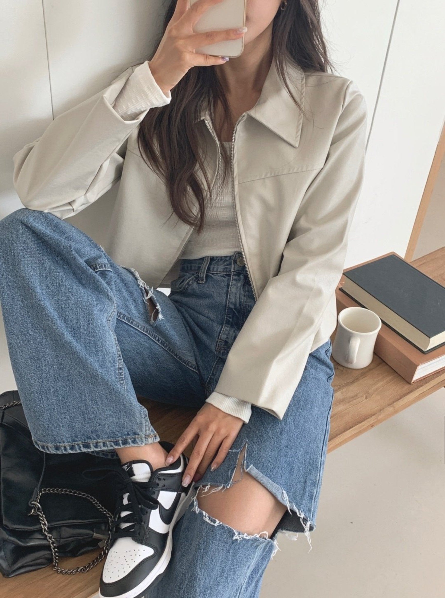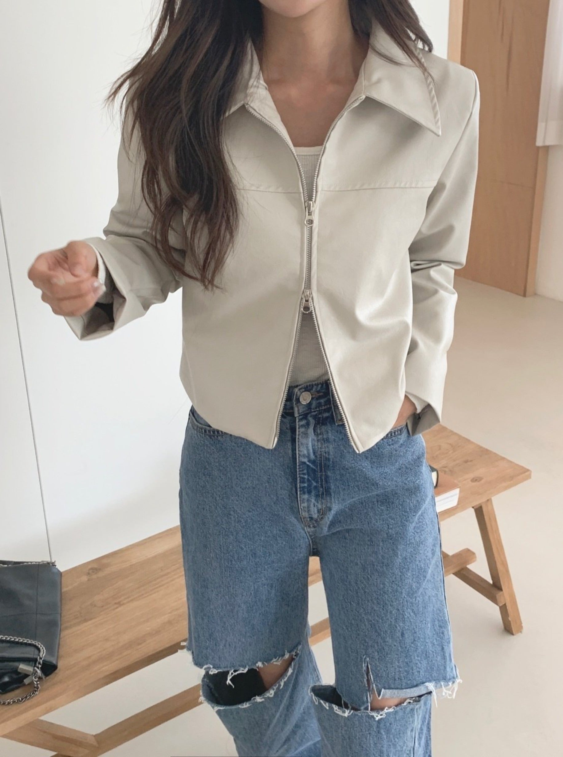 Two-way zipper, Loose fit, Long sleeve, Collar neck