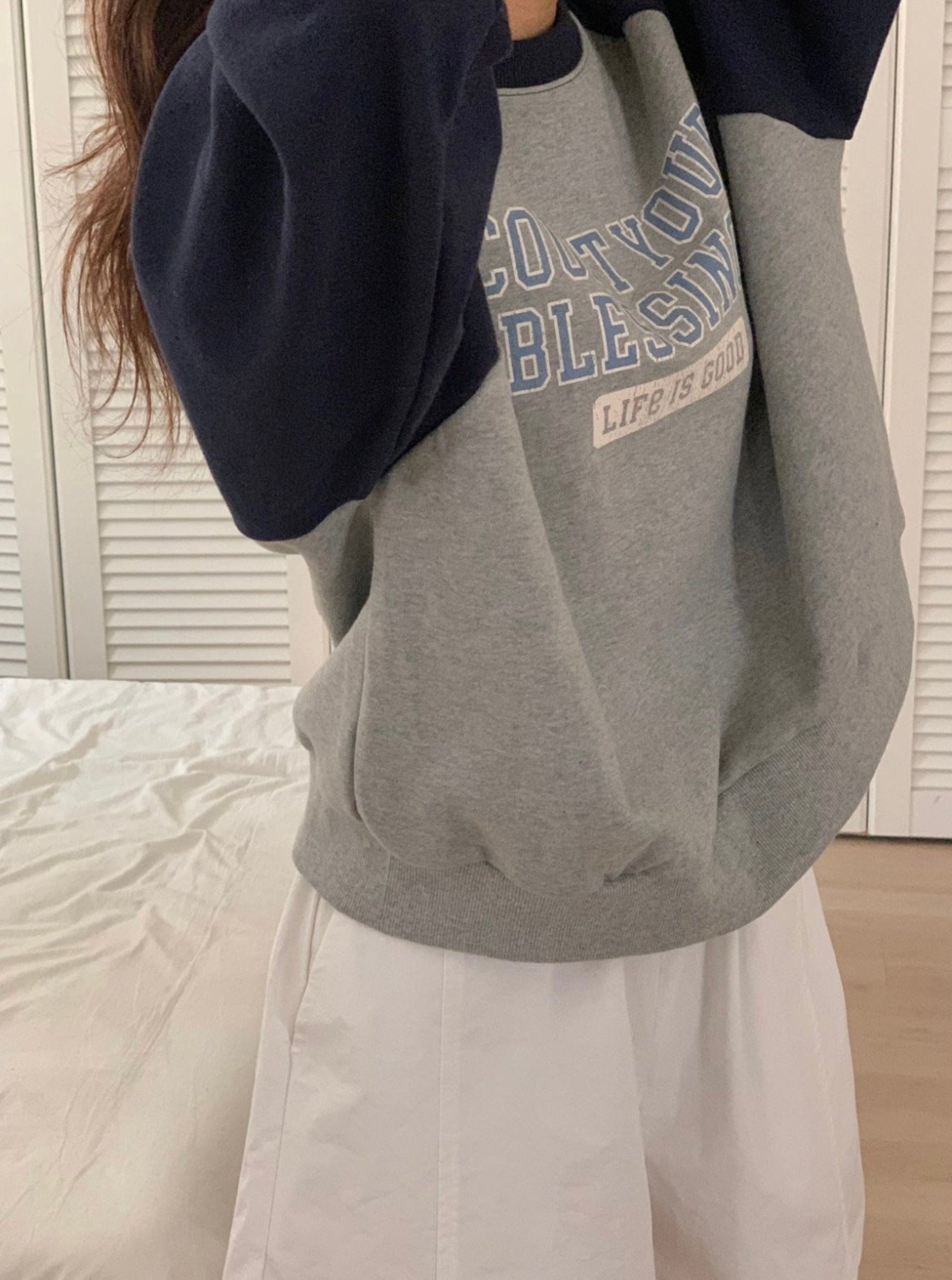Round neck , Loose fit , Raglan long sleeve, Letter print