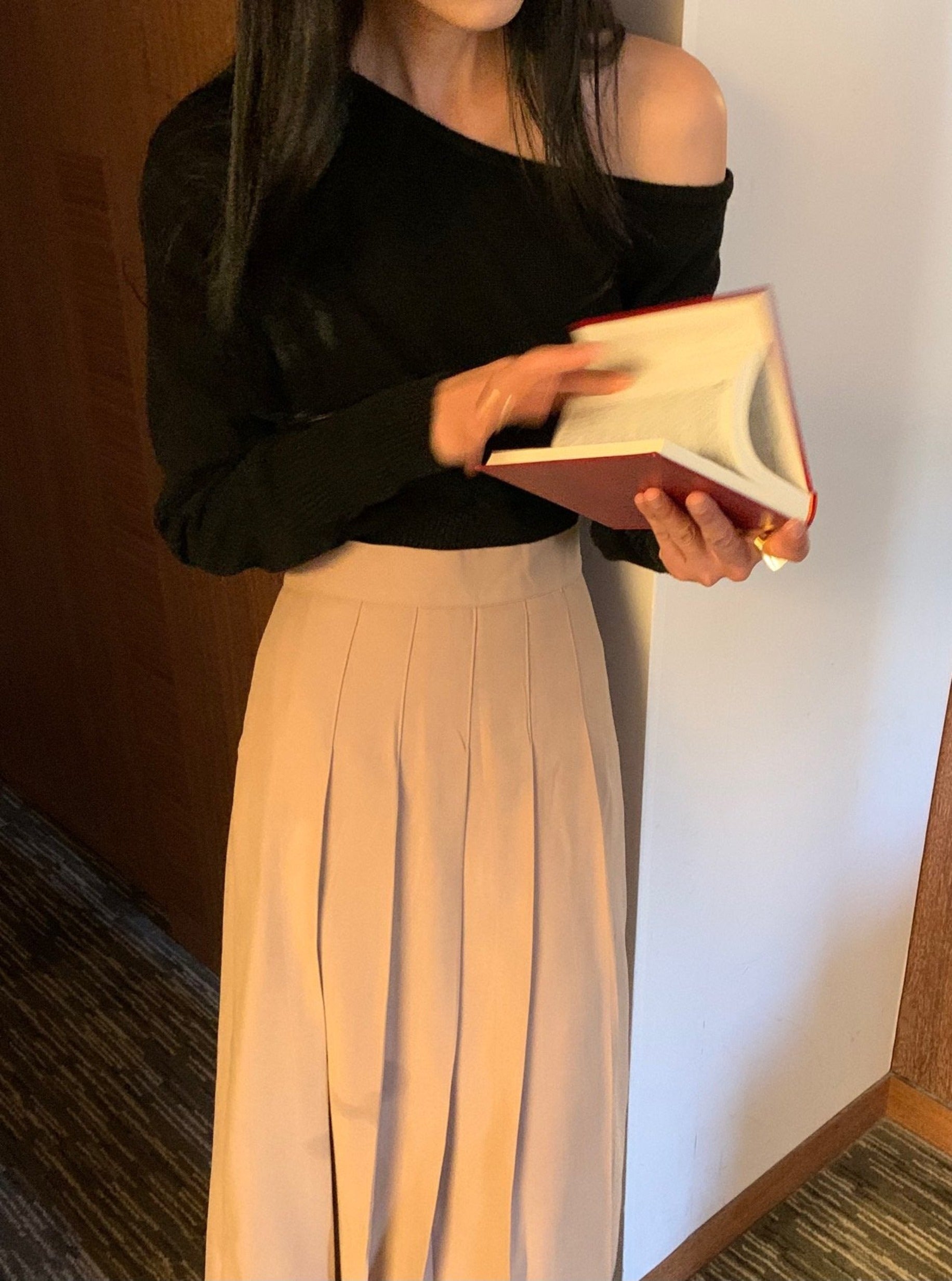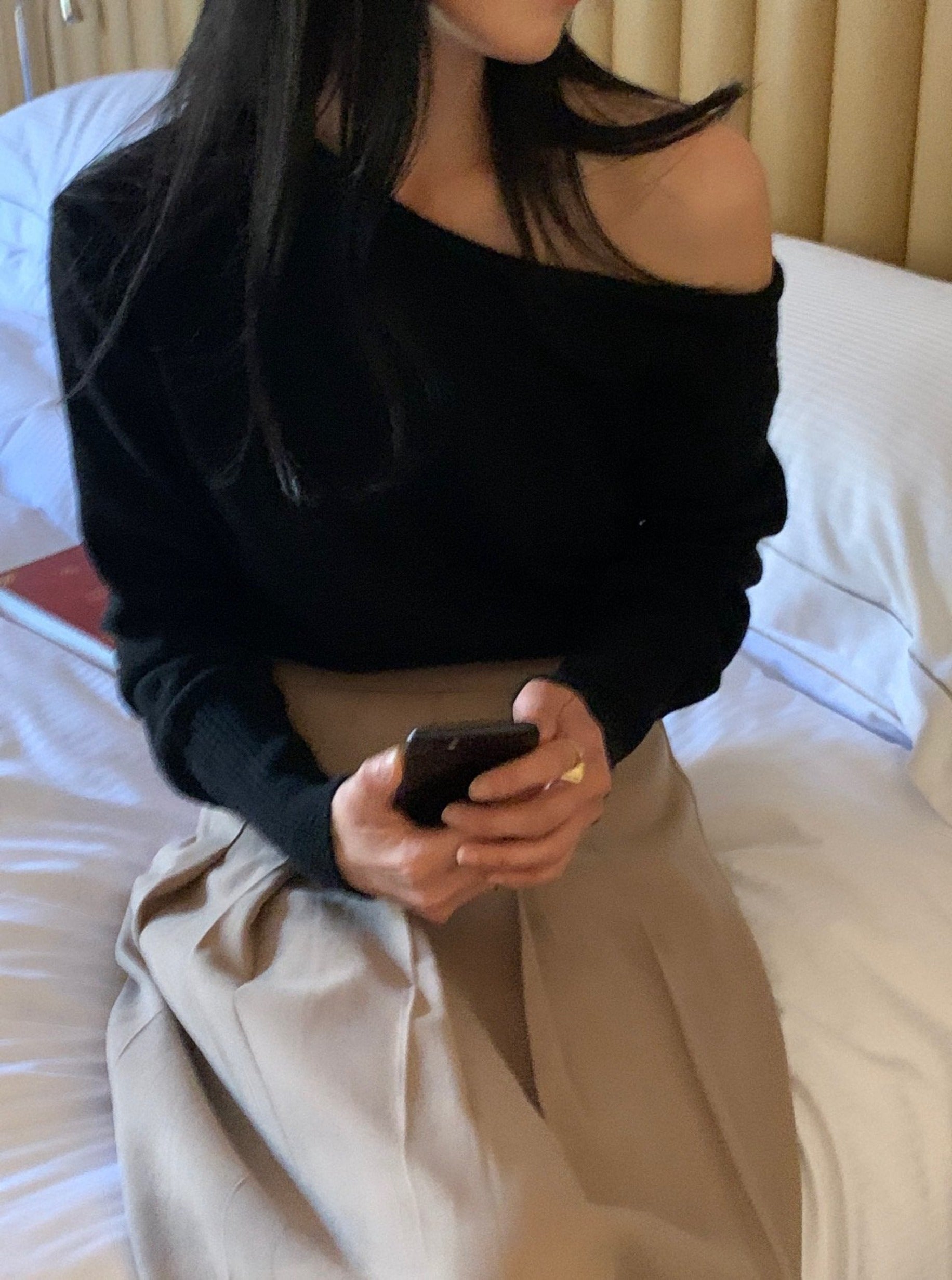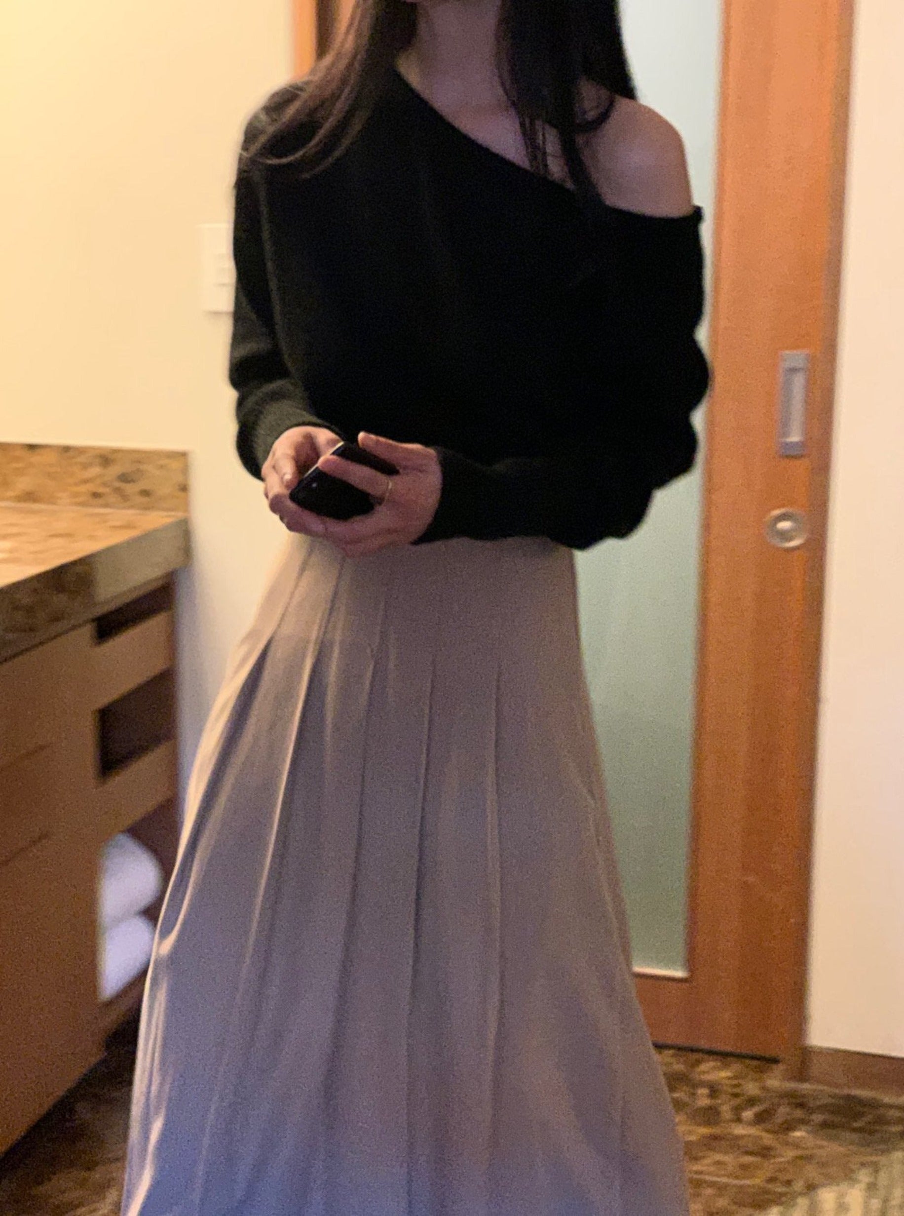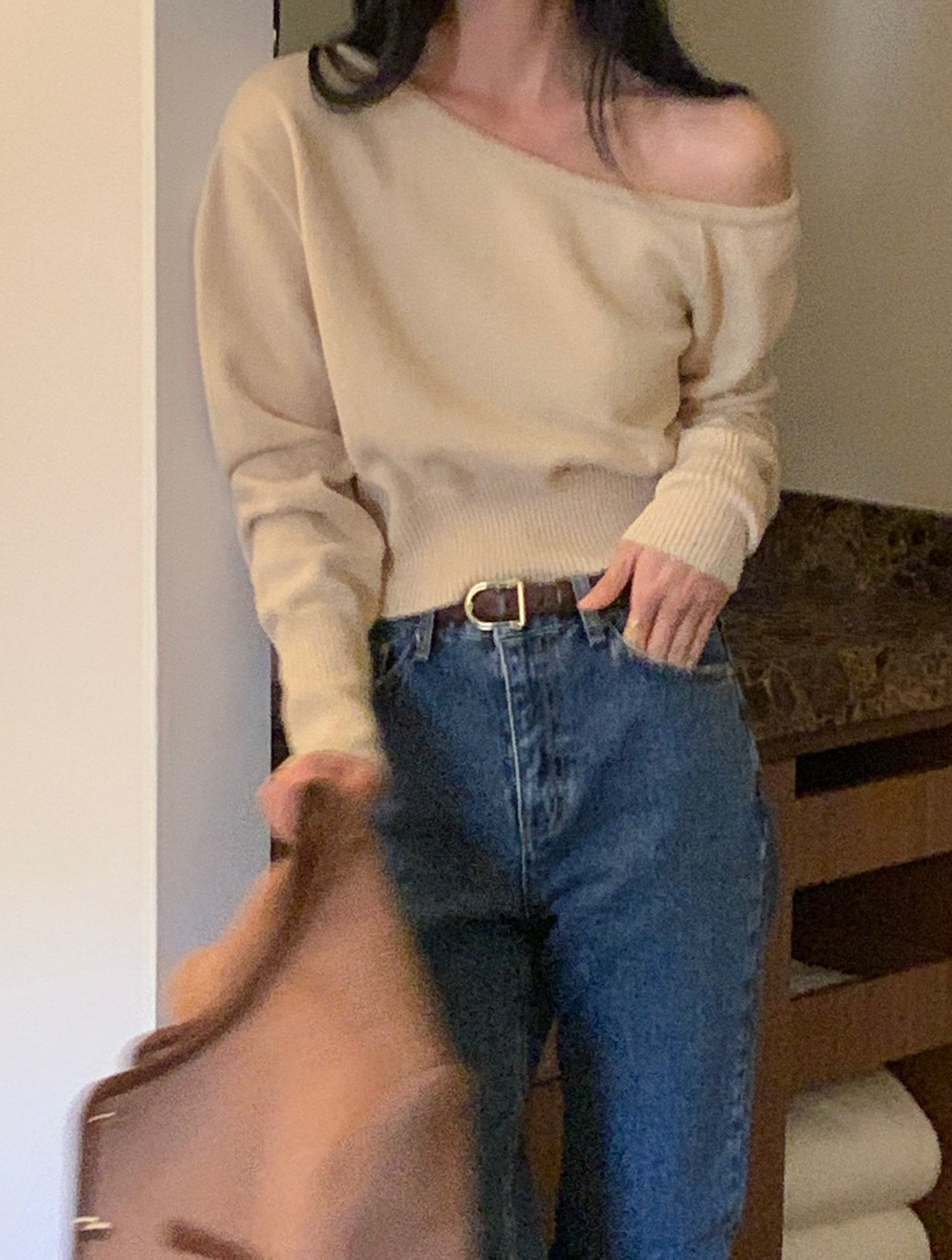 Relaxed fit, Boat neck , One shoulder, Long sleeve, Cozy and warm fabric