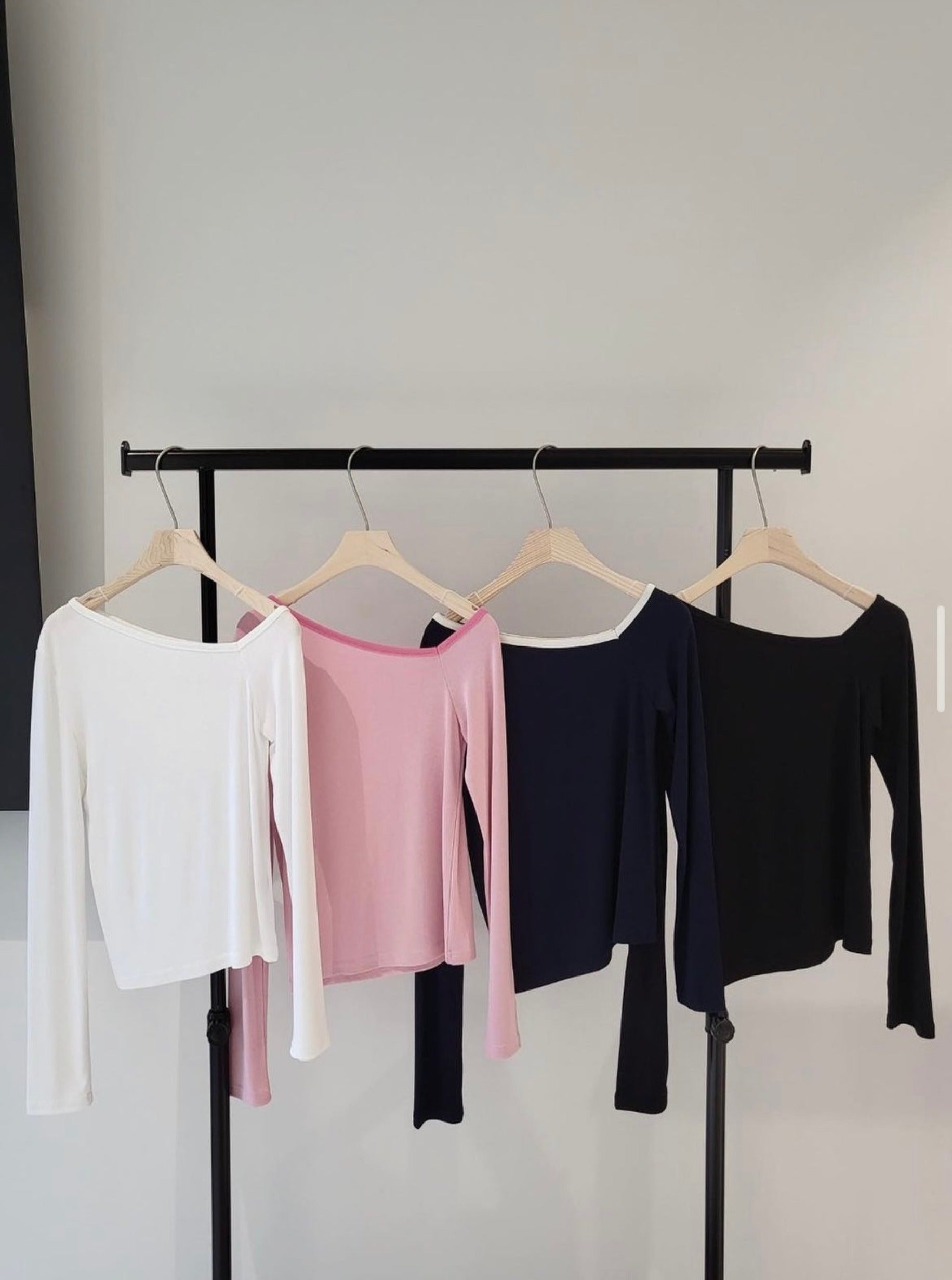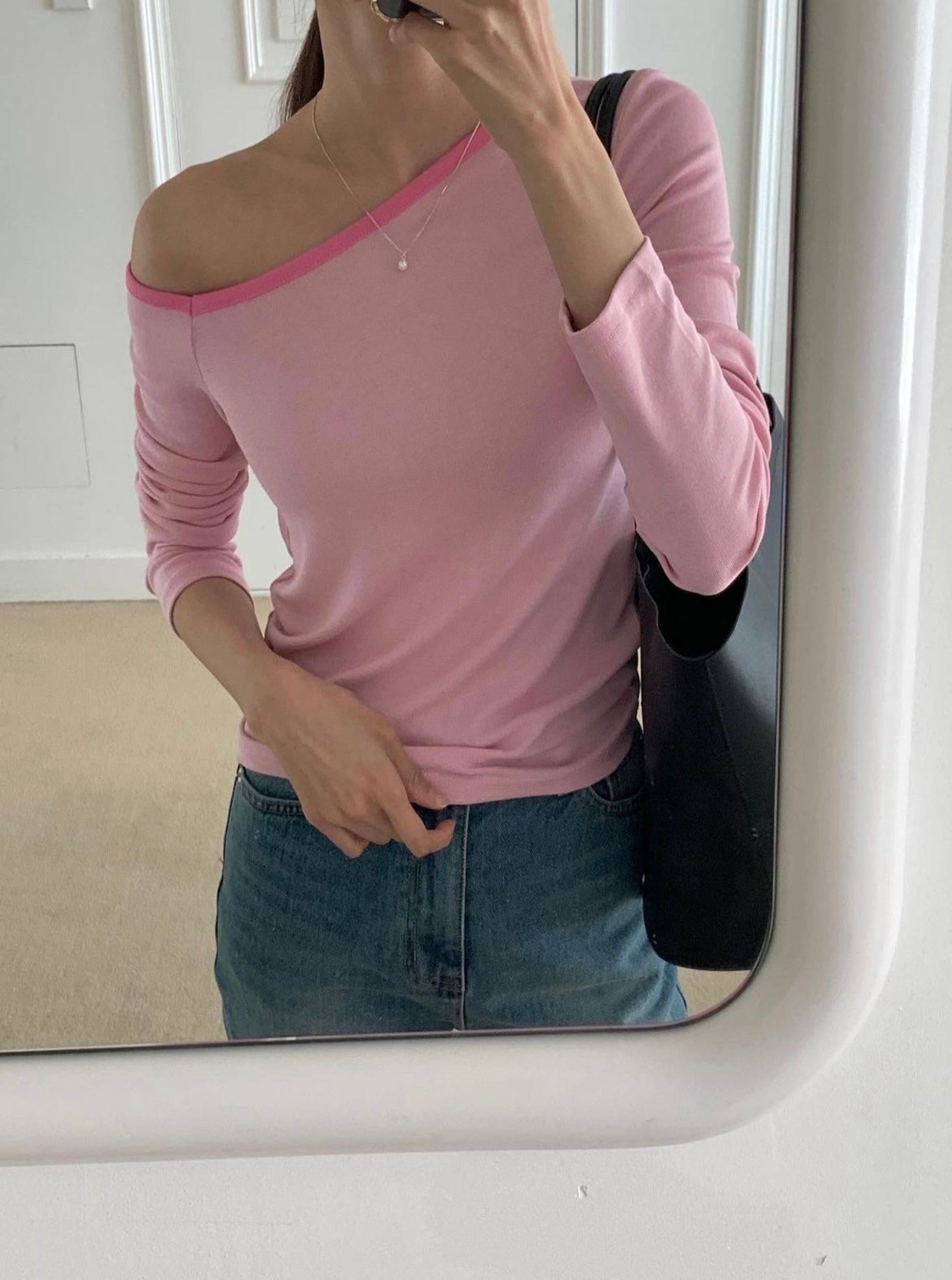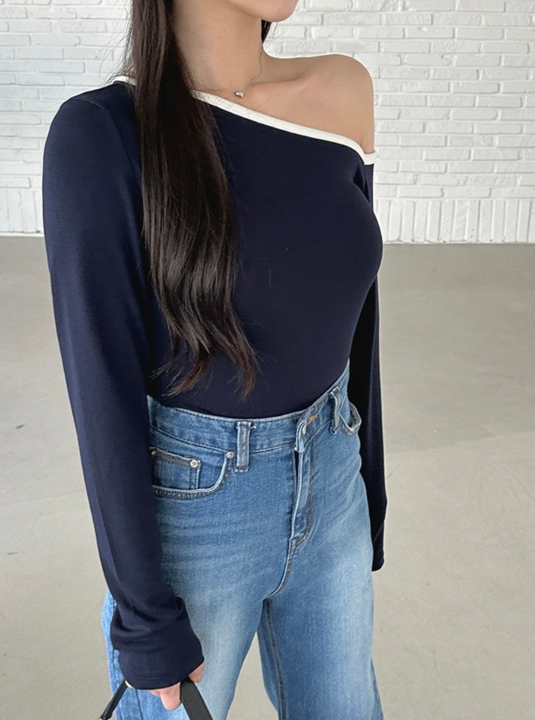 This top is featured in a one shoulder , long sleeve with contrast(pink& navy only).