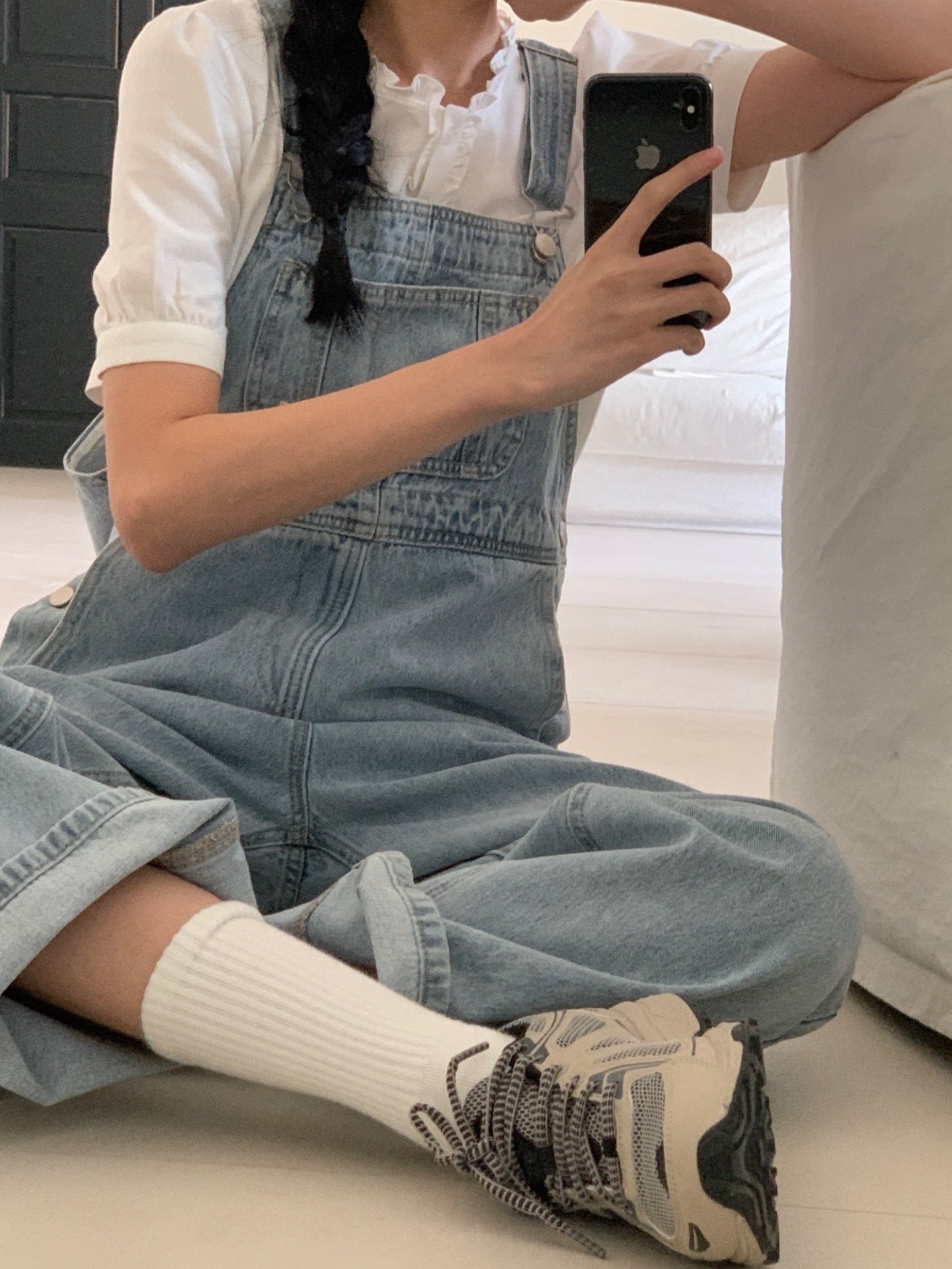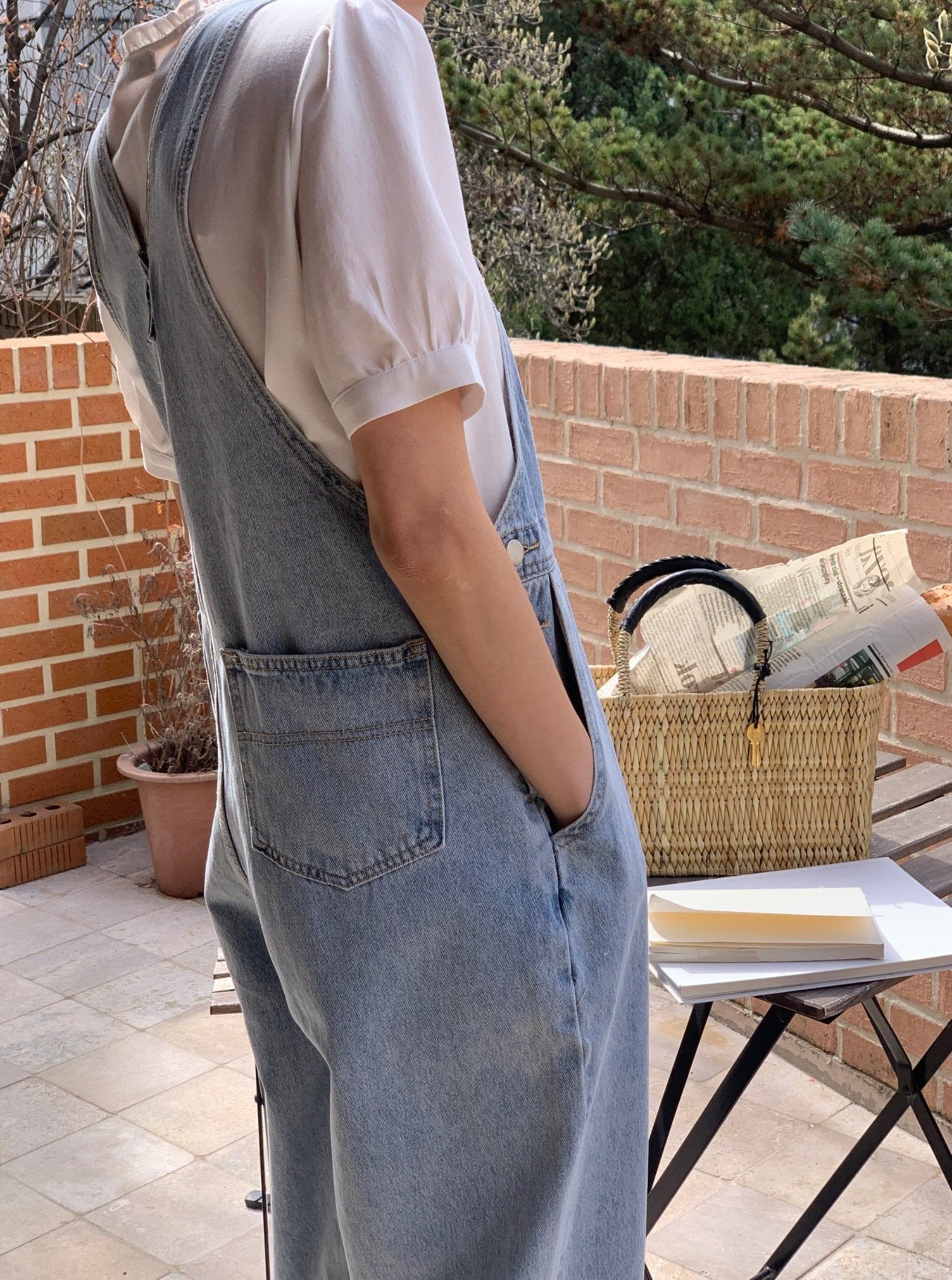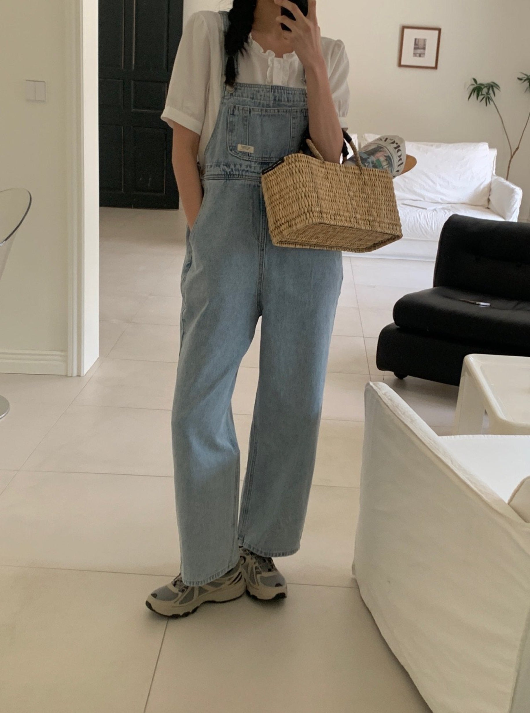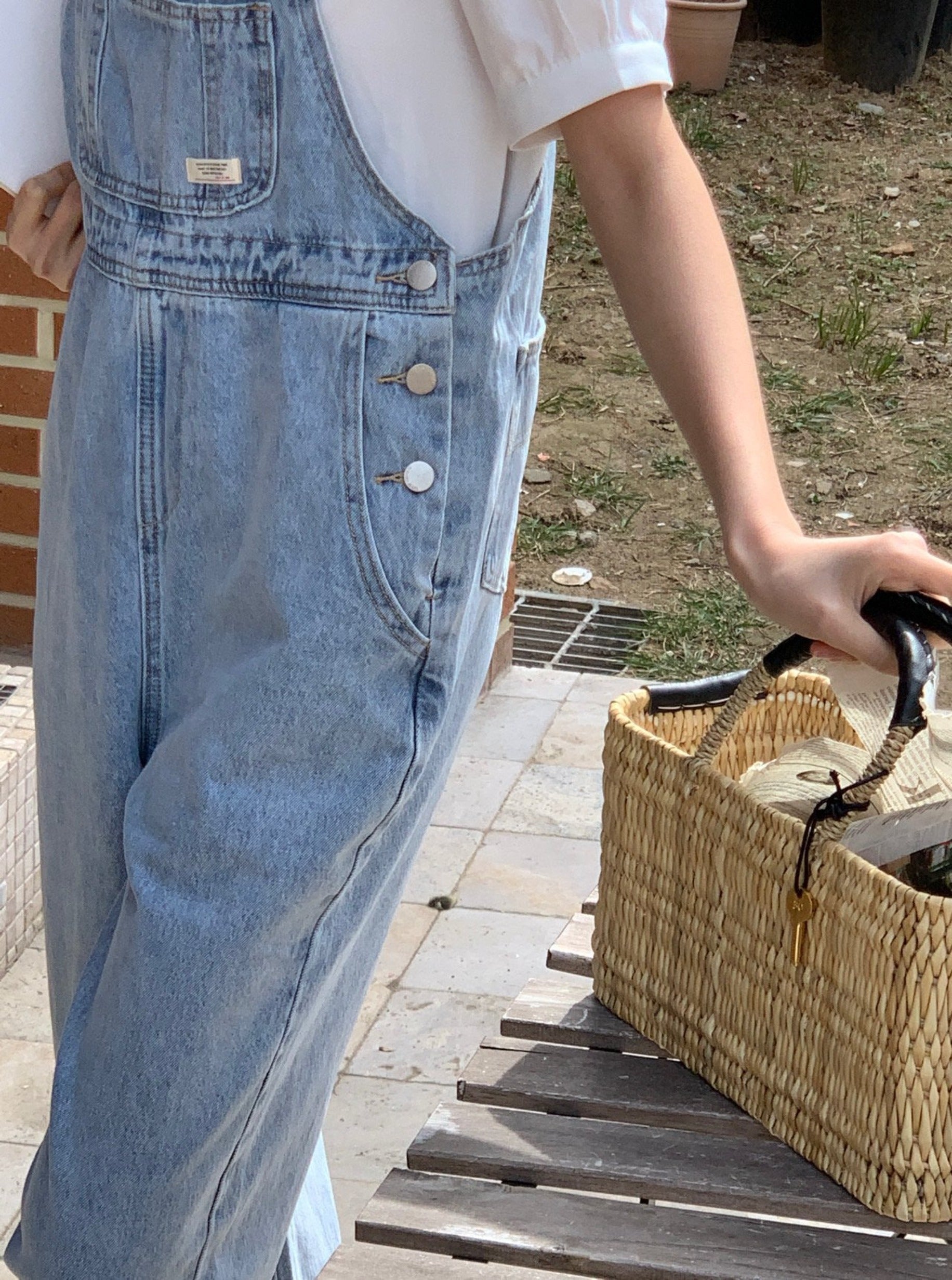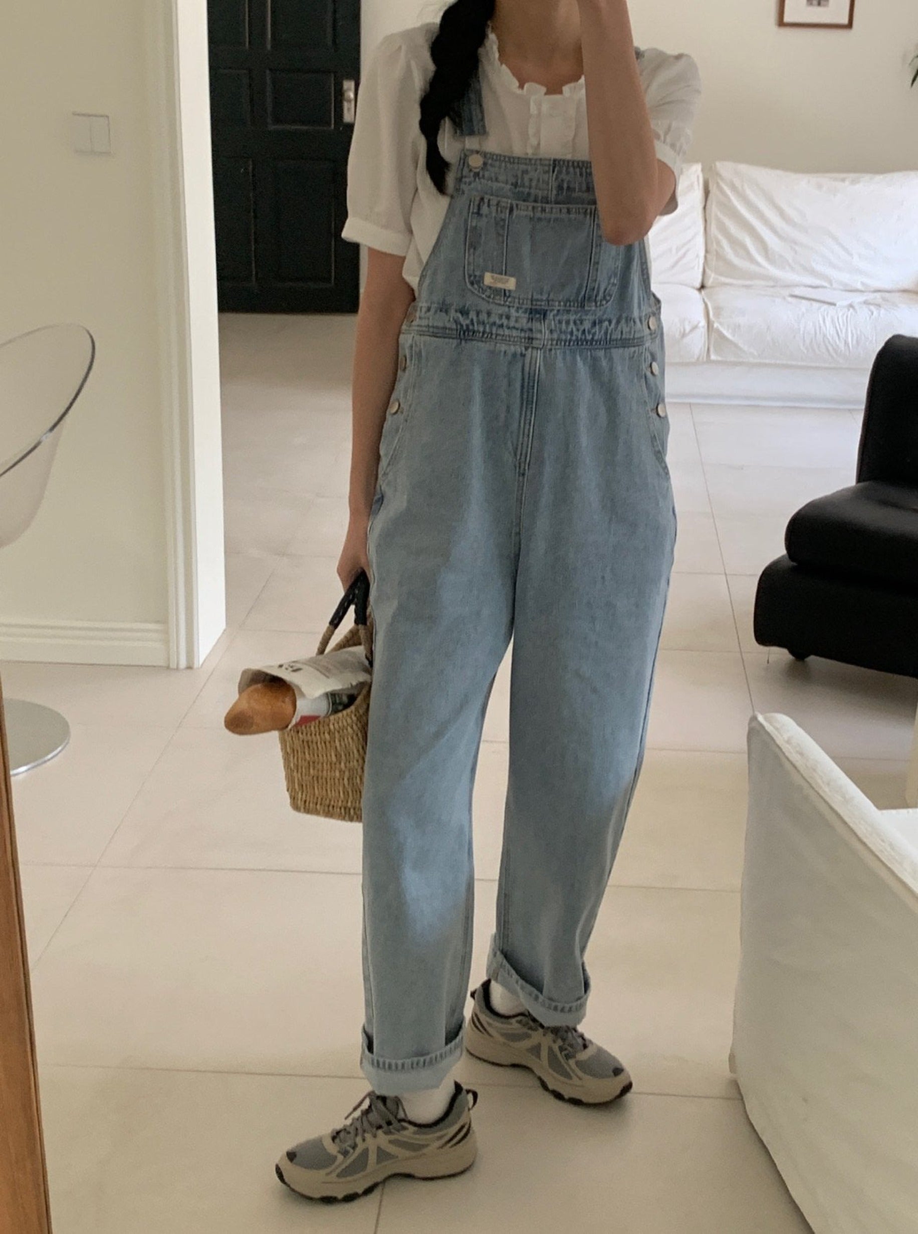 This overall is featured in adjustable shoulder, pockets with loose fit pants.