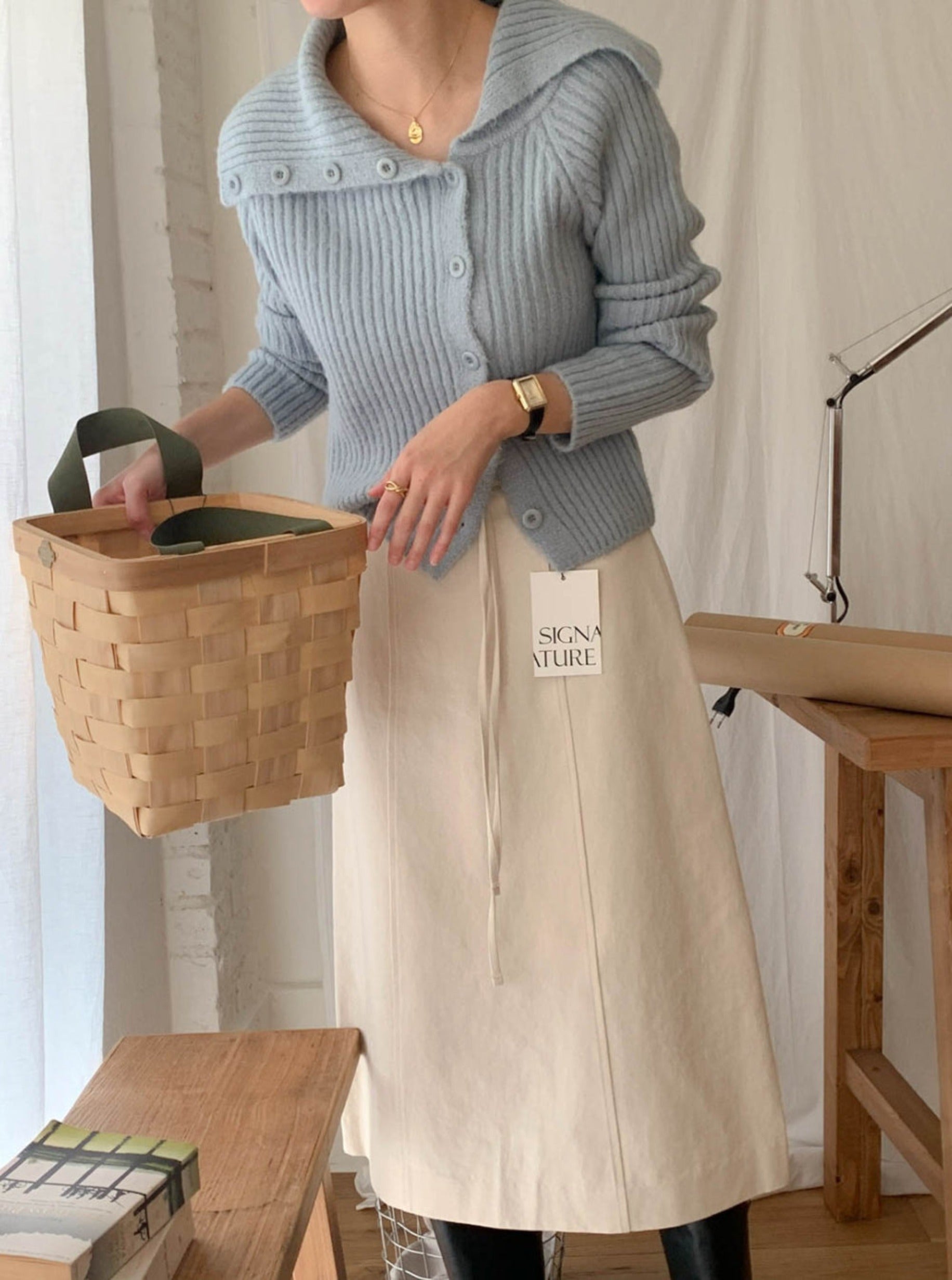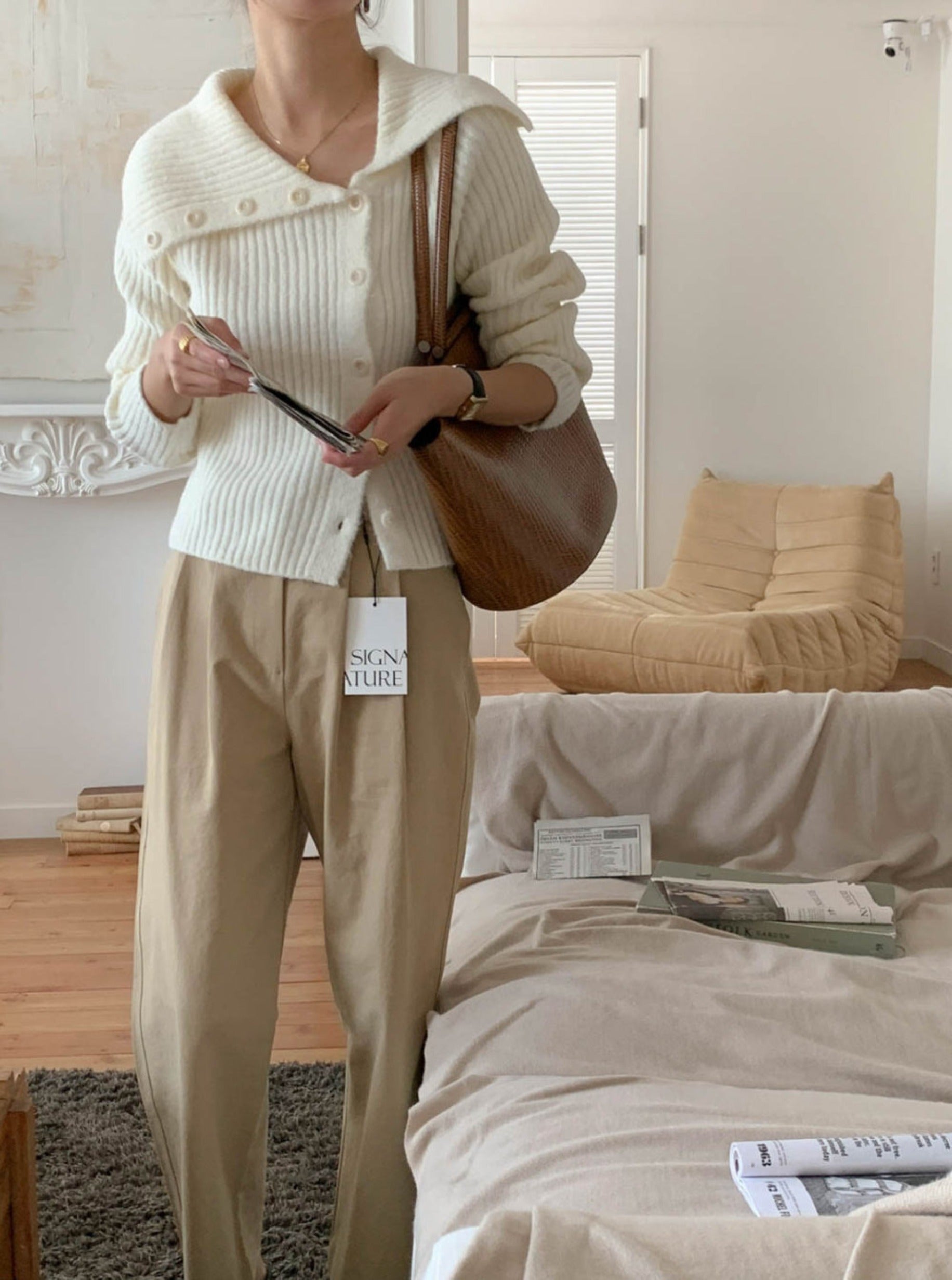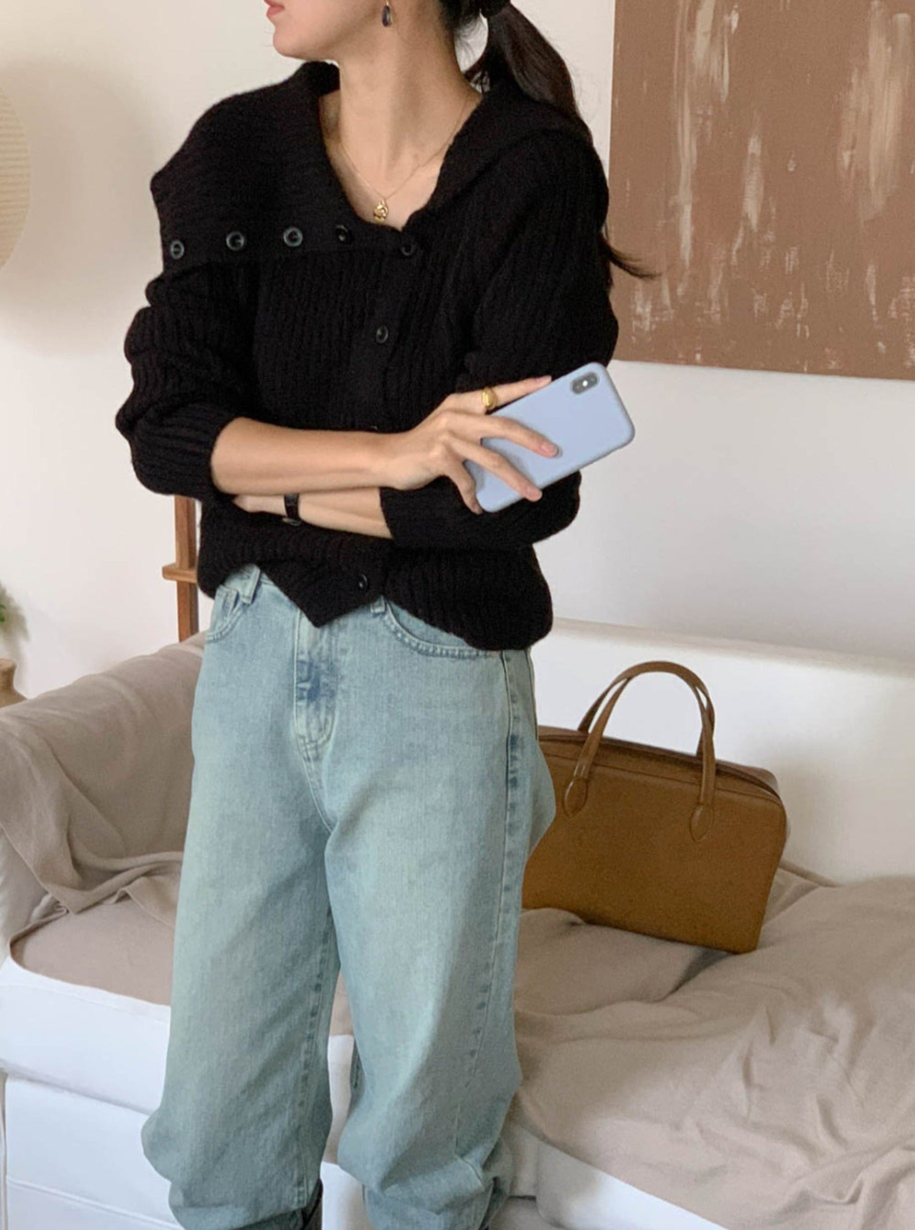 Loose fit, Sailor collar neck, Unbalanced, Long sleeve, Button down, Warm and cozy fabric