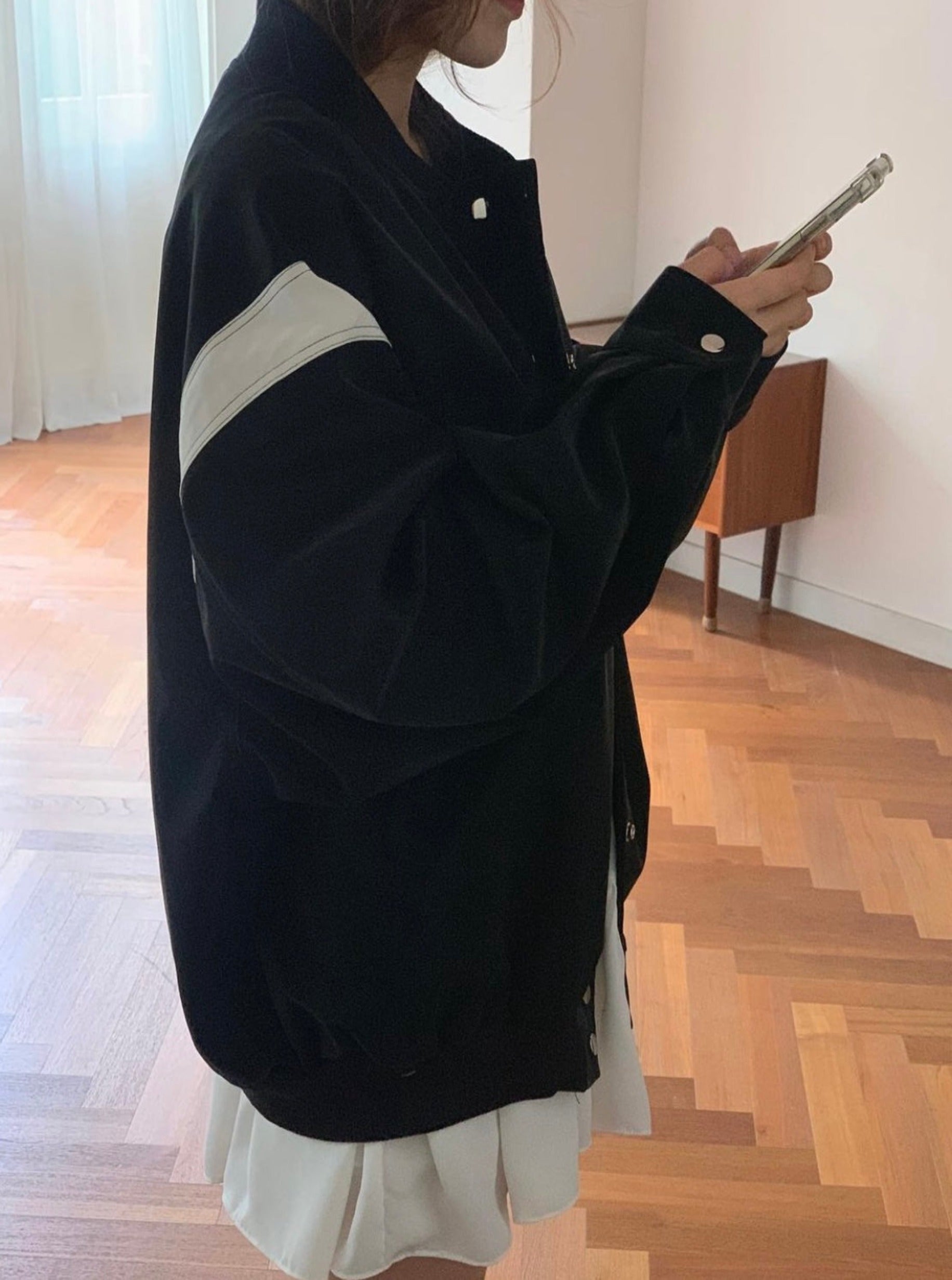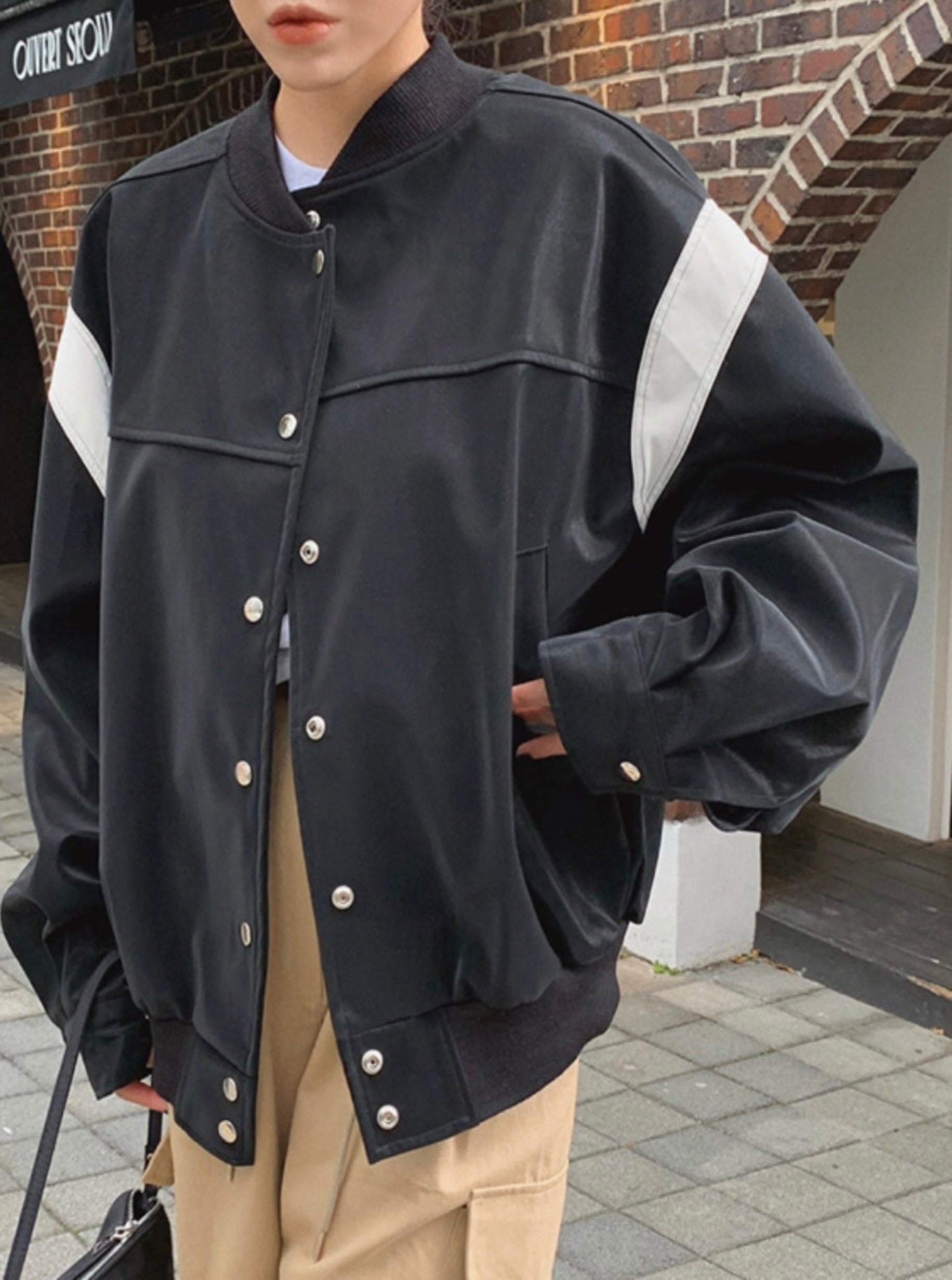 Contrast glossy on sleeve, Button down, Long sleeve , Oversized