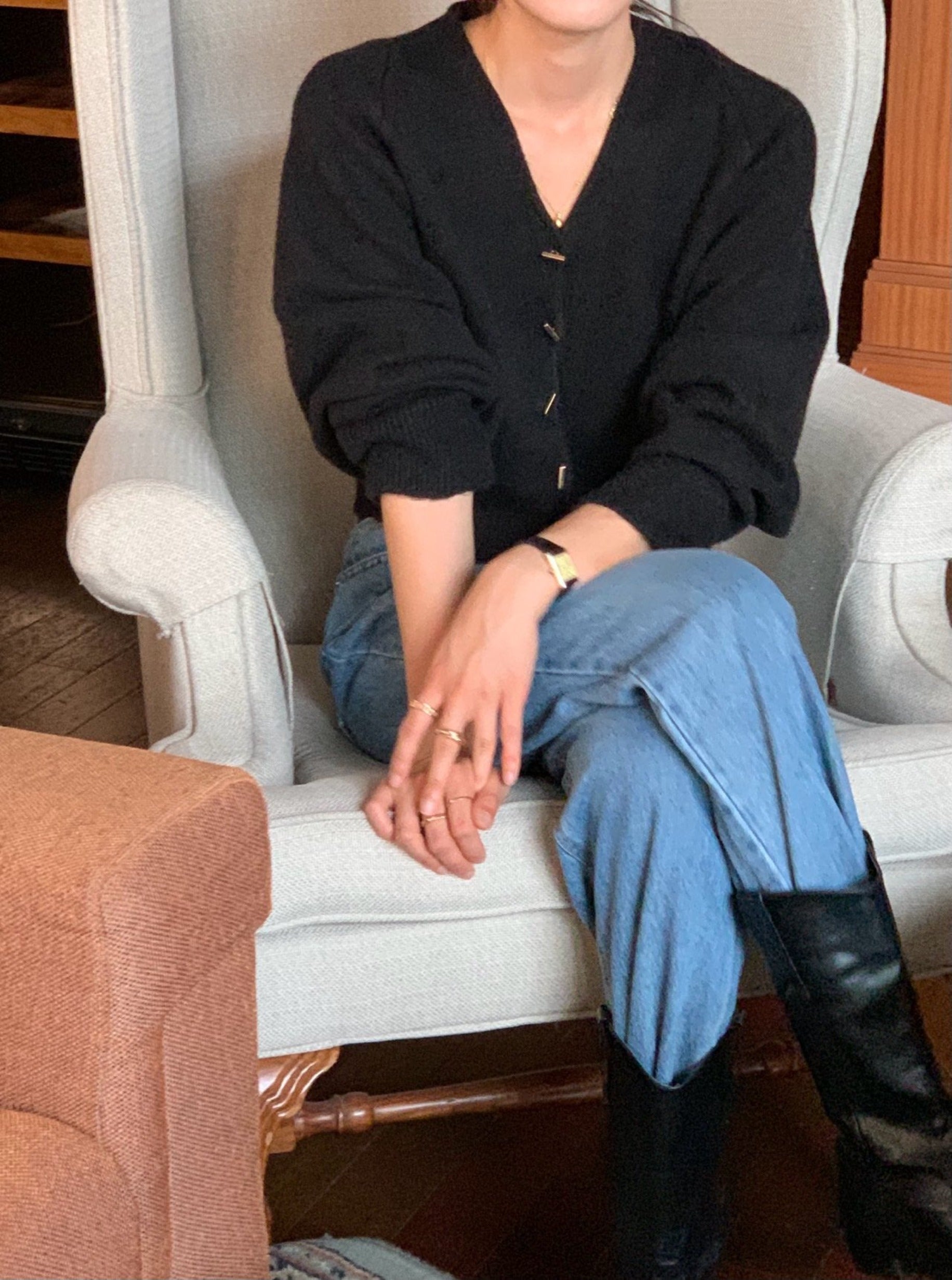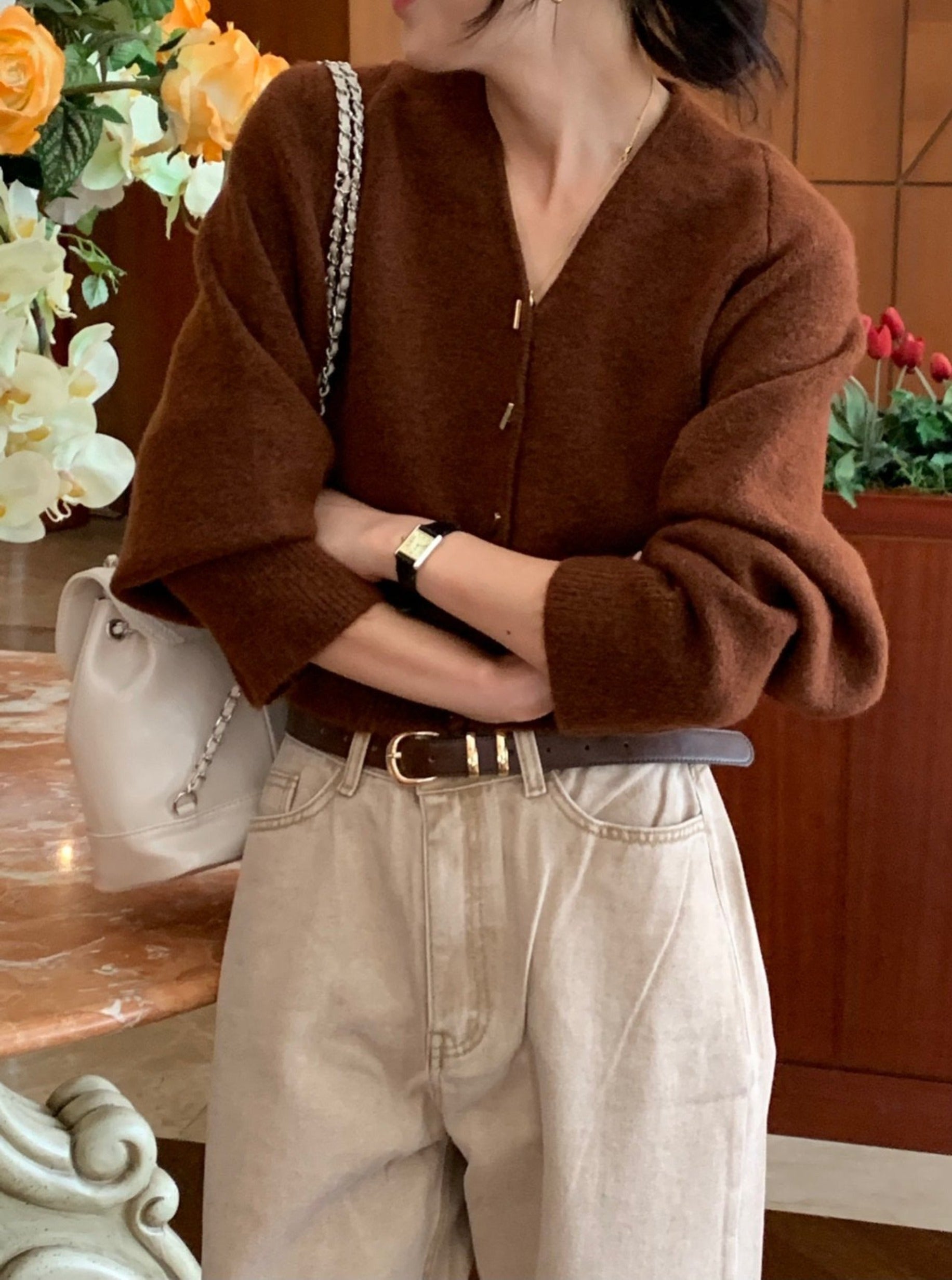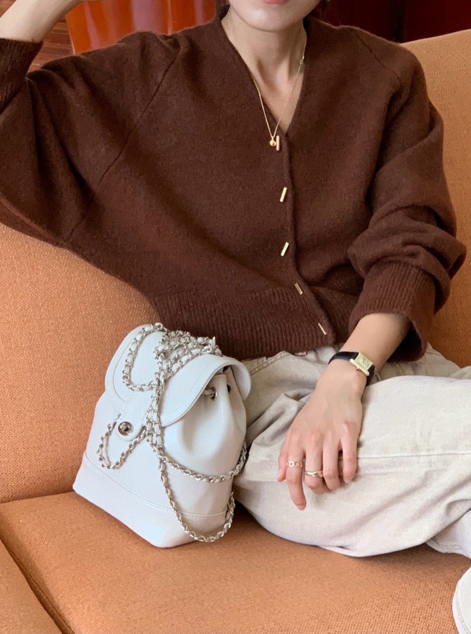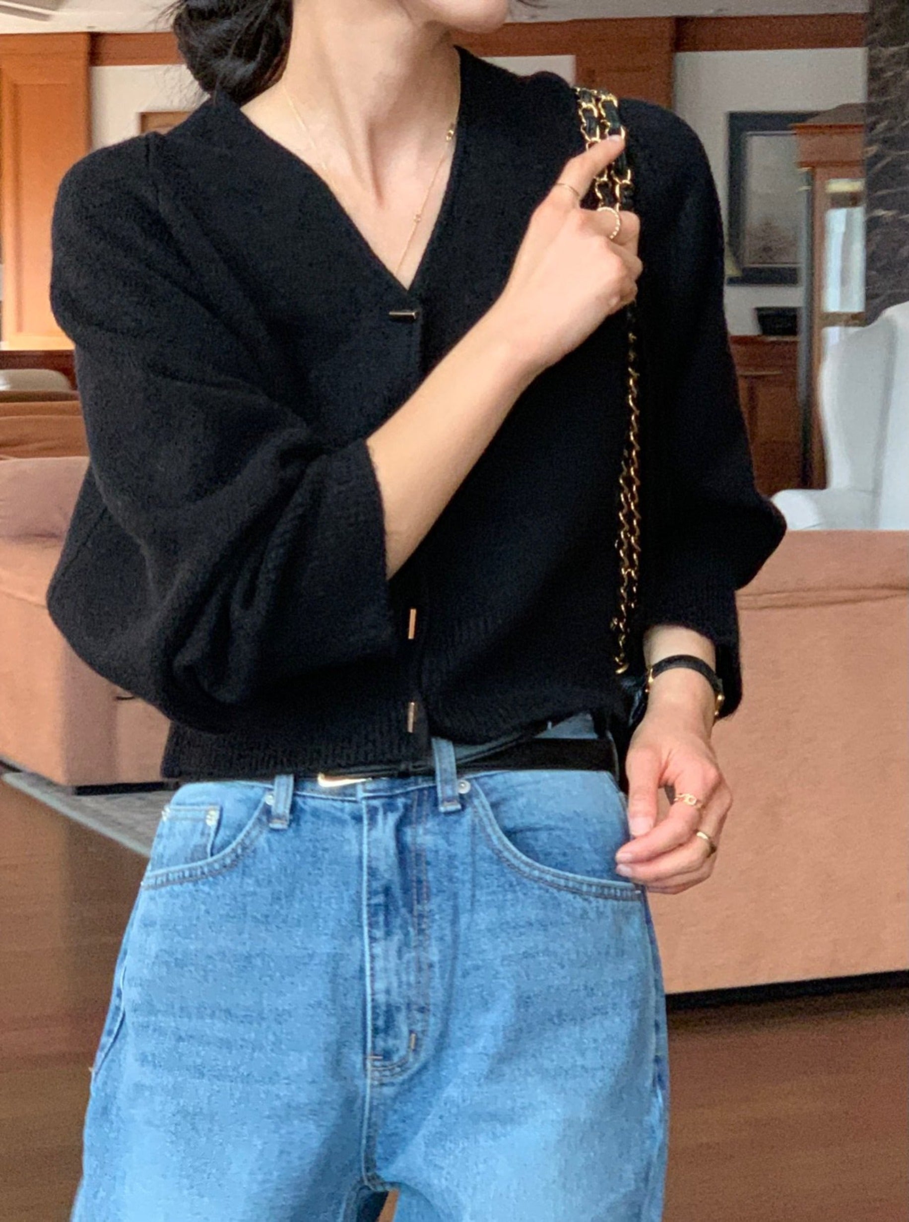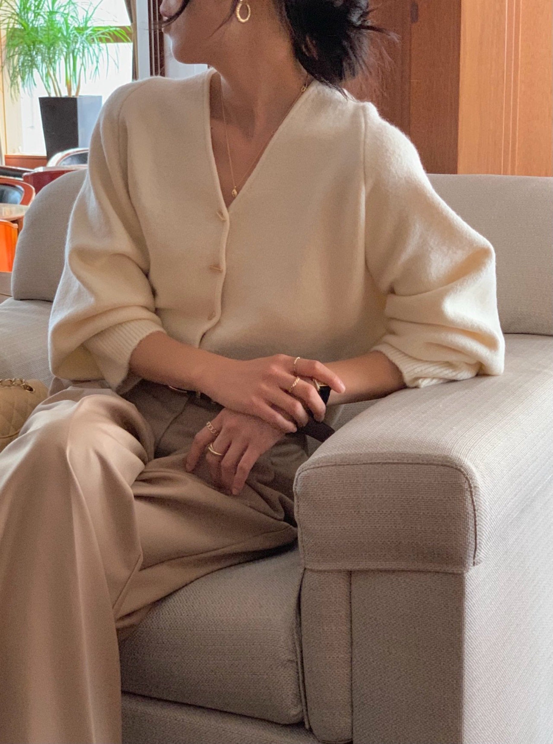 Keep warm and cozy with this adorable cardigan. This relaxed fit and crop length with raglan sleeve make it perfect elegant old money looks. Gold button makes a point of the look!