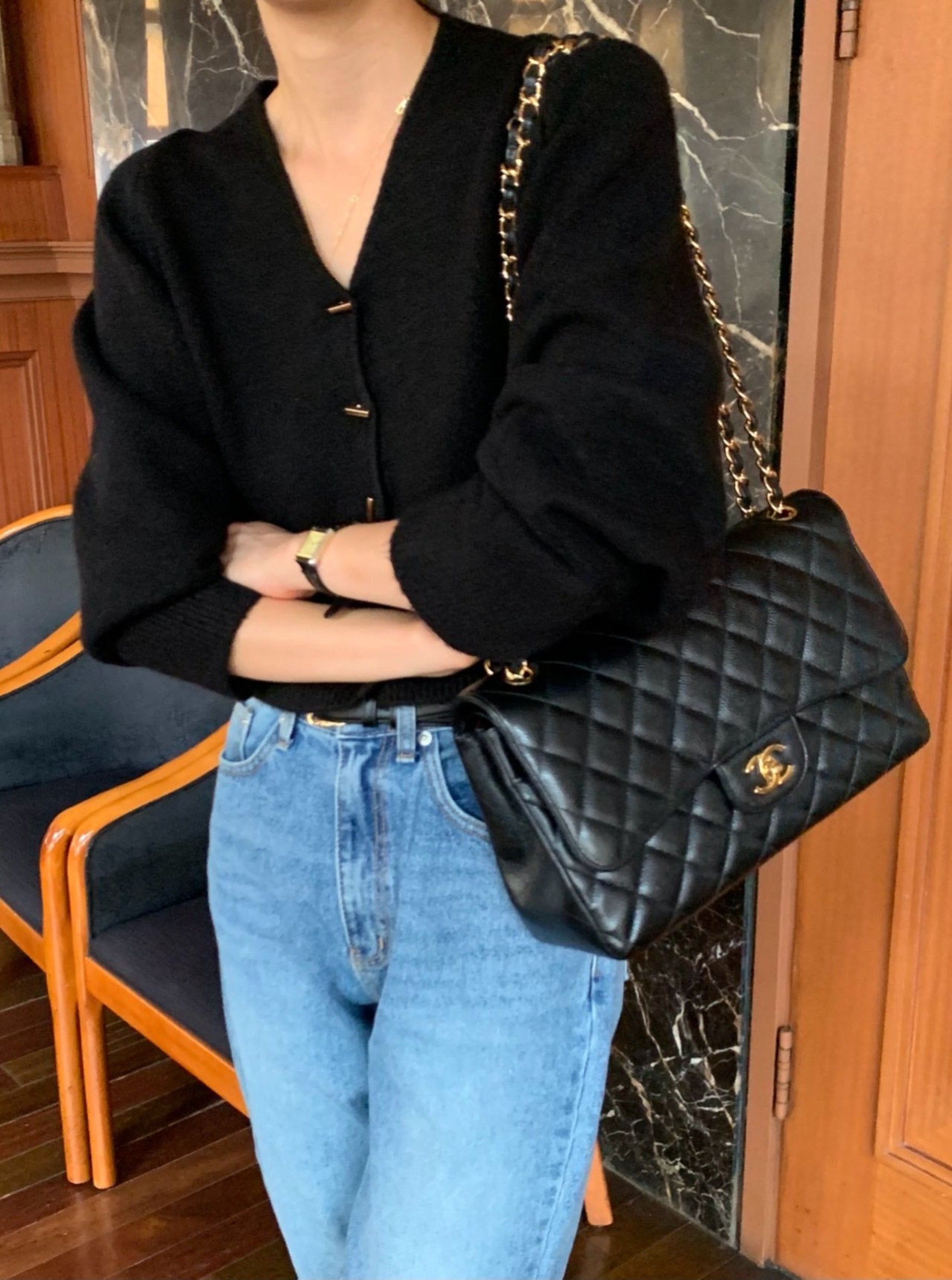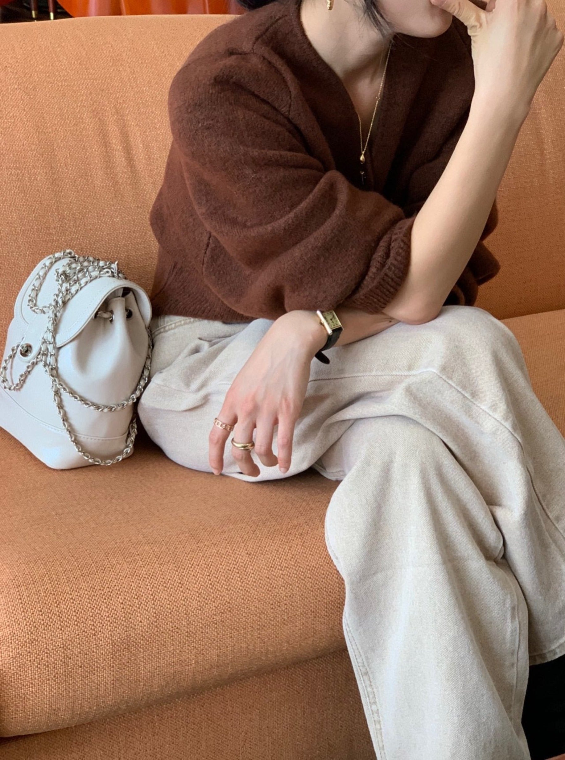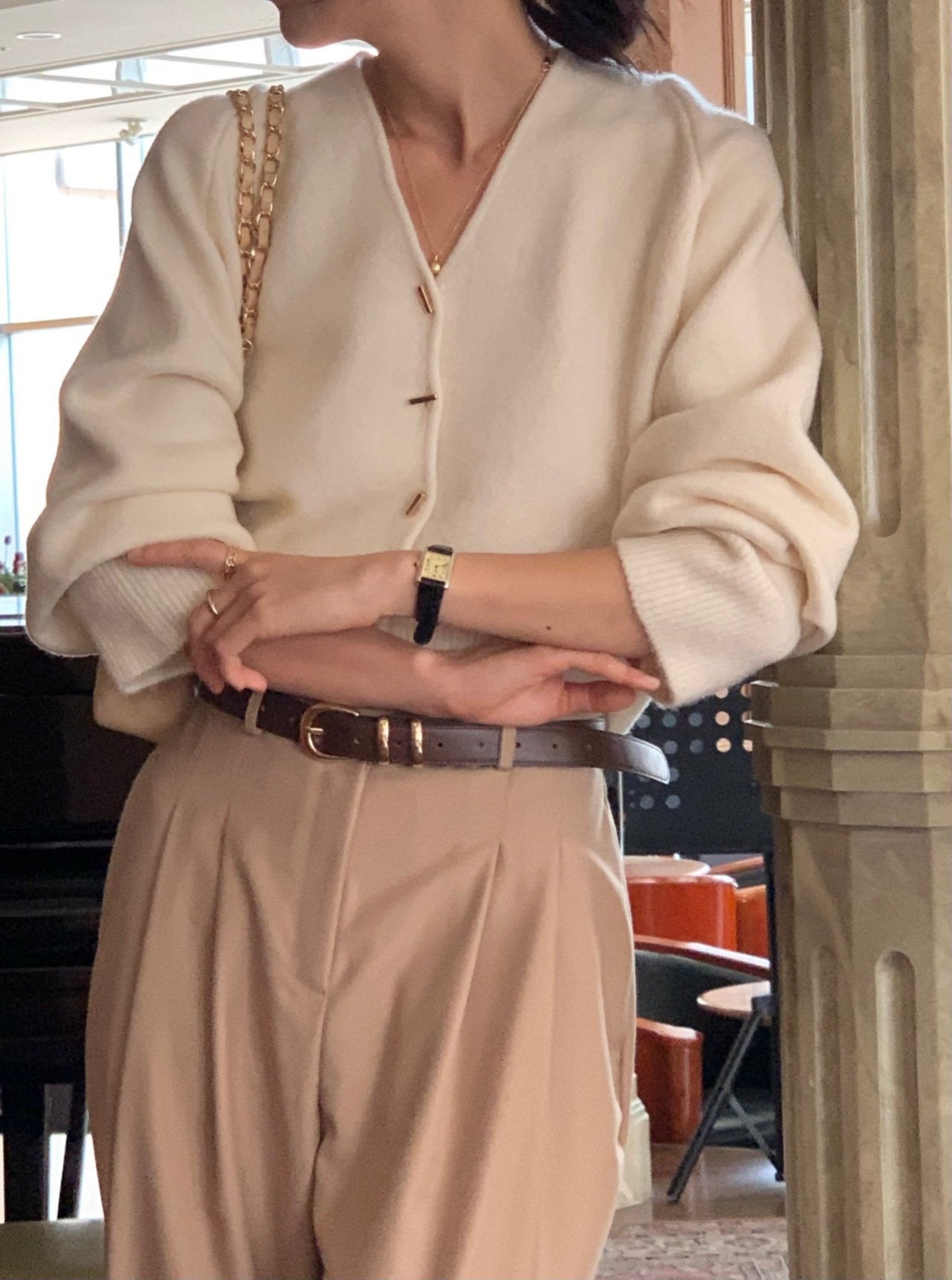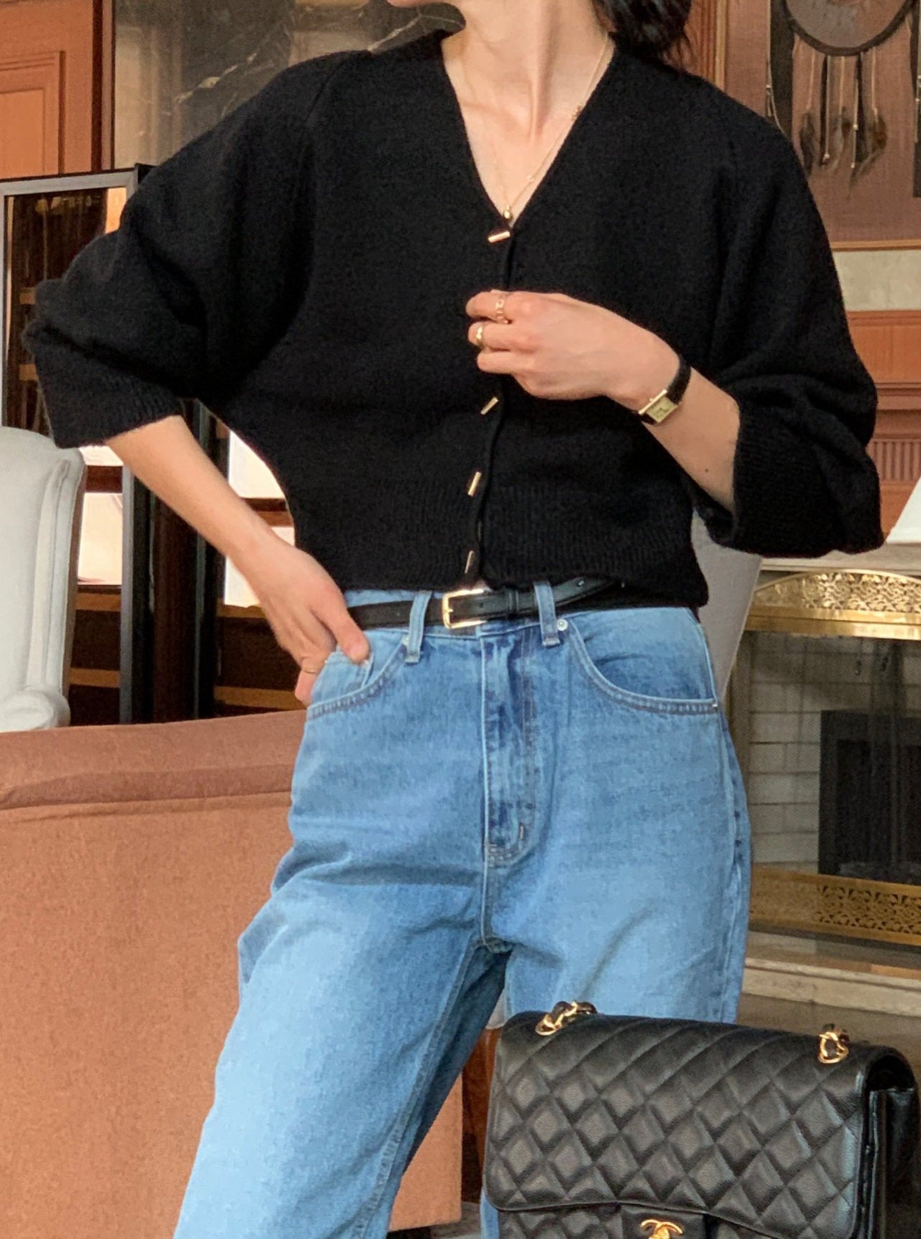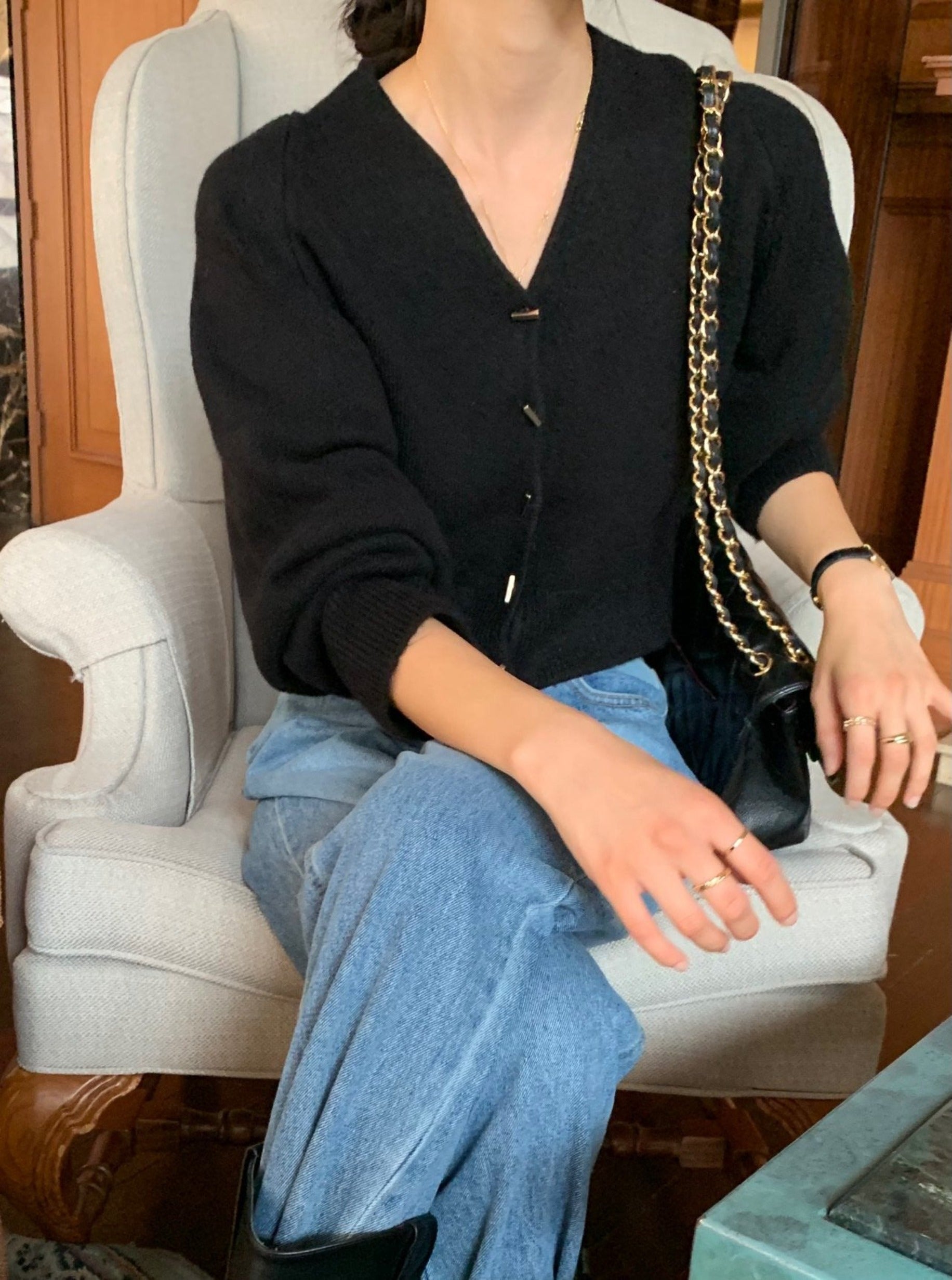 Keep warm and cozy with this adorable cardigan. This relaxed fit and crop length with raglan sleeve make it perfect elegant old money looks. Gold button makes a point of the look!