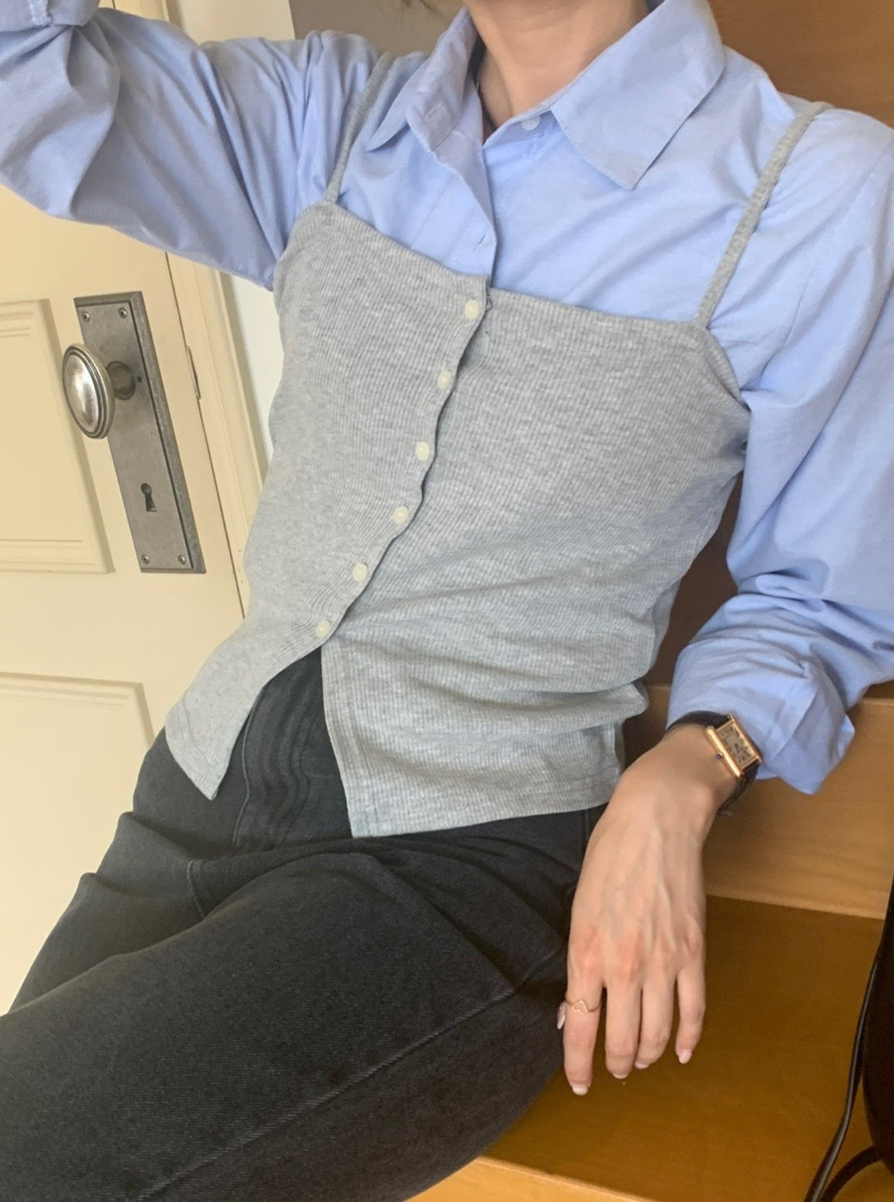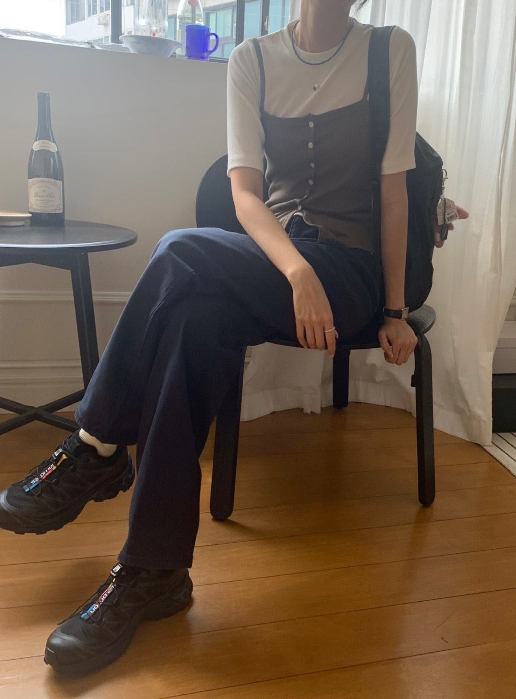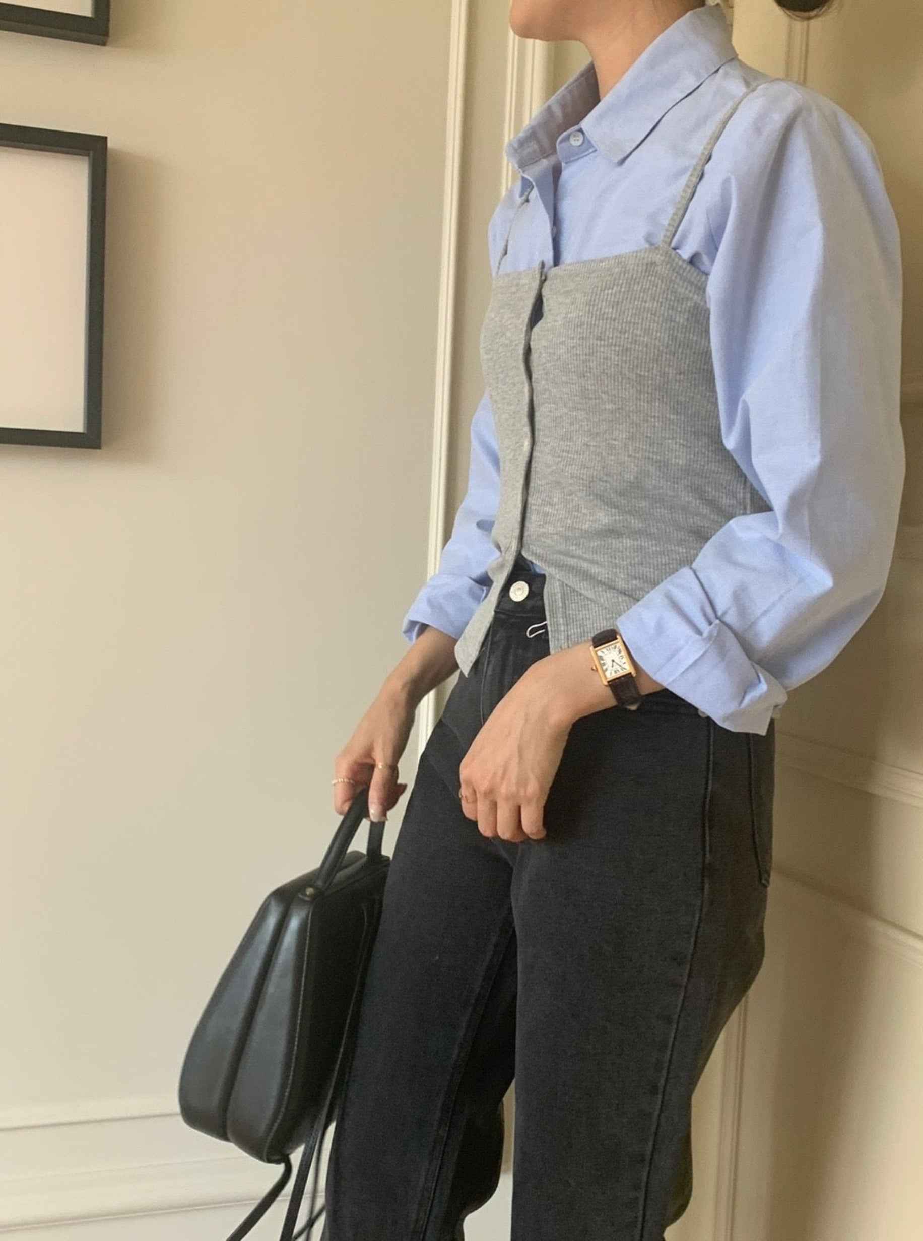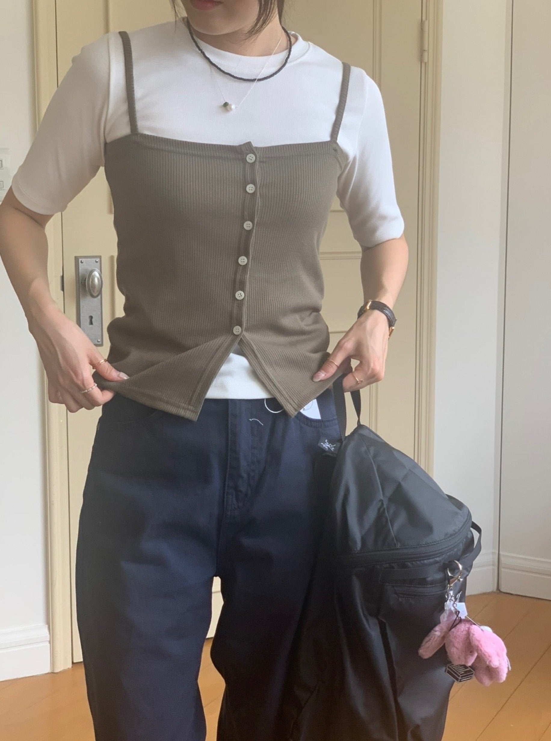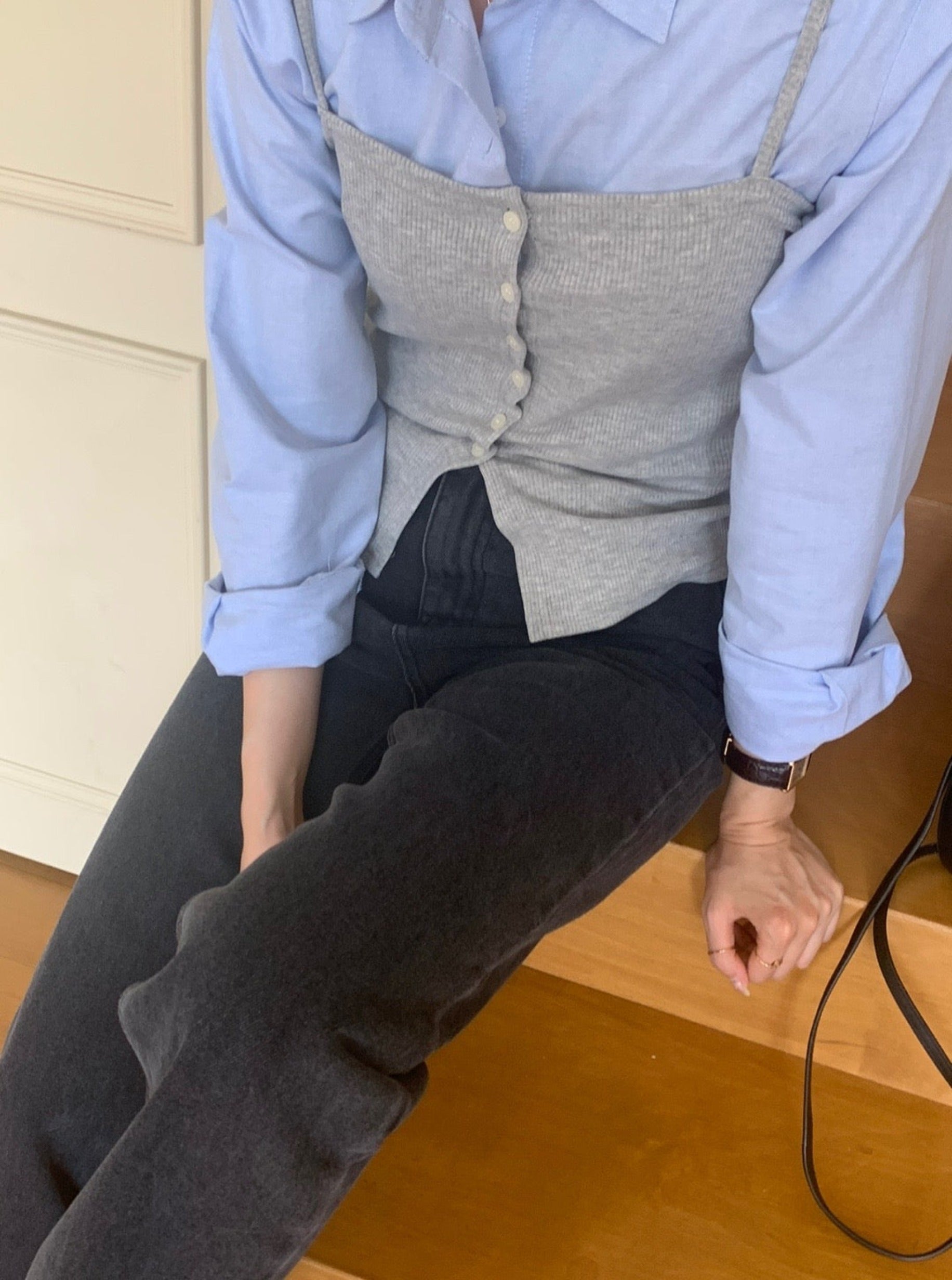 Good for layering and creating a variety of mood. Featuring a slim strap shoulder and button details makes like wearing vest also perfect for layering with t-shirt or blouse. Great for wearing alone in the summer too.