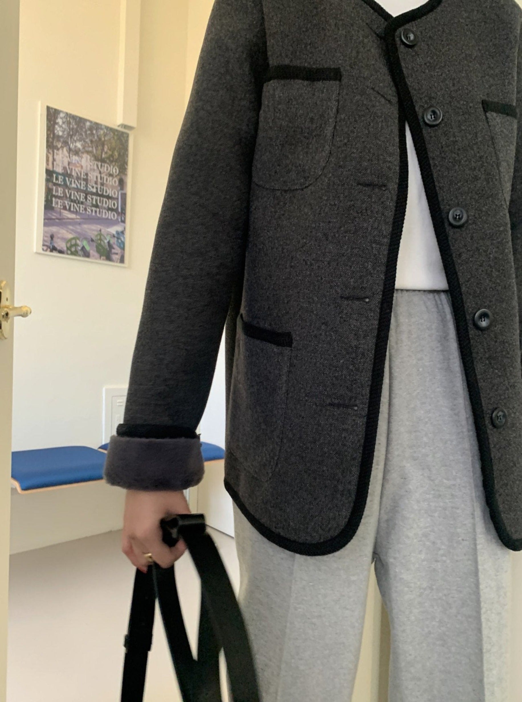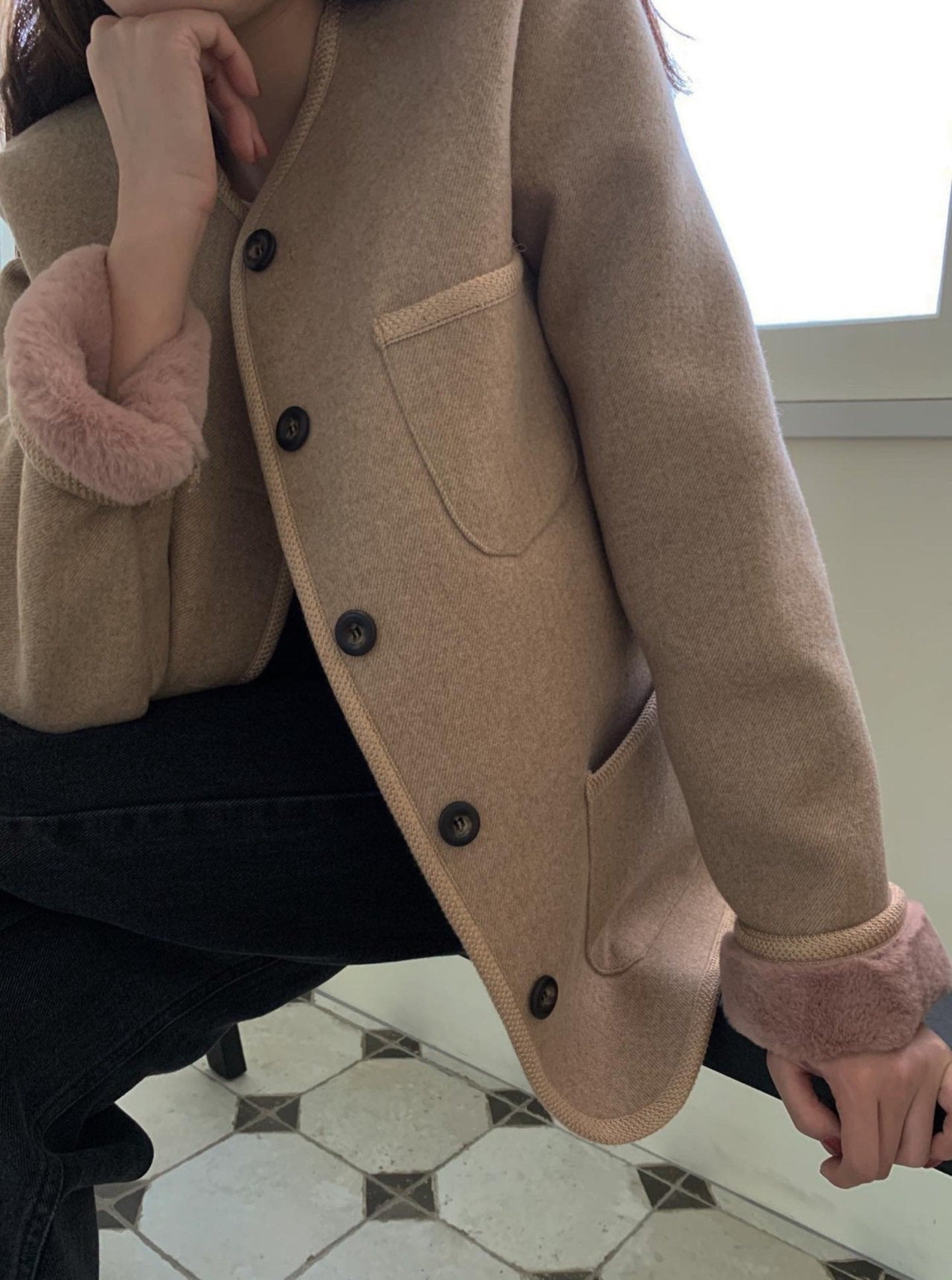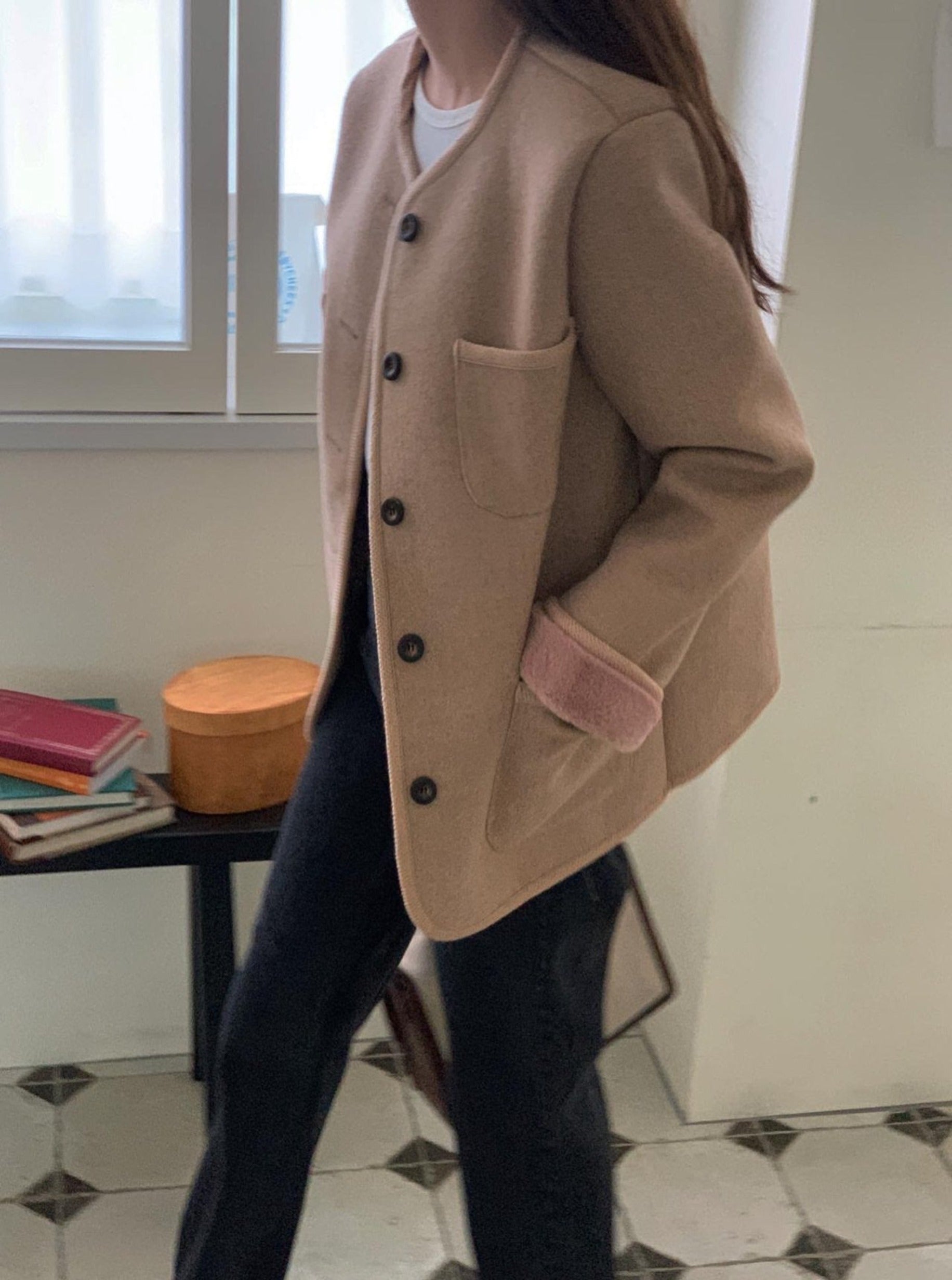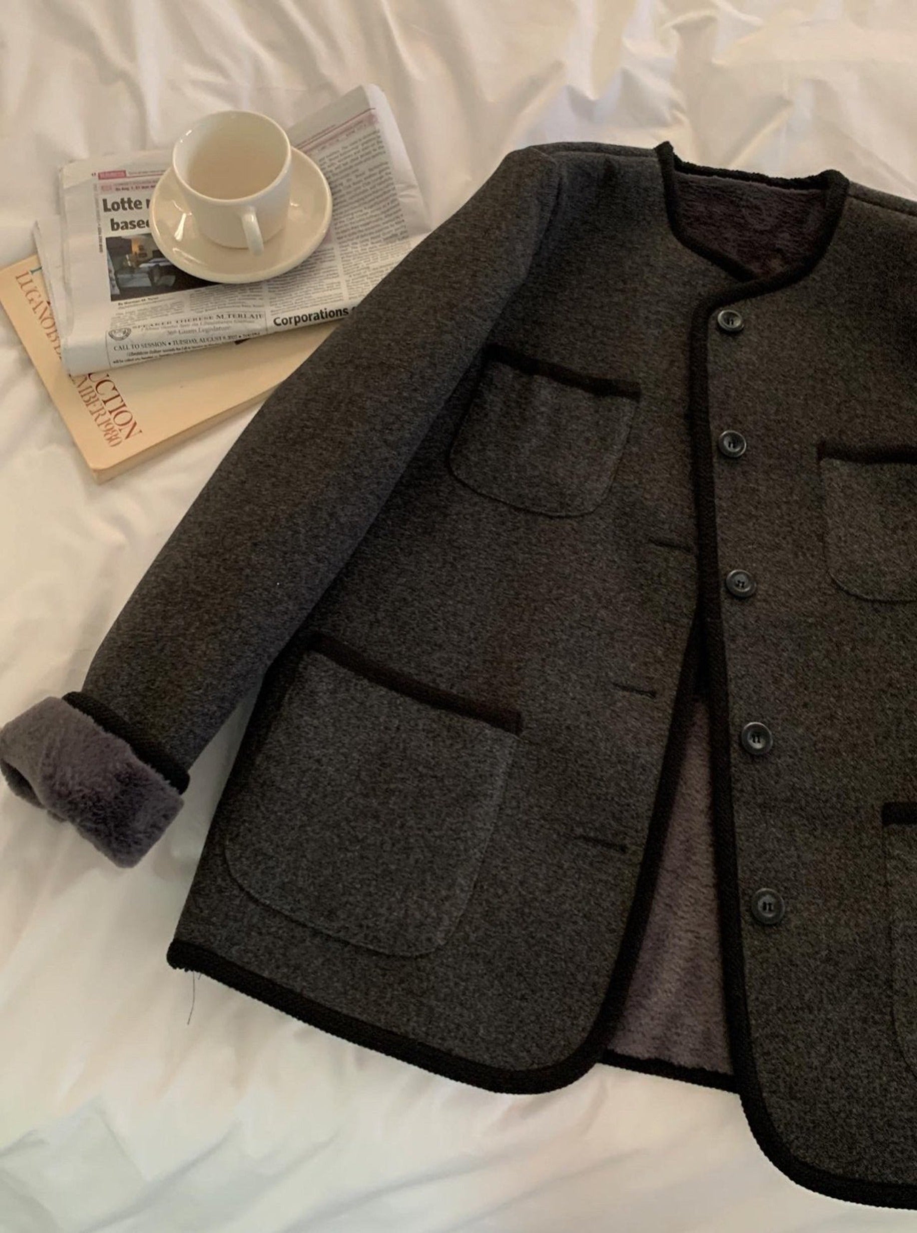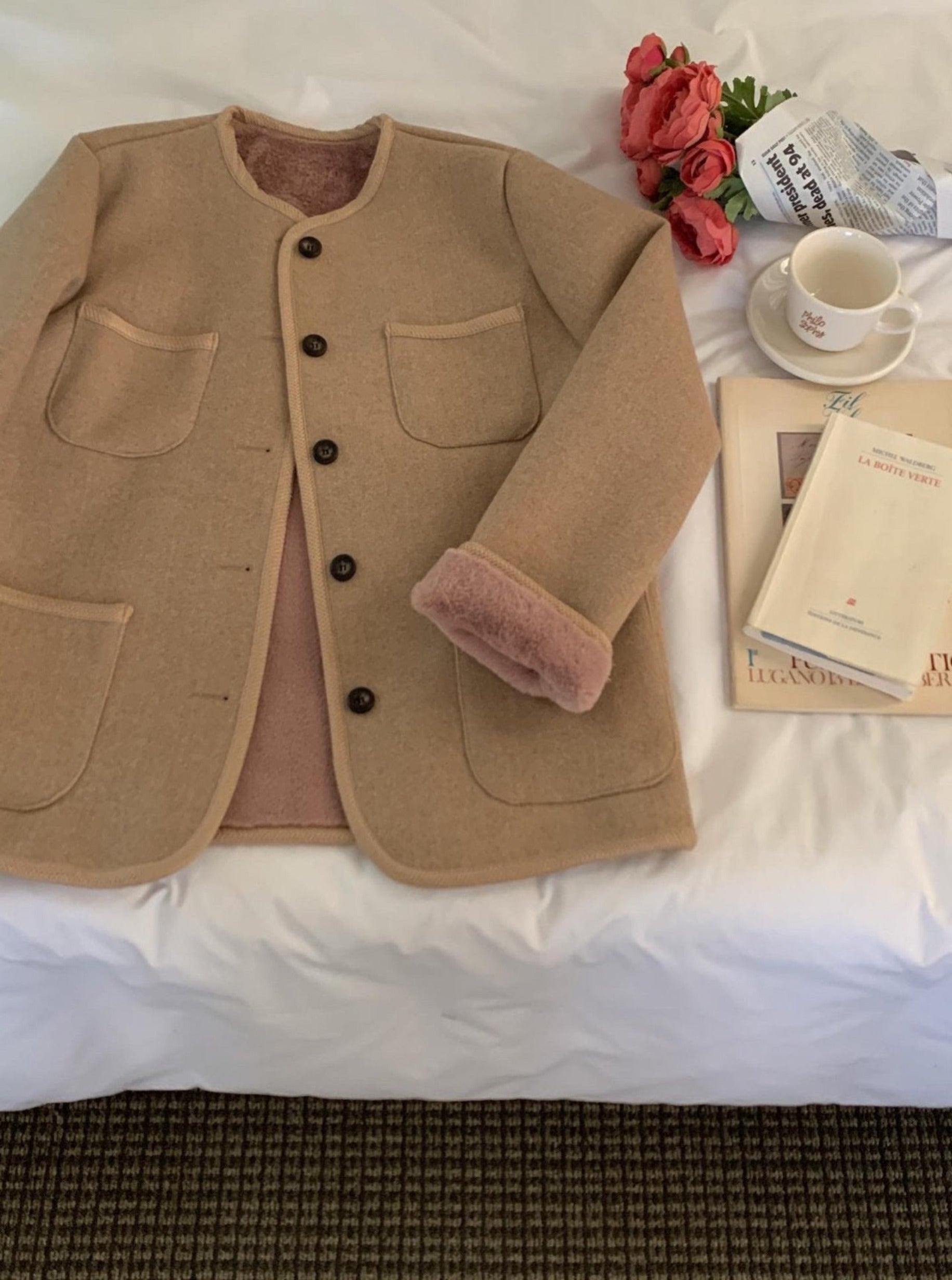Round neck , Pocket, Button down, Fleece inside, Oversized