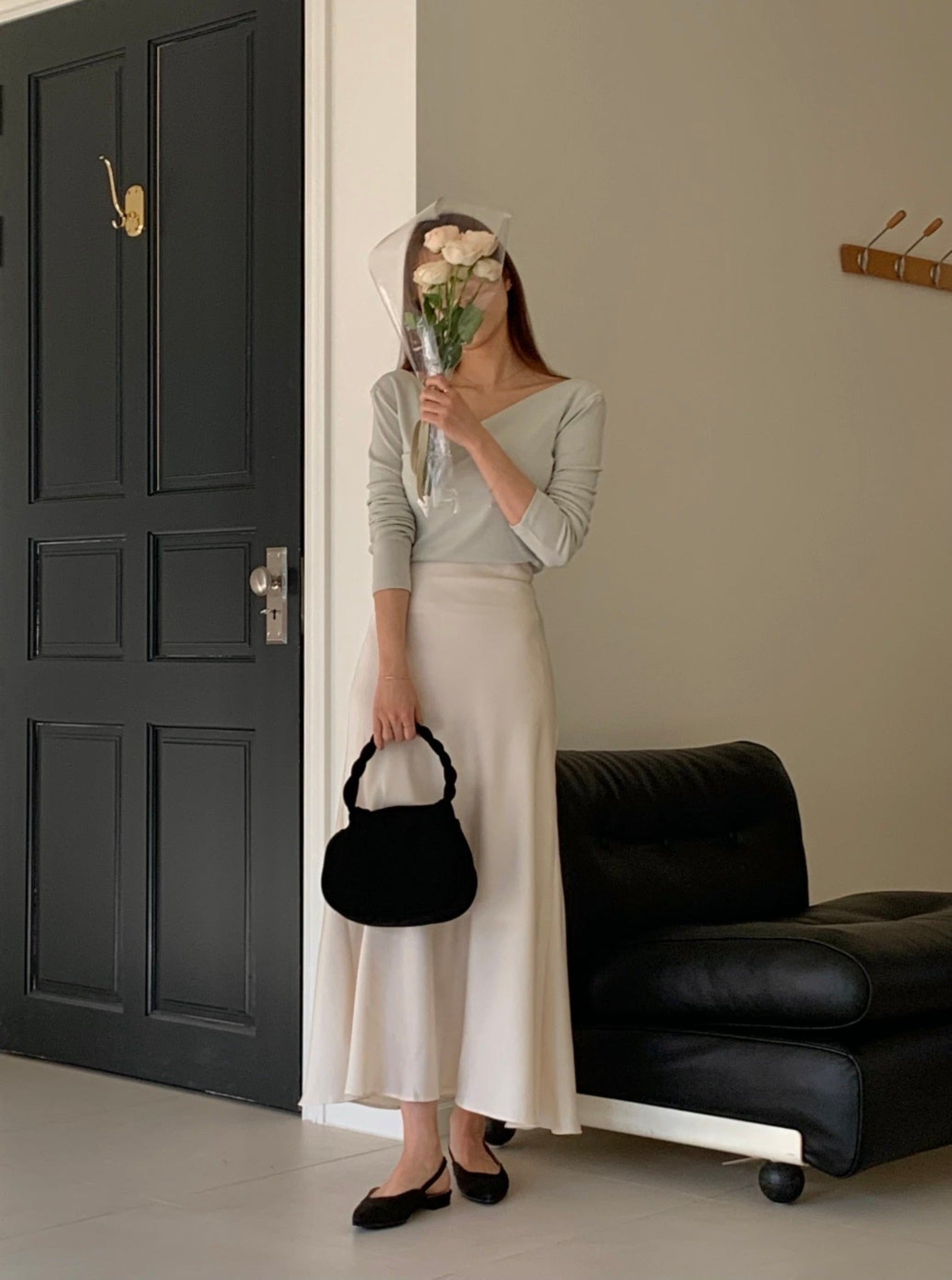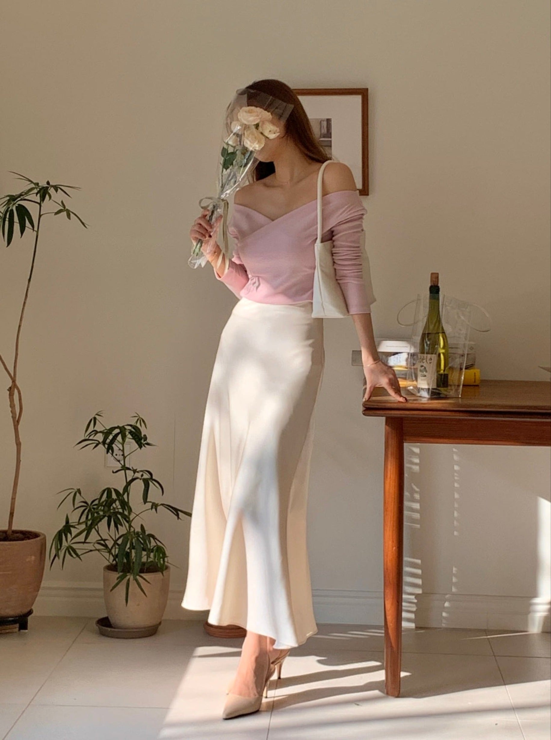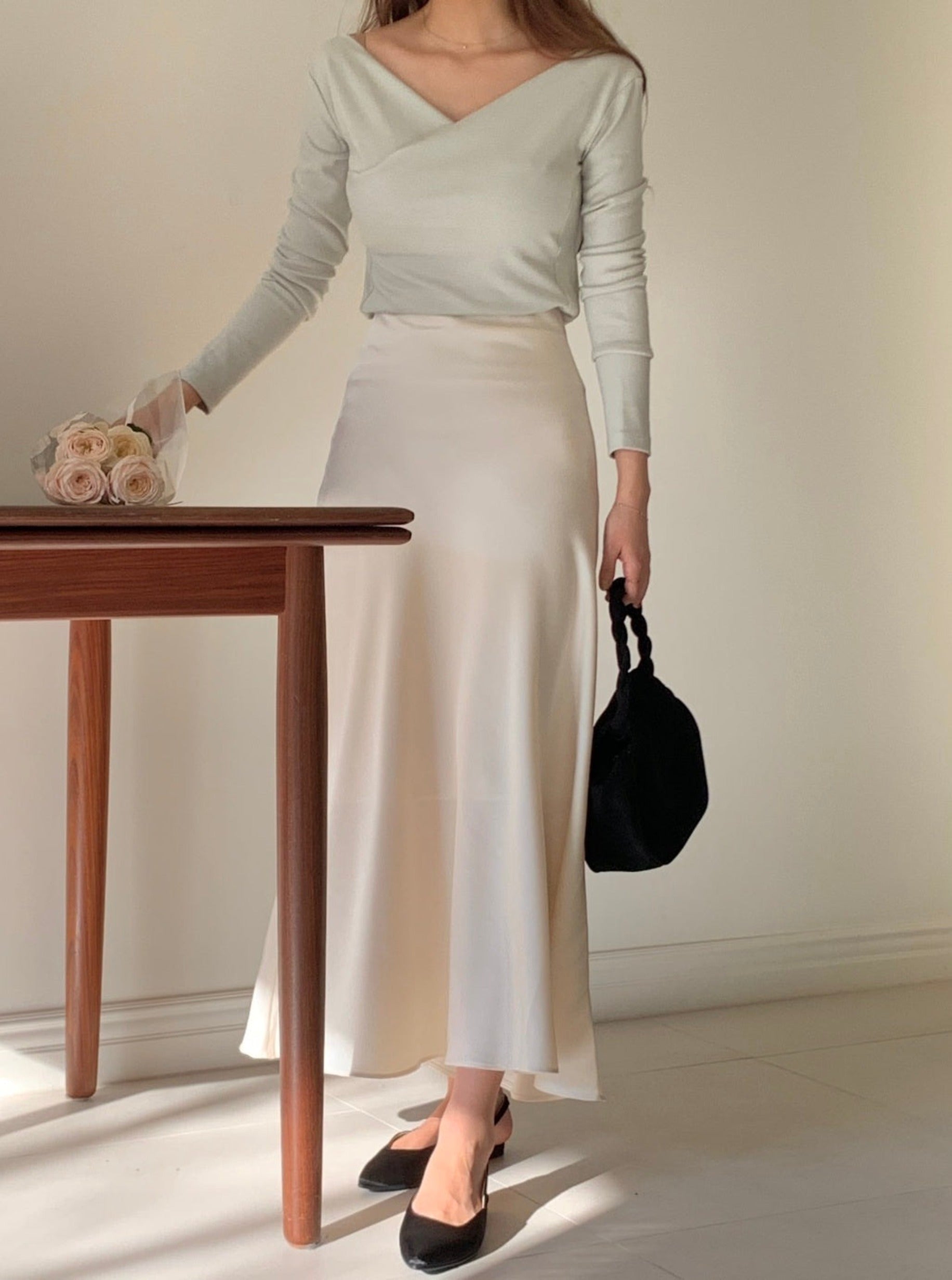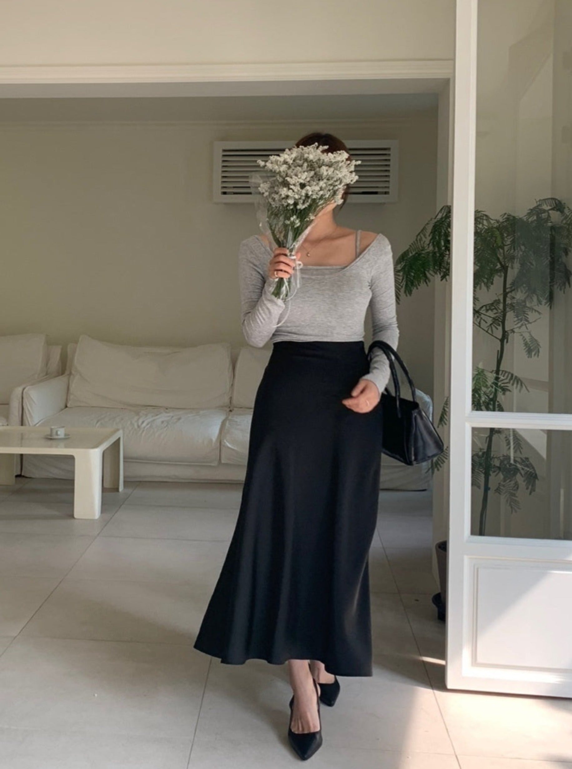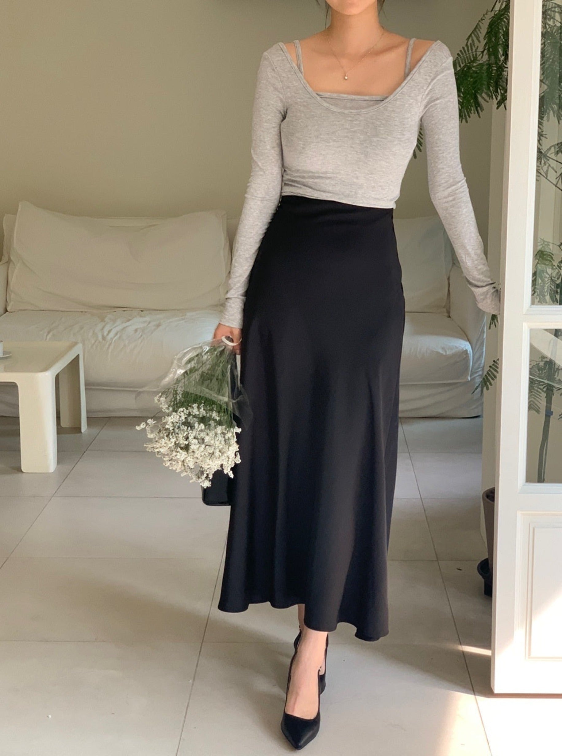 Skirts are the statement separate in every wardrobe. A sleek maxi skirt design, cut from our soft and stretchy bias cut satin. Designed to hug you're curves and a slightly flared hemline. Flirt with the skirt for your favorite every day and evening ensembles.