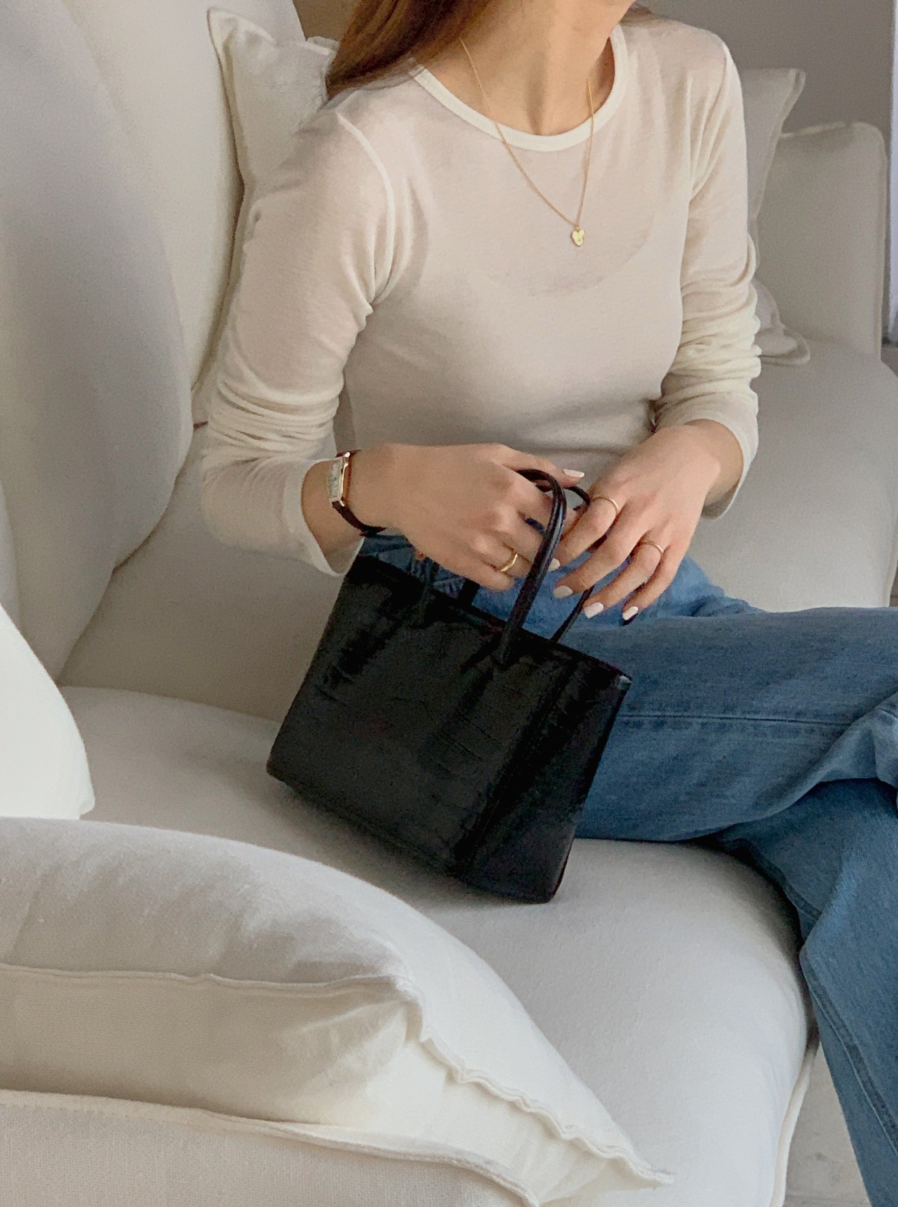 We love wearing alone or layered with other colors! Pairing this with your favorite denim or trouser for an easy, at-home style.