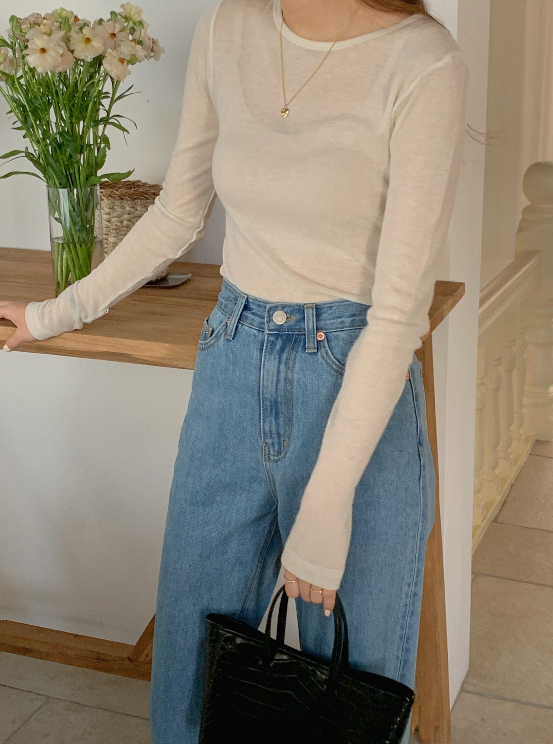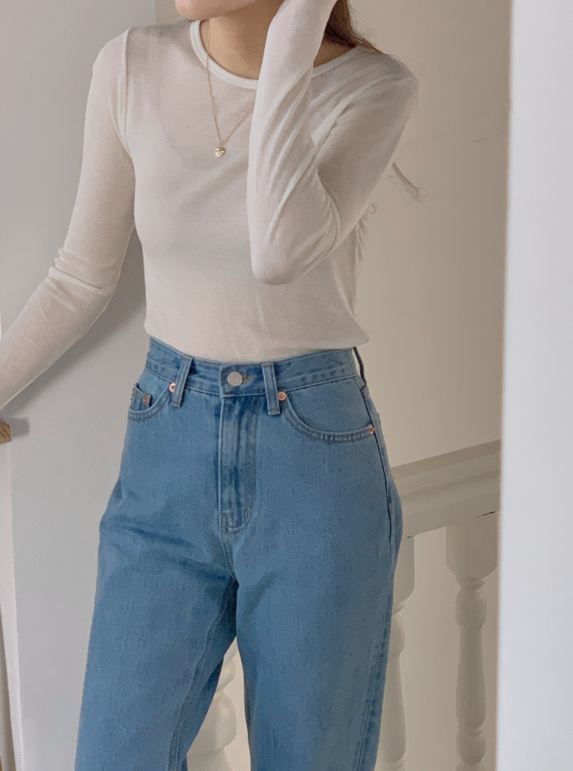Slim fit, Crew neck, Long sleeve, Soft and semi-transparent fabric