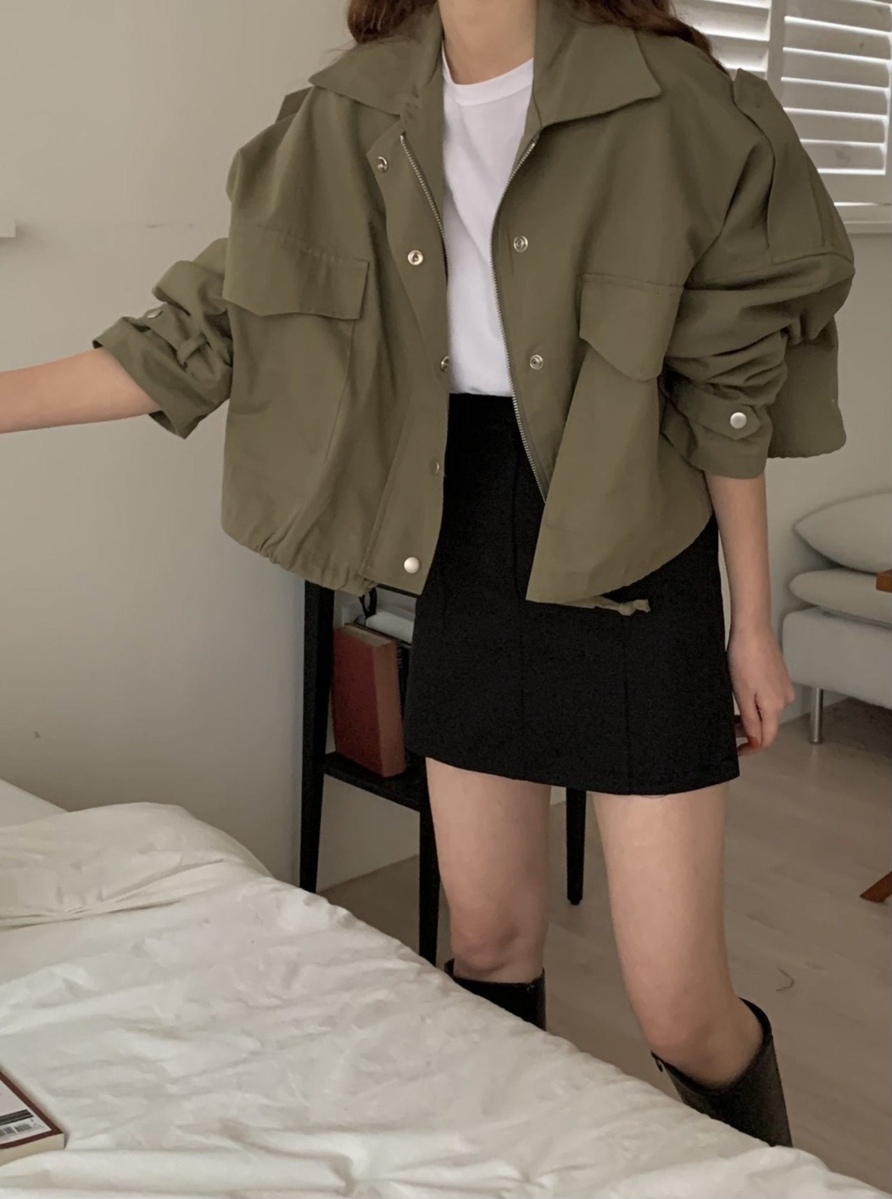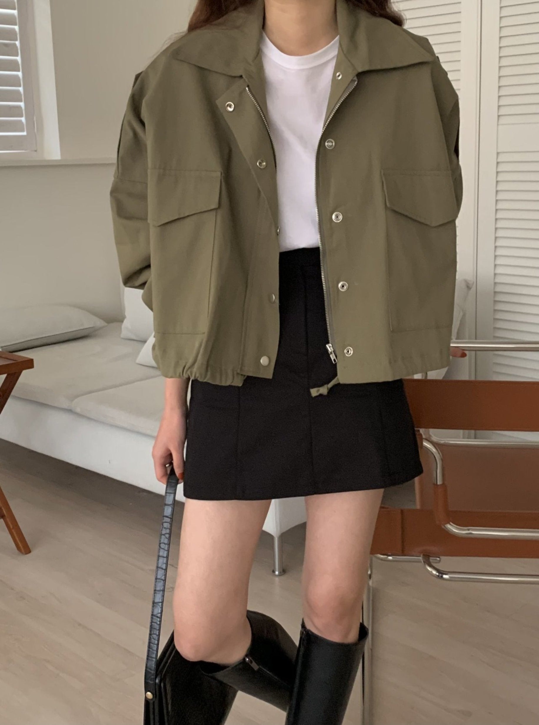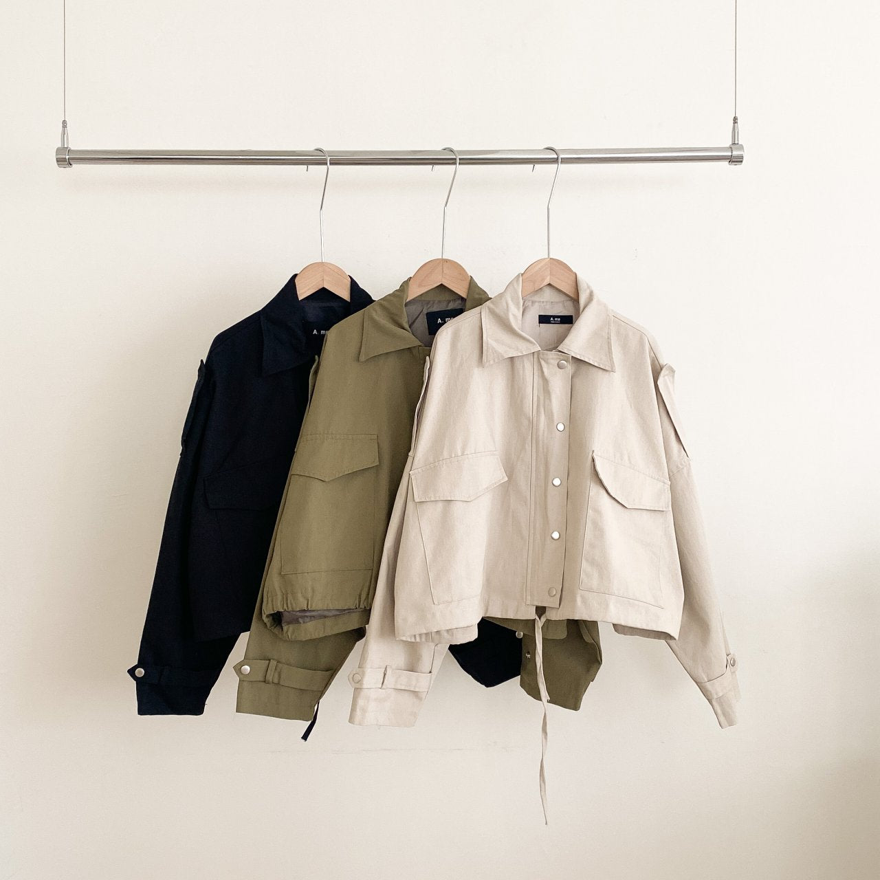 Oversized, Collar neck , Zipper and button closer, Adjustable strap on waist , Pockets