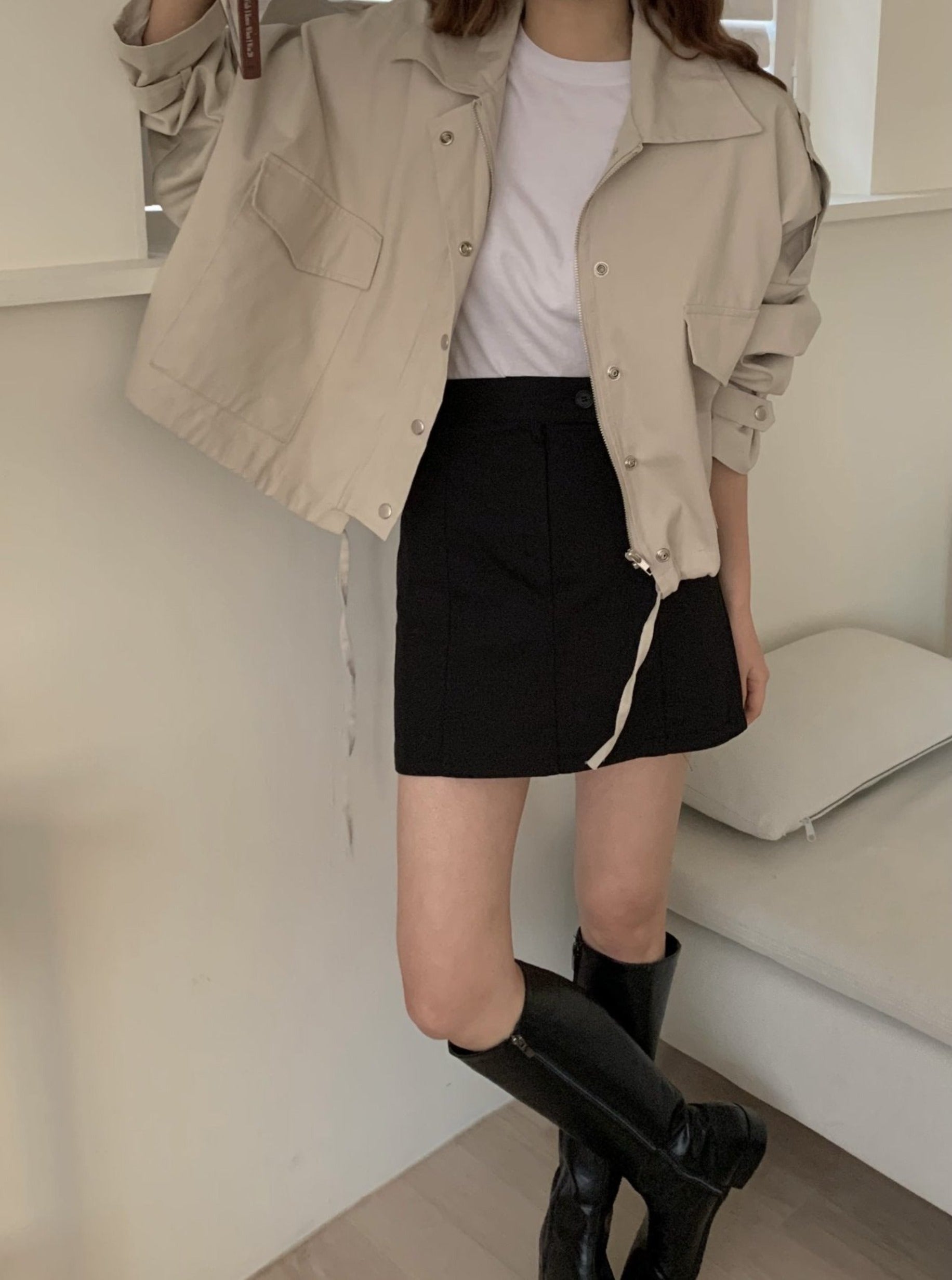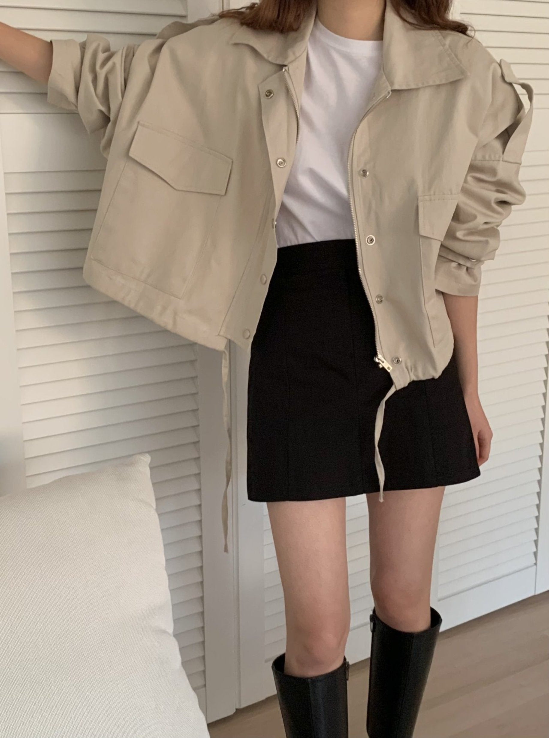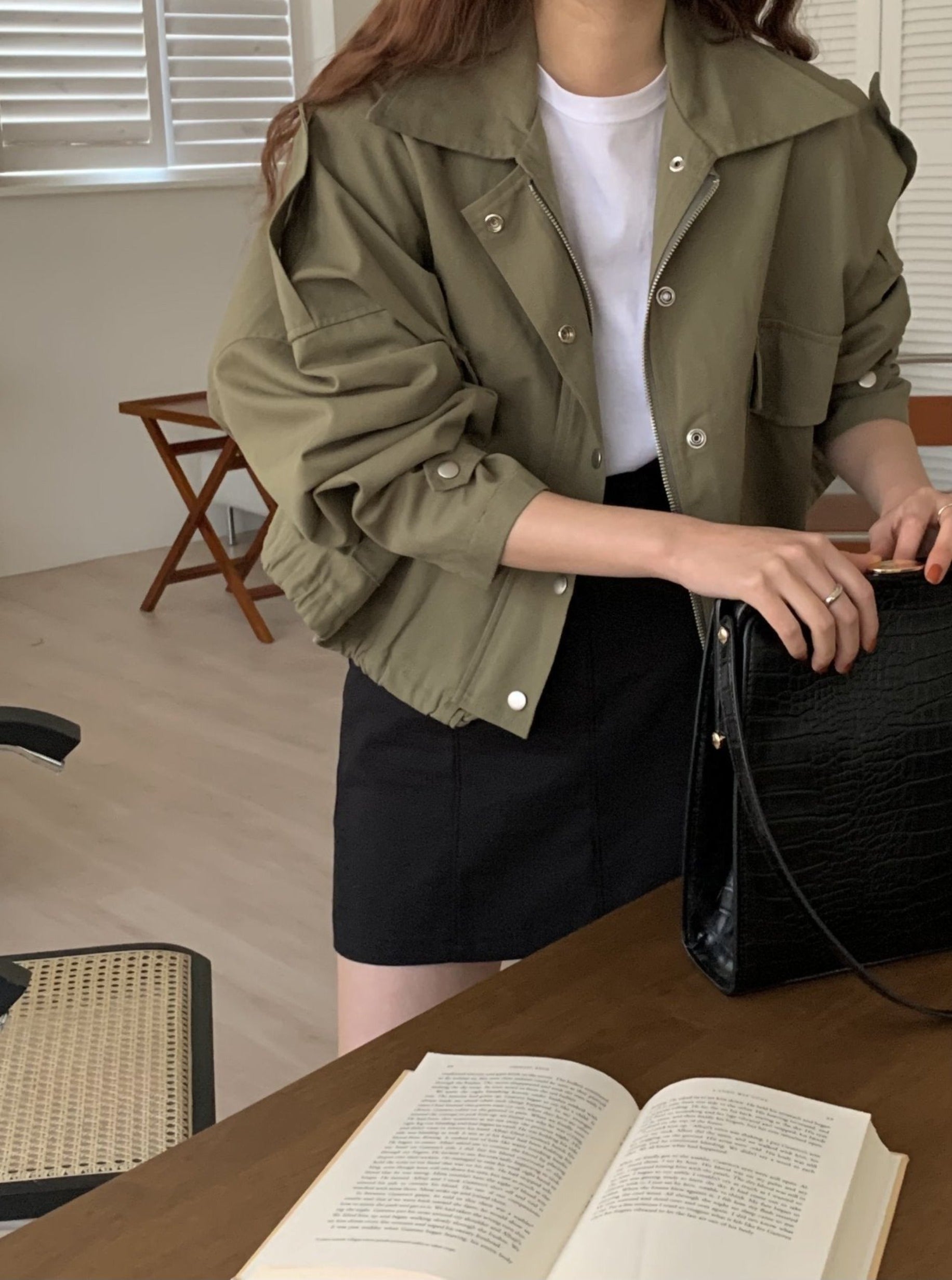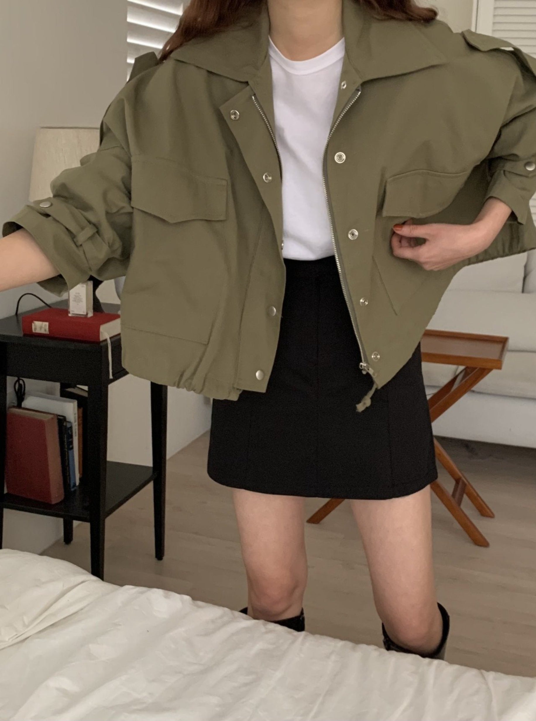 Oversized, Collar neck , Zipper and button closer, Adjustable strap on waist , Pockets