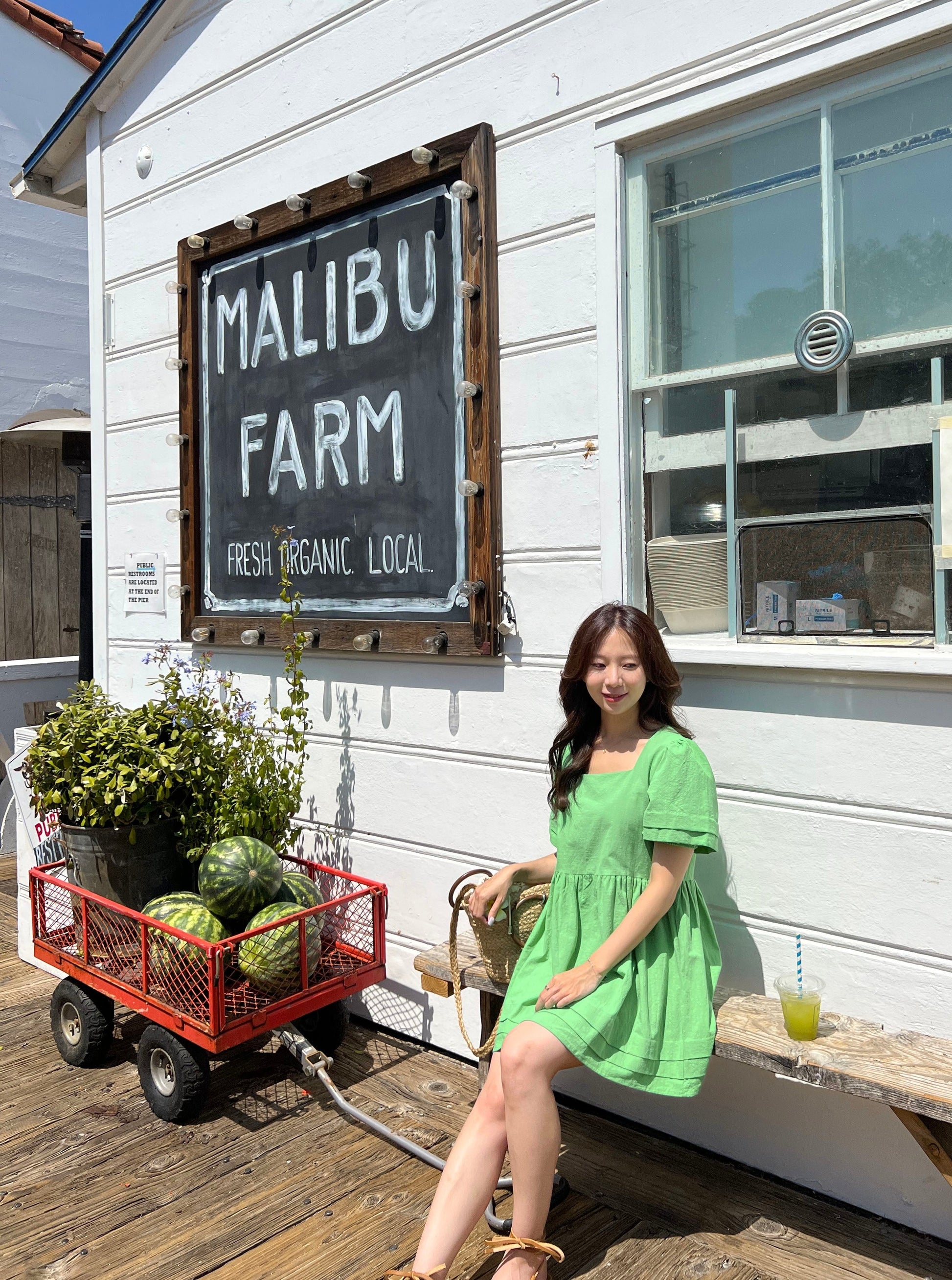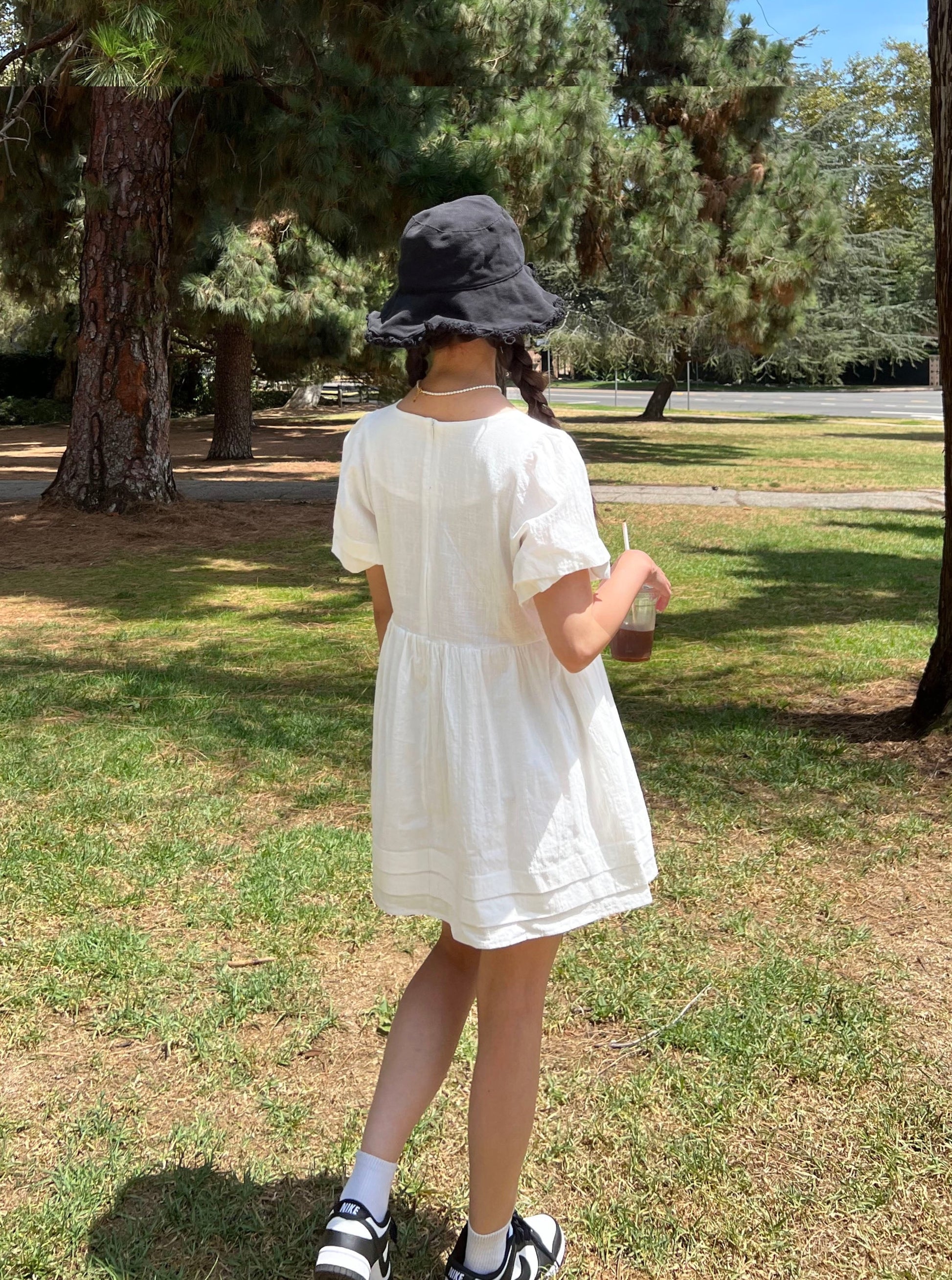 This sweet mini dress is featured in a billowy, square neck silhouette with pin tuck details.