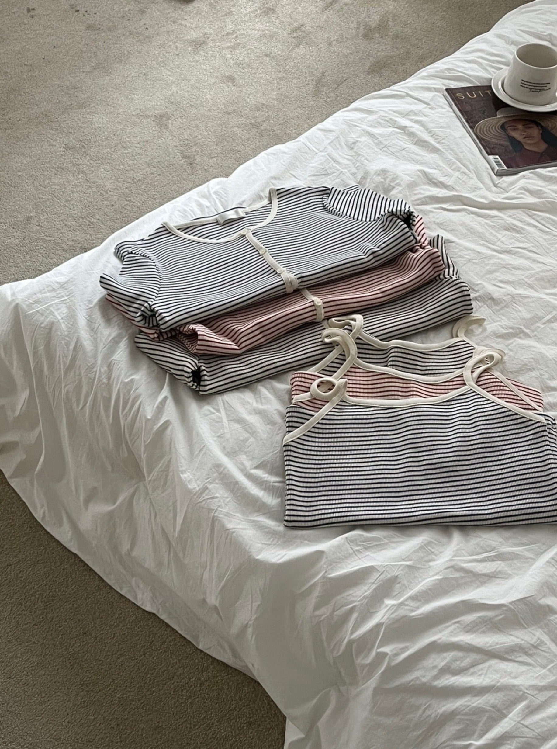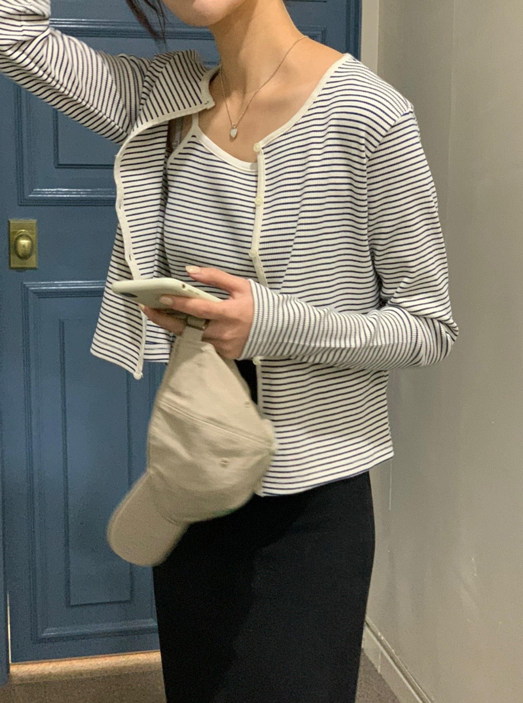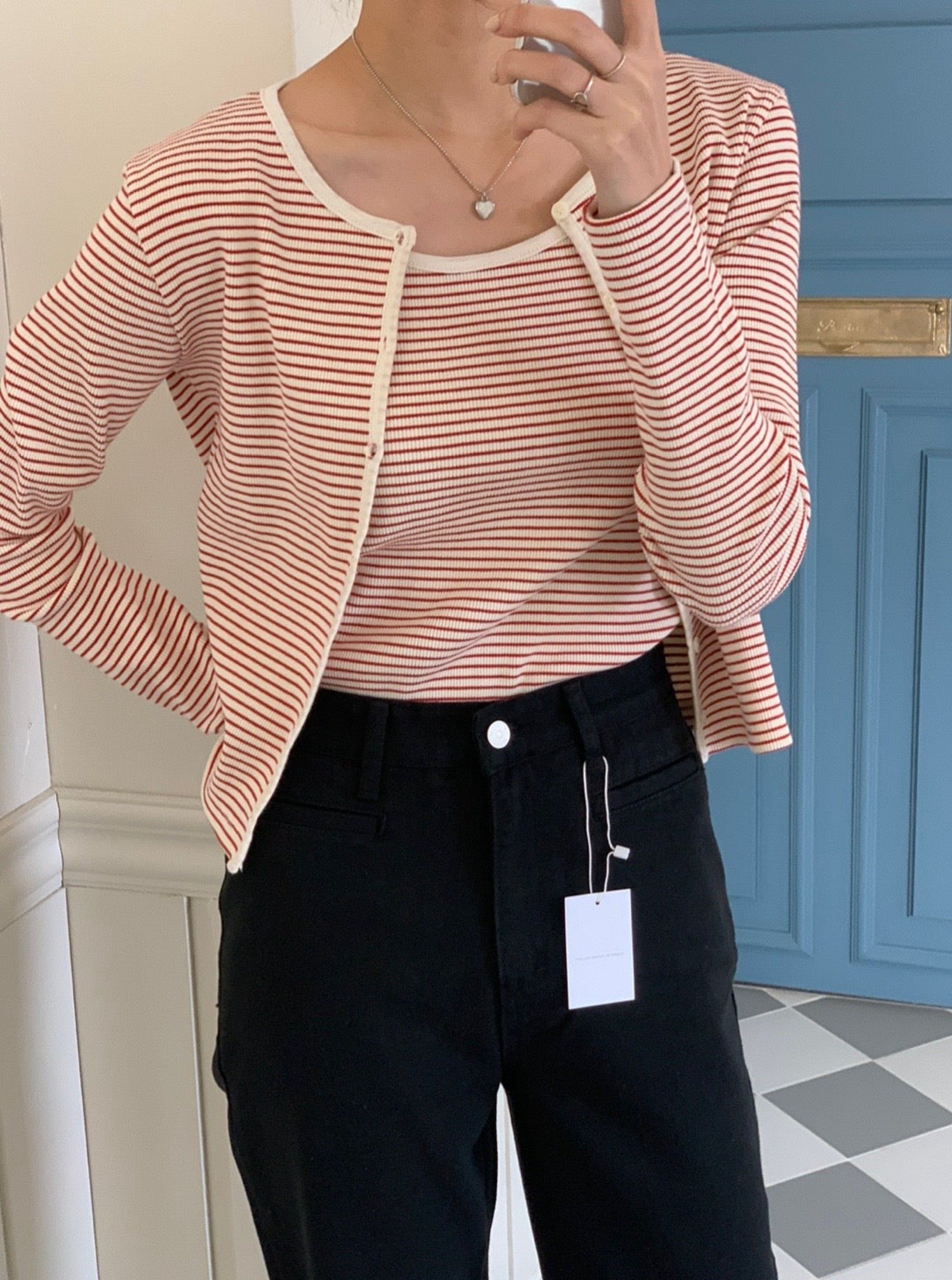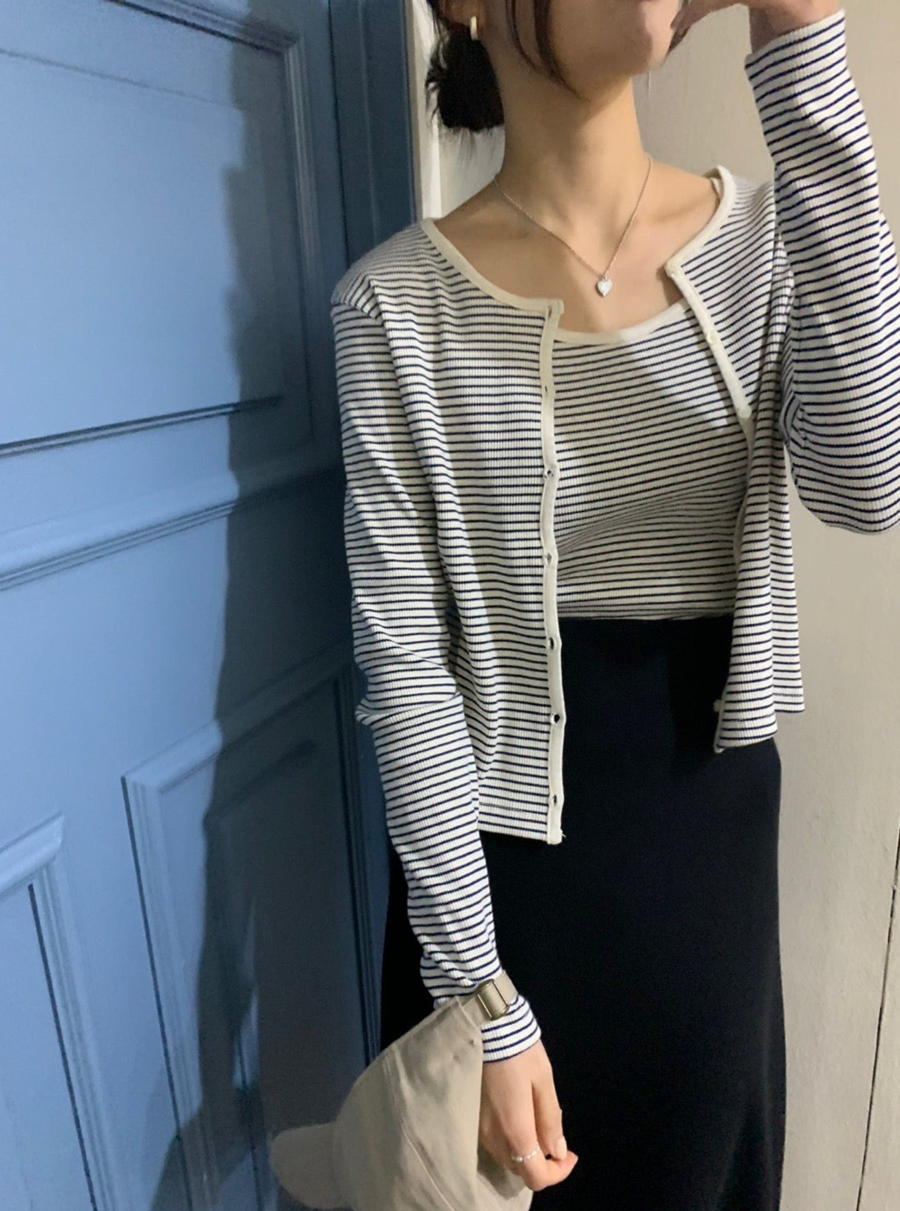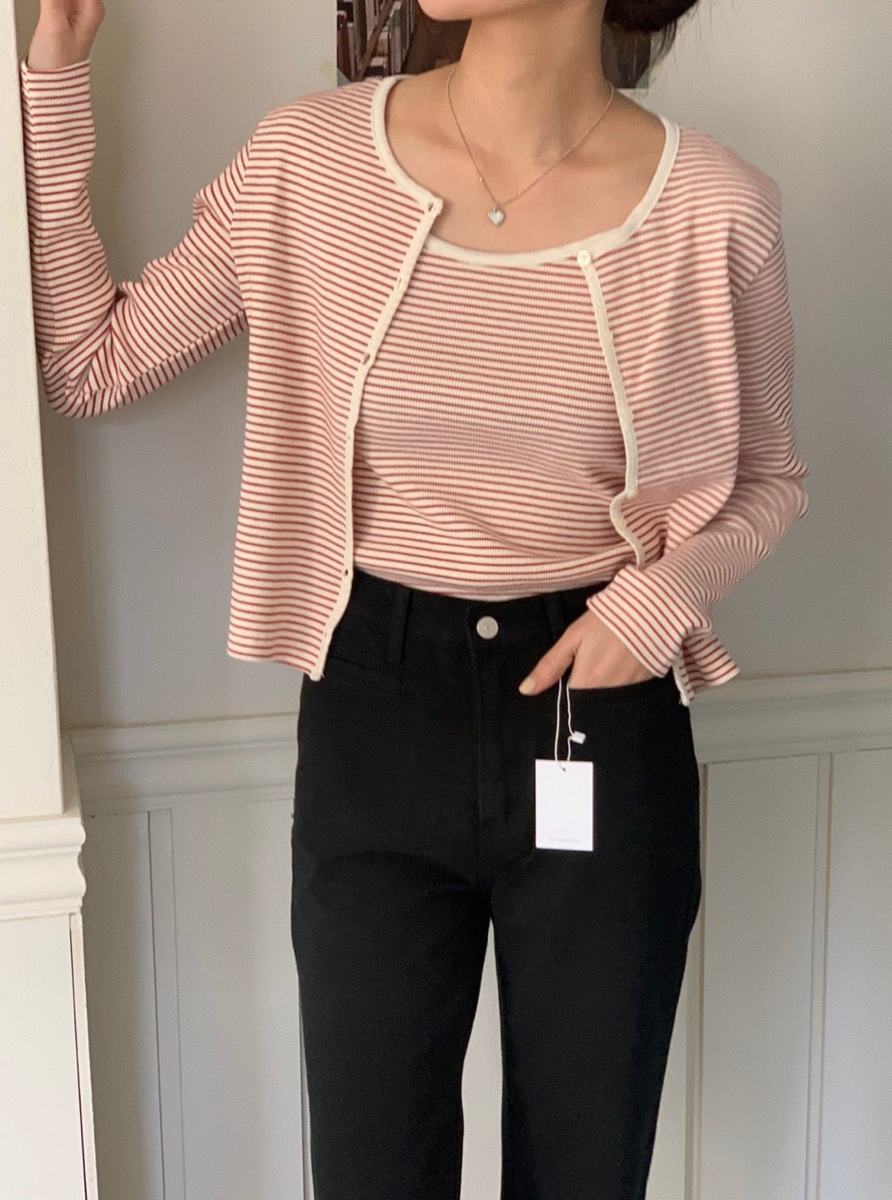 Cami and cardigan with stripe knit fabric 2pcs set.