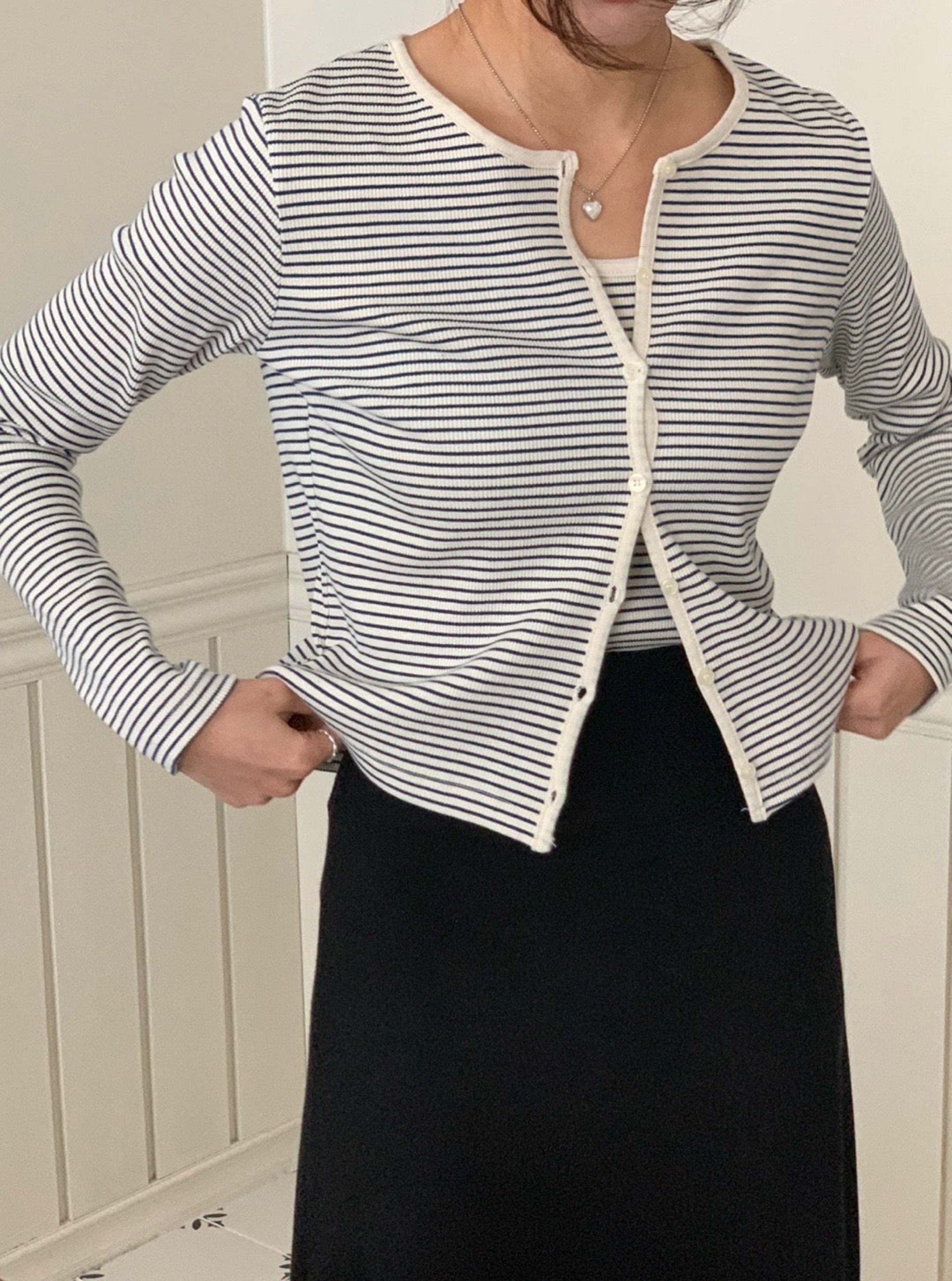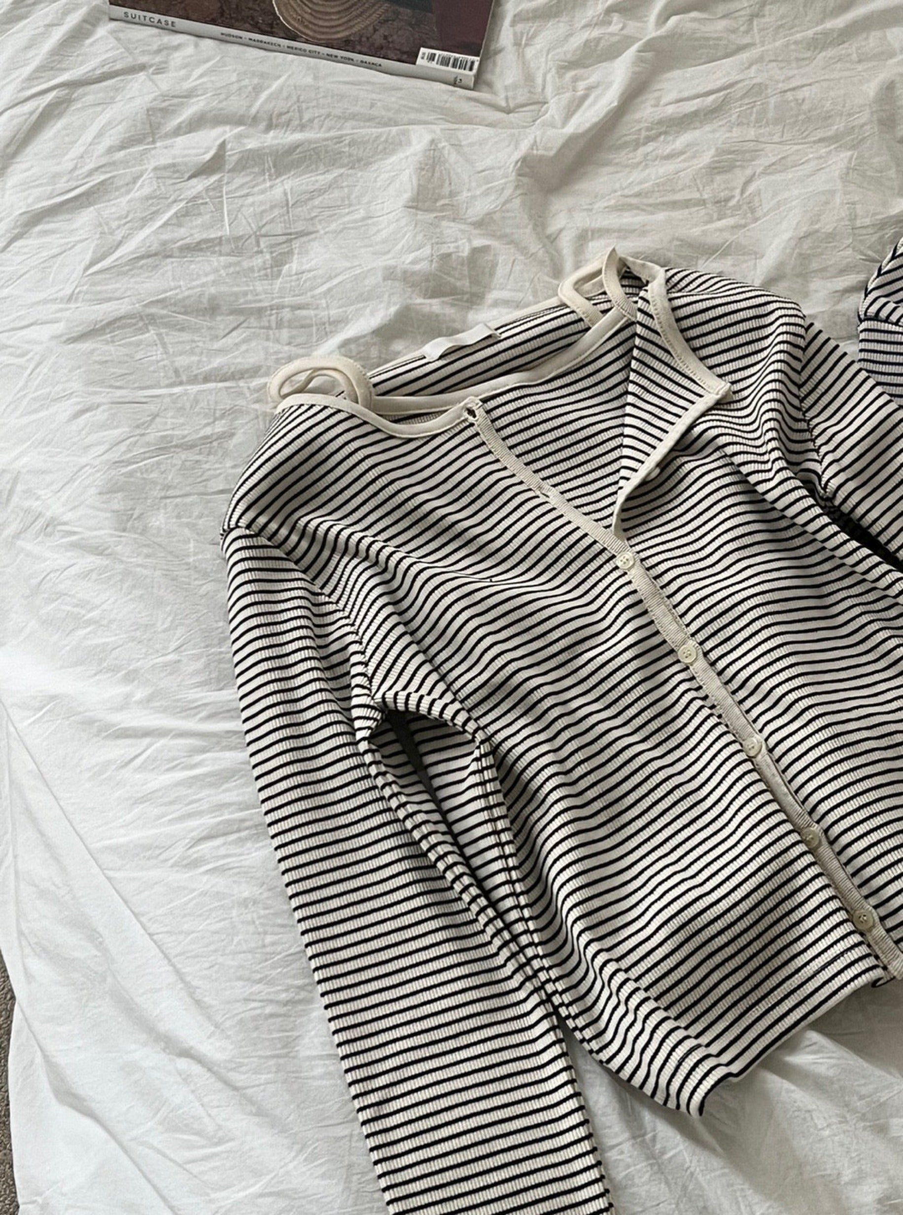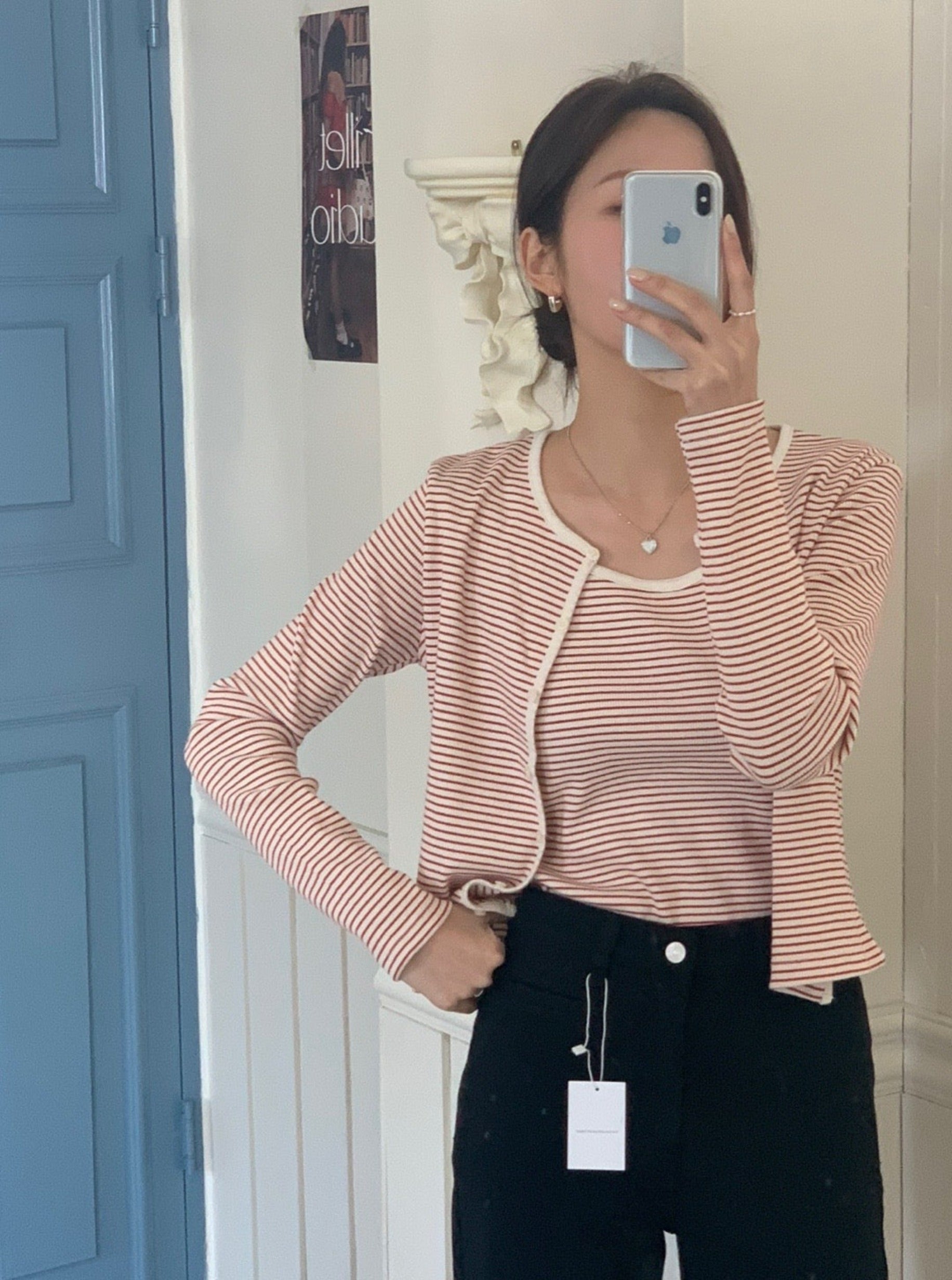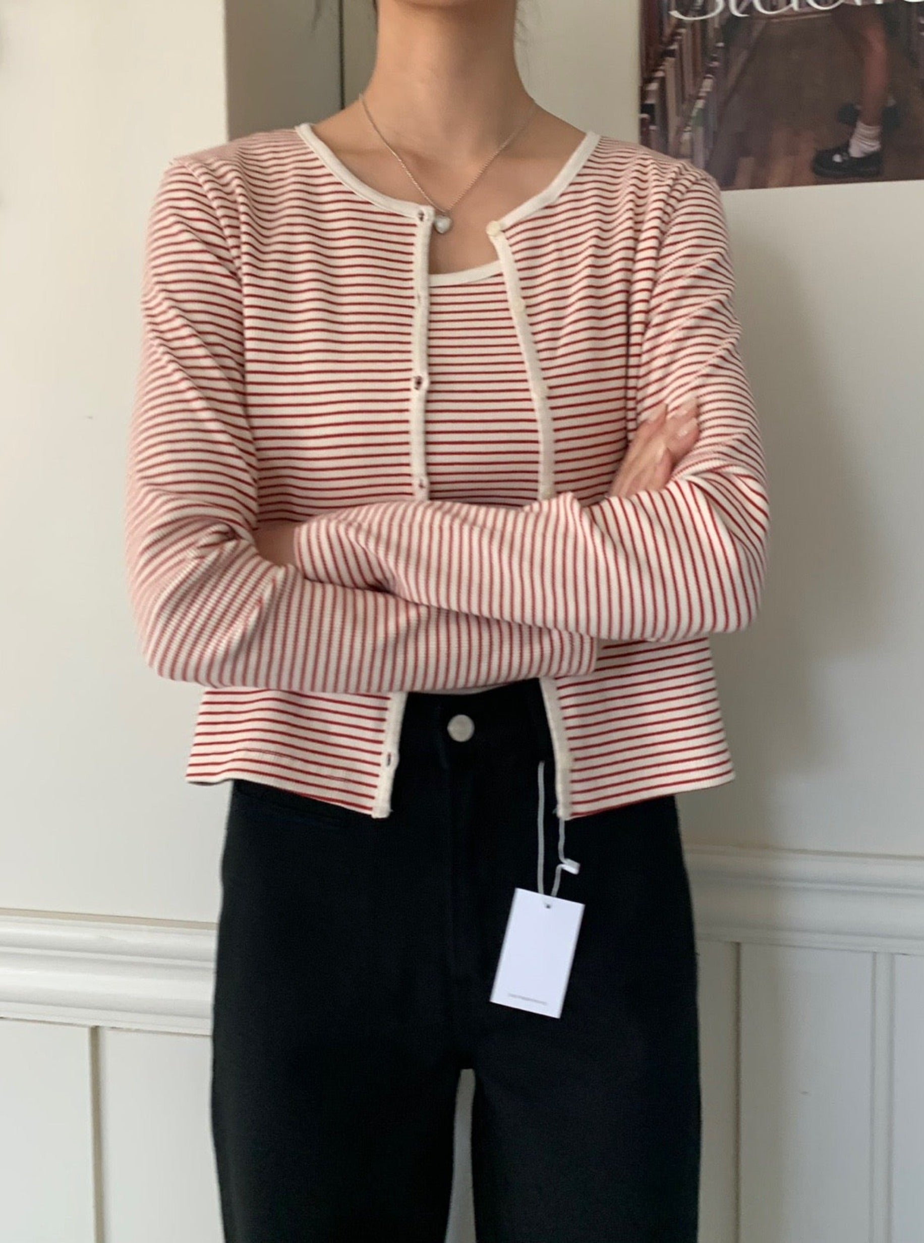 Cami and cardigan with stripe knit fabric 2pcs set.