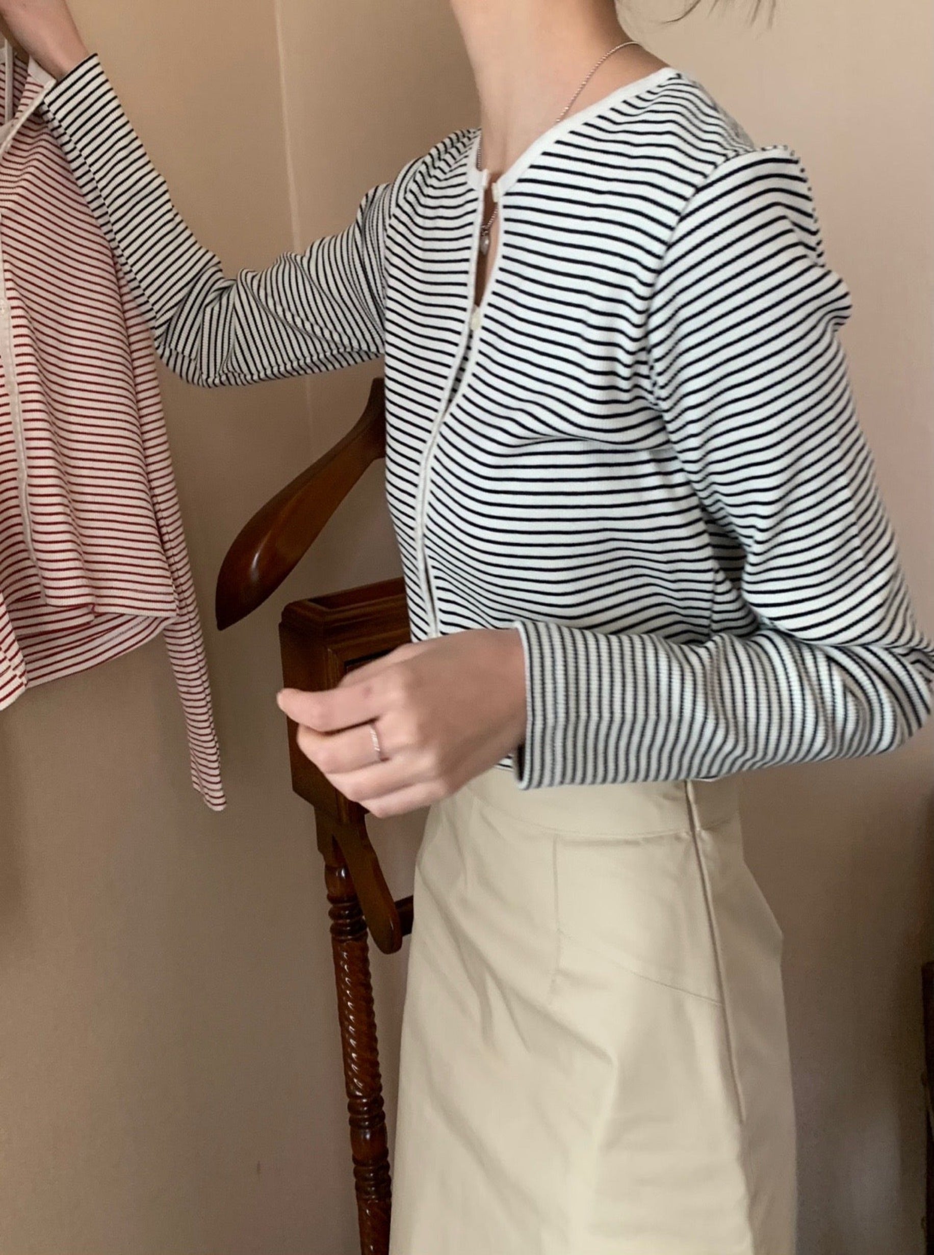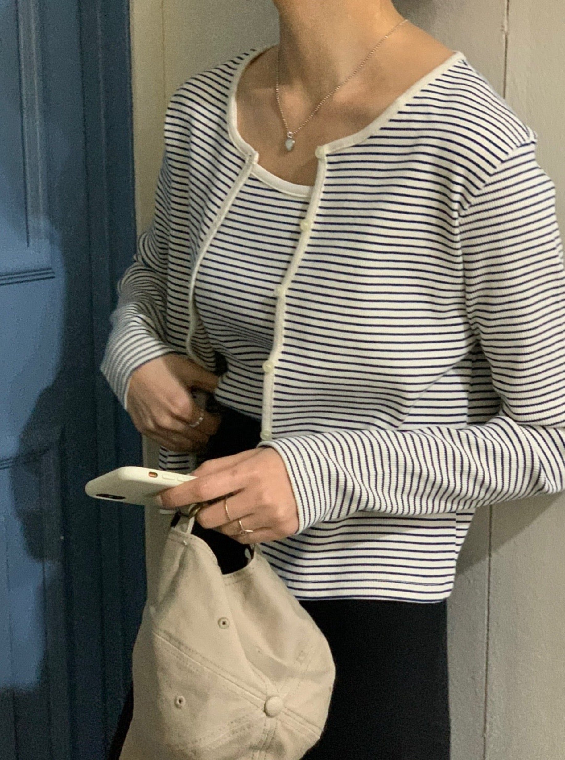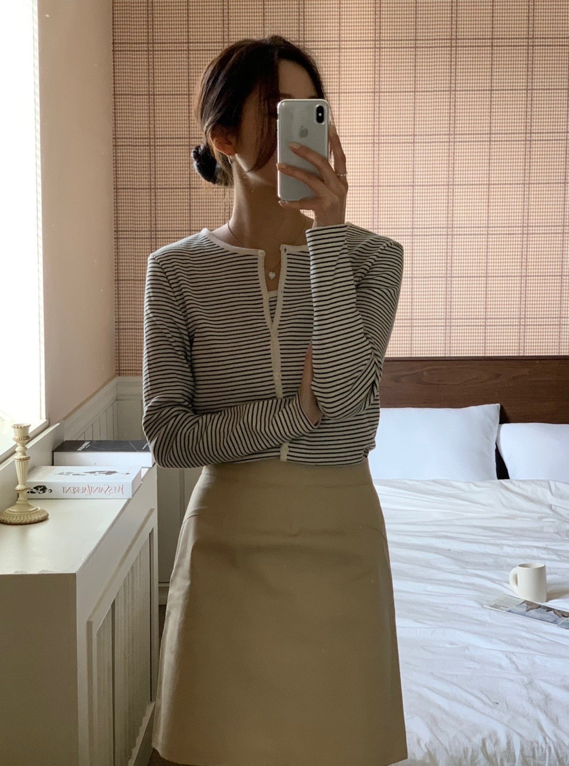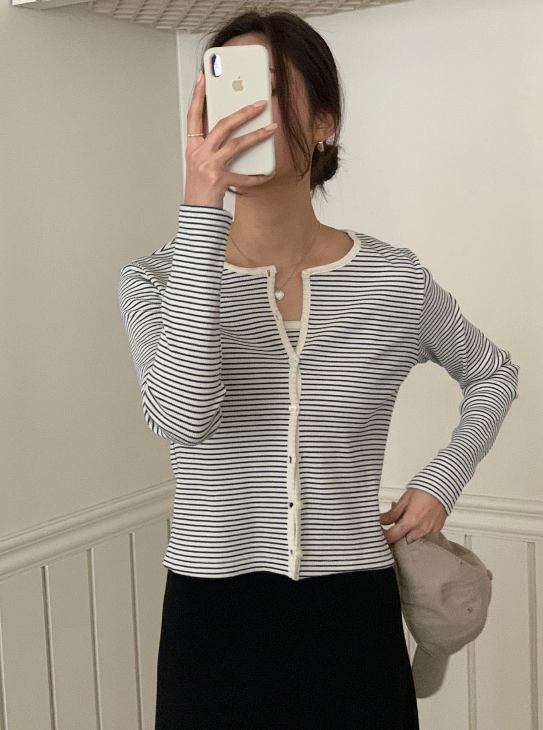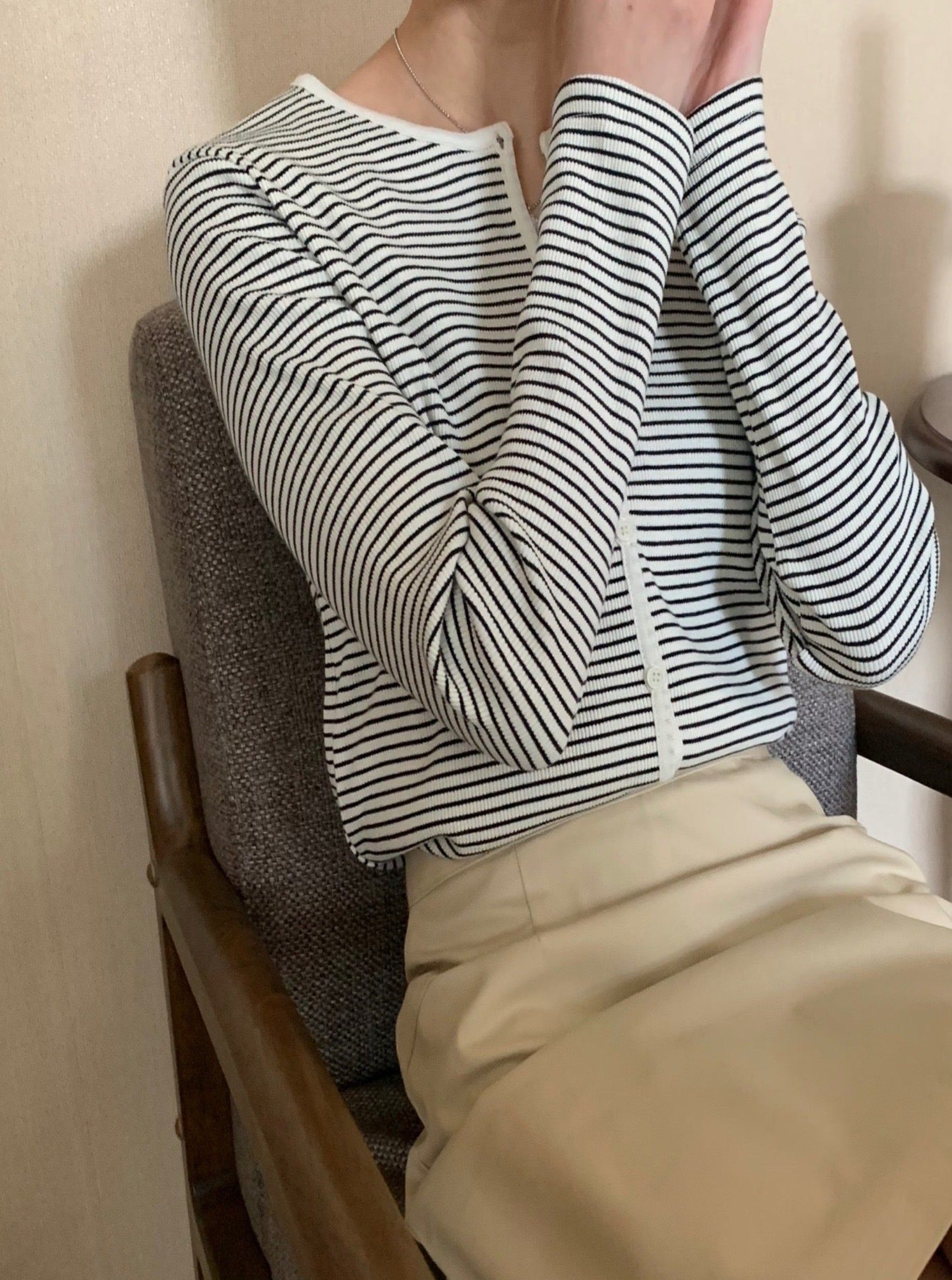 Cami and cardigan with stripe knit fabric 2pcs set.