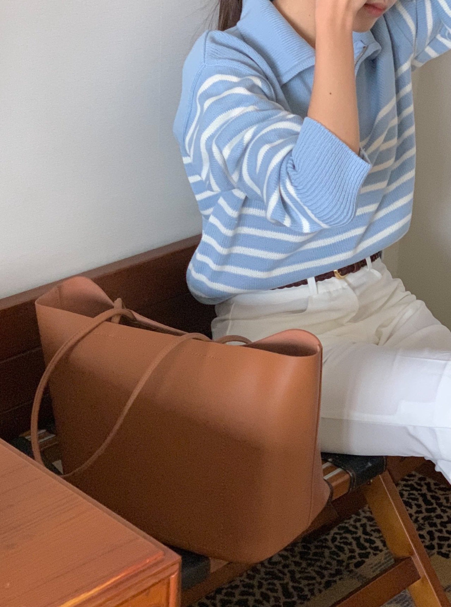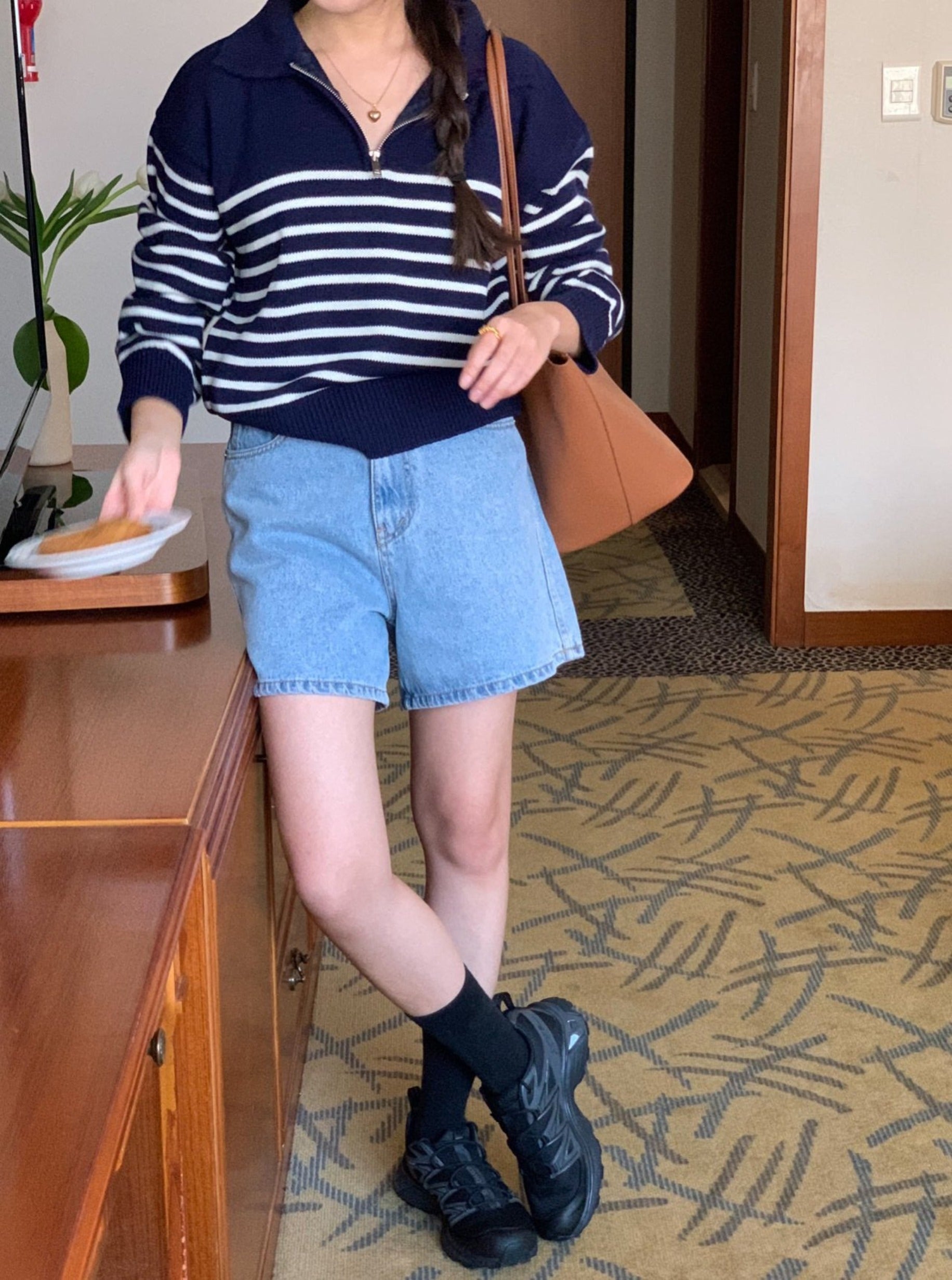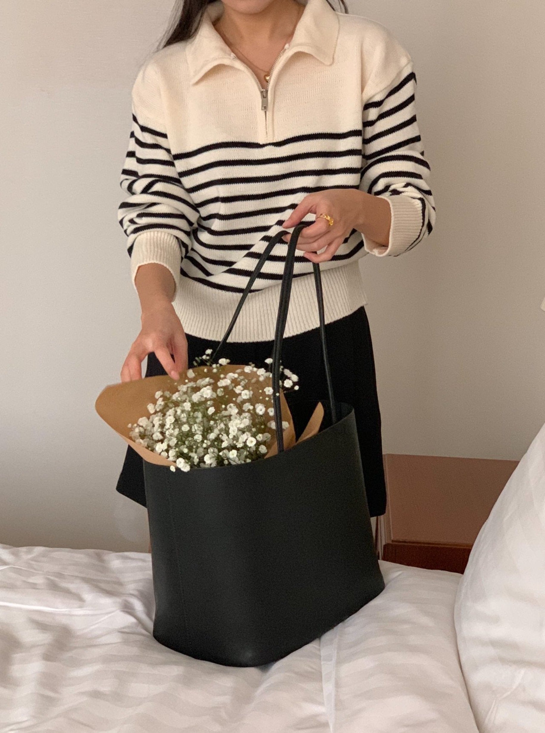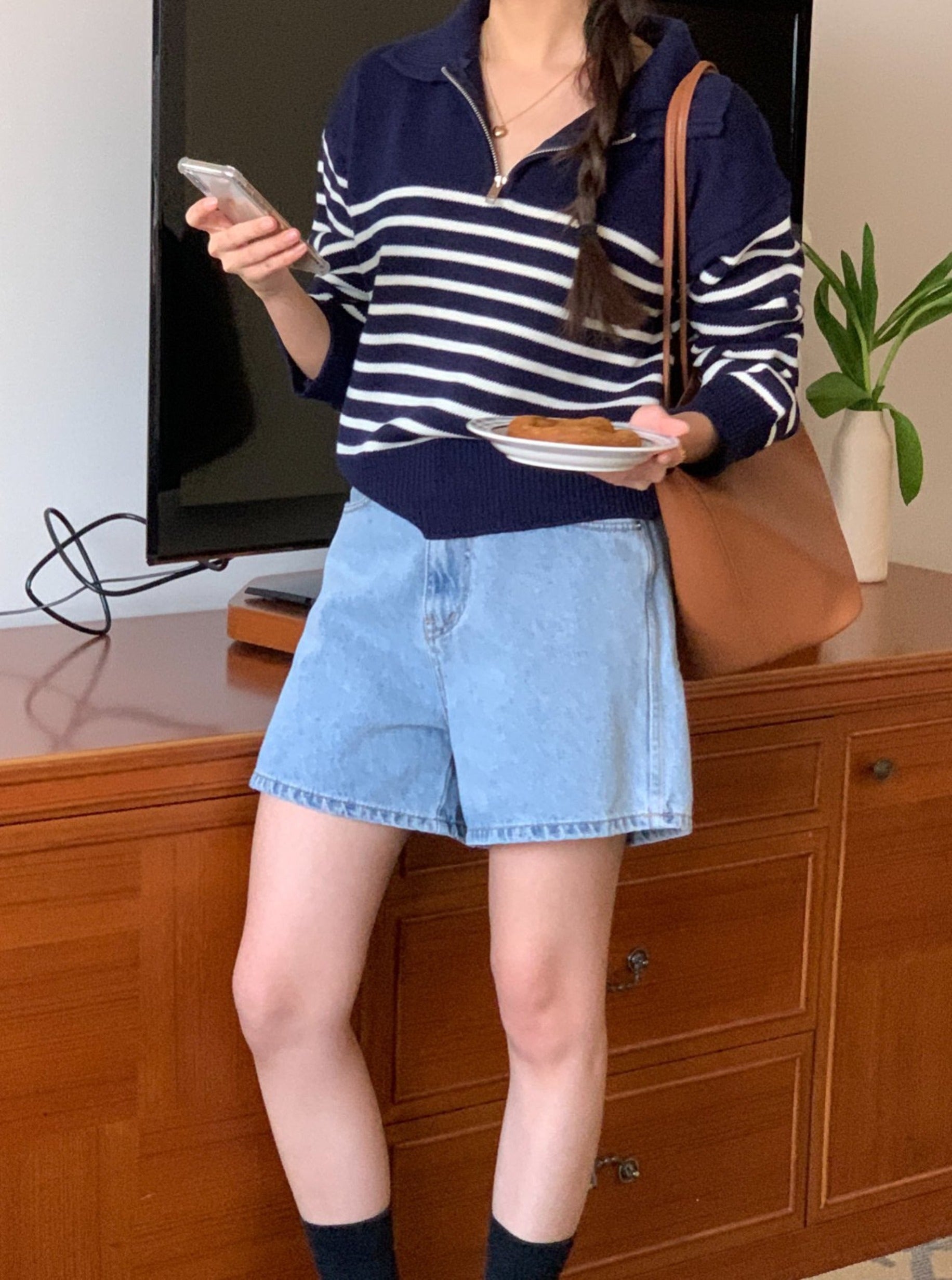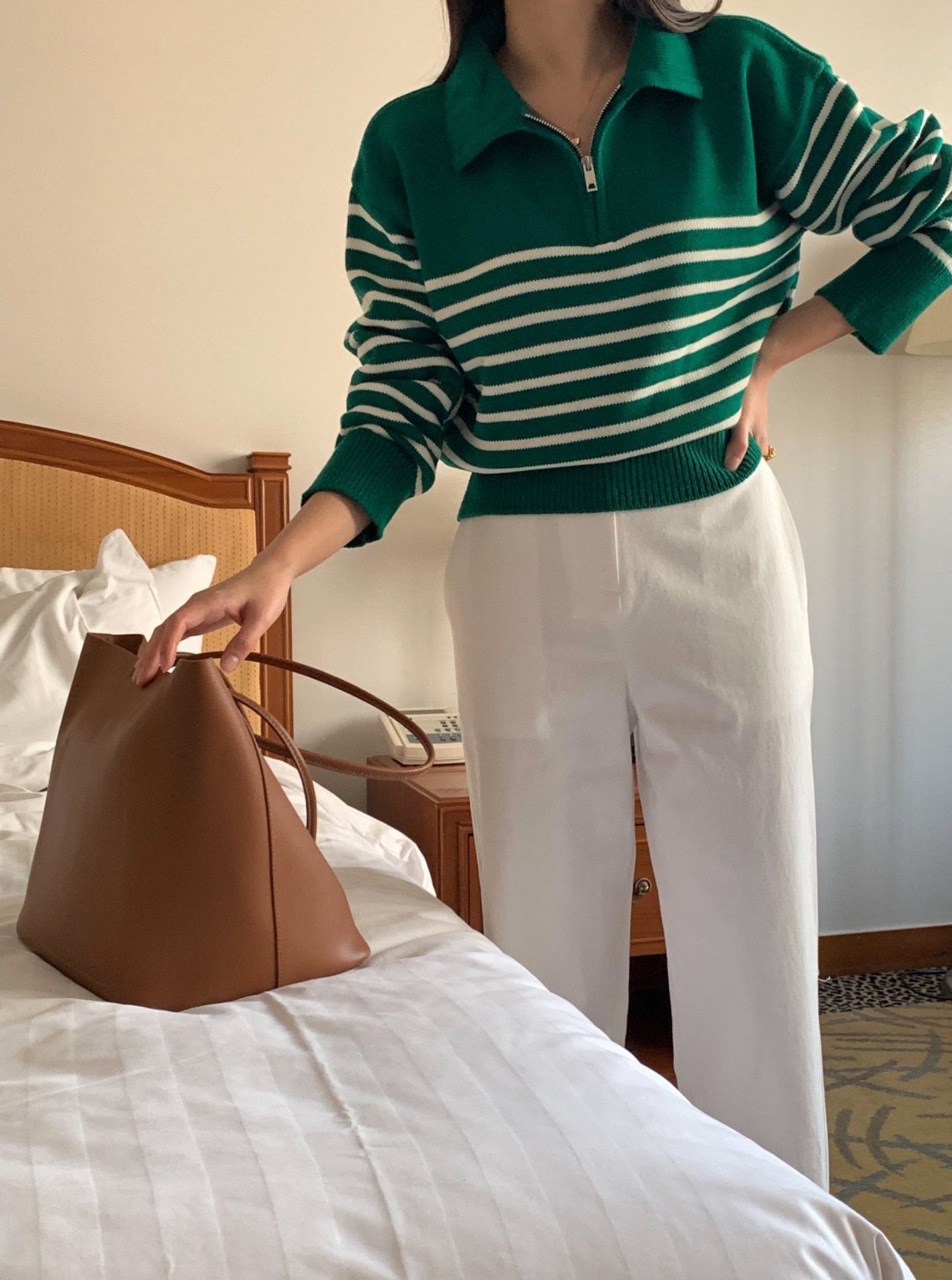 This cozy knit top is featured in a collar neck , drop shoulder with half zip-up.