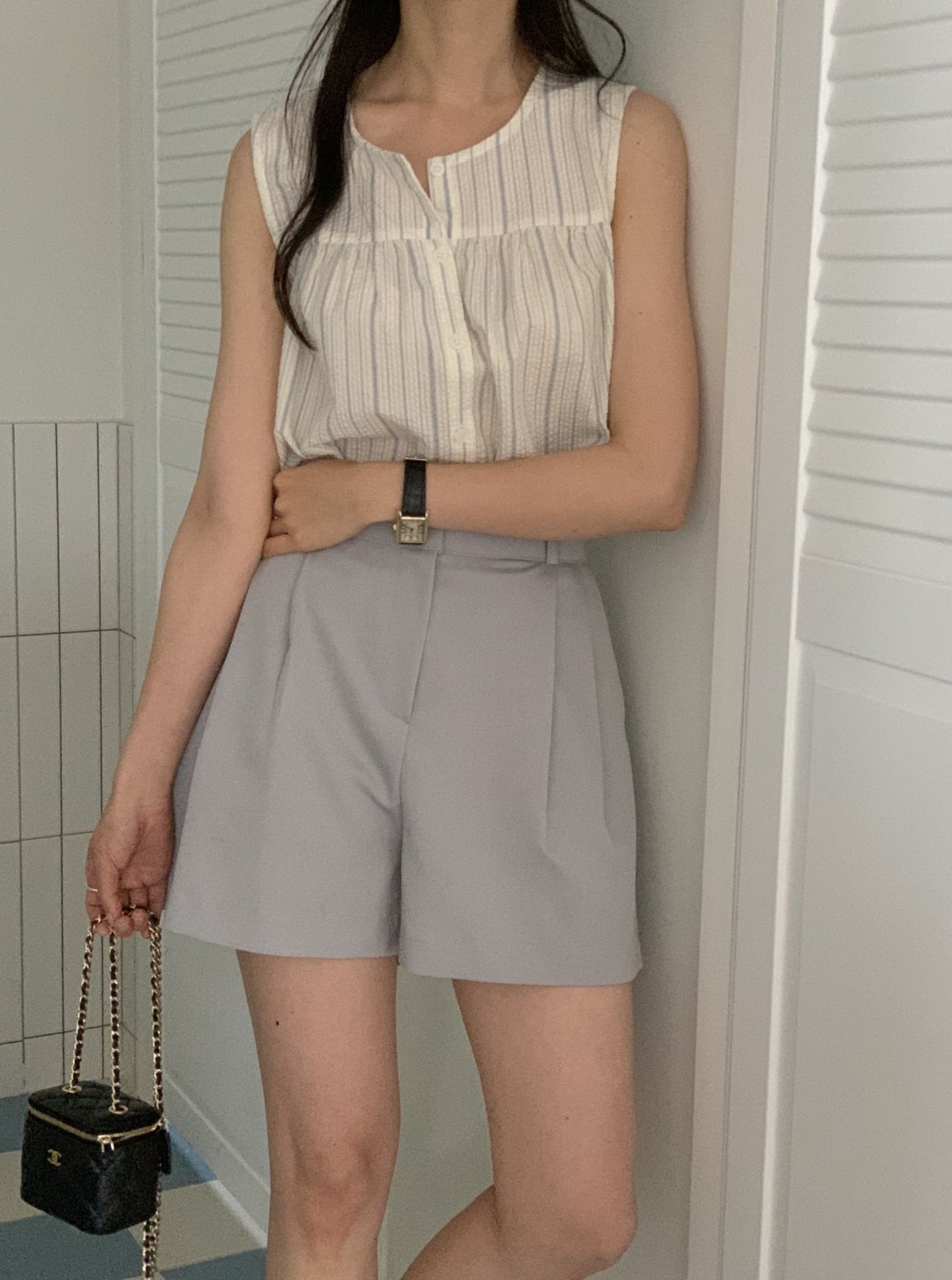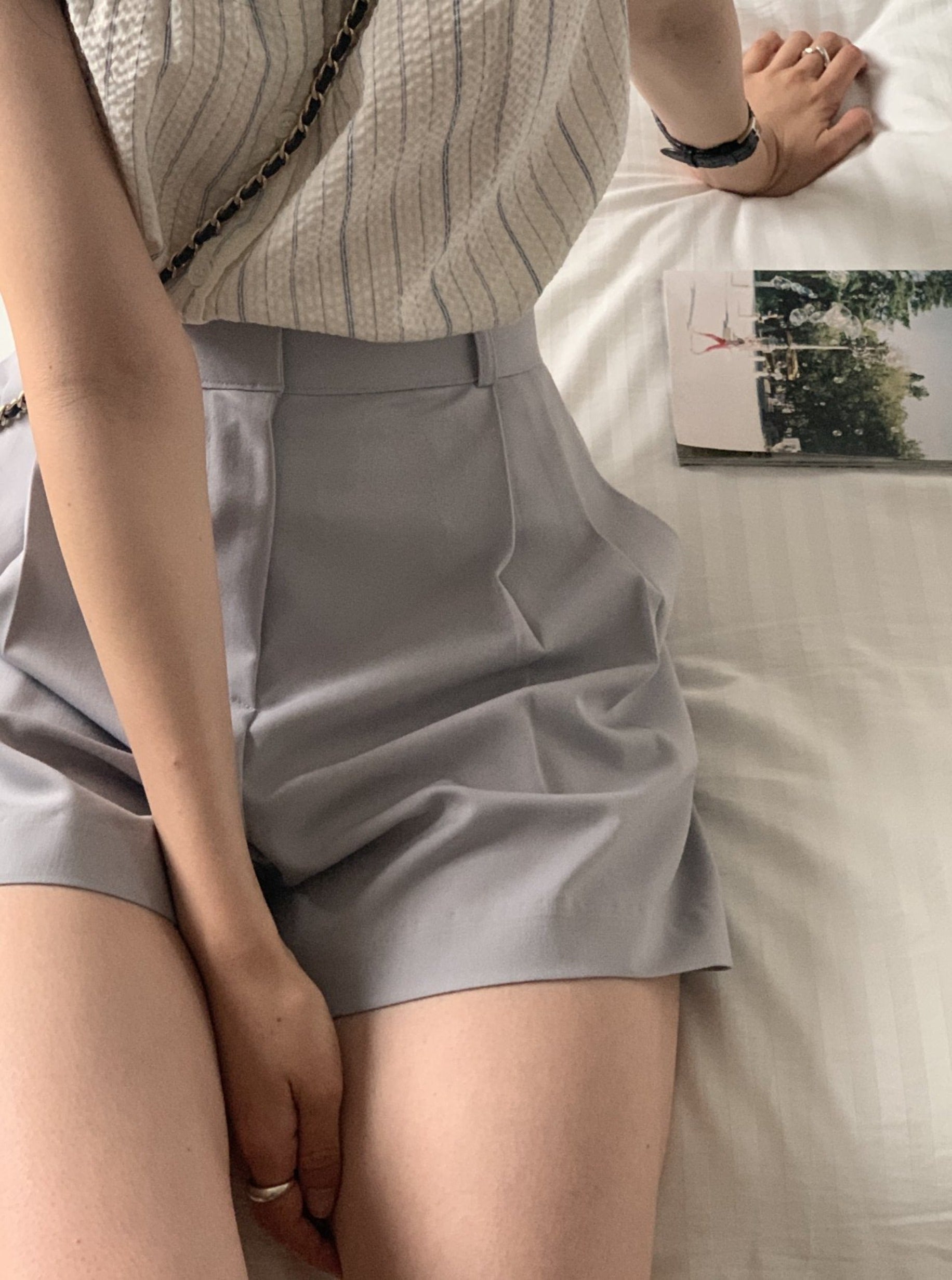 Pockets, Zip-fly and slide hook closure , High-waist, Pin-tucked, A-Line silhouette