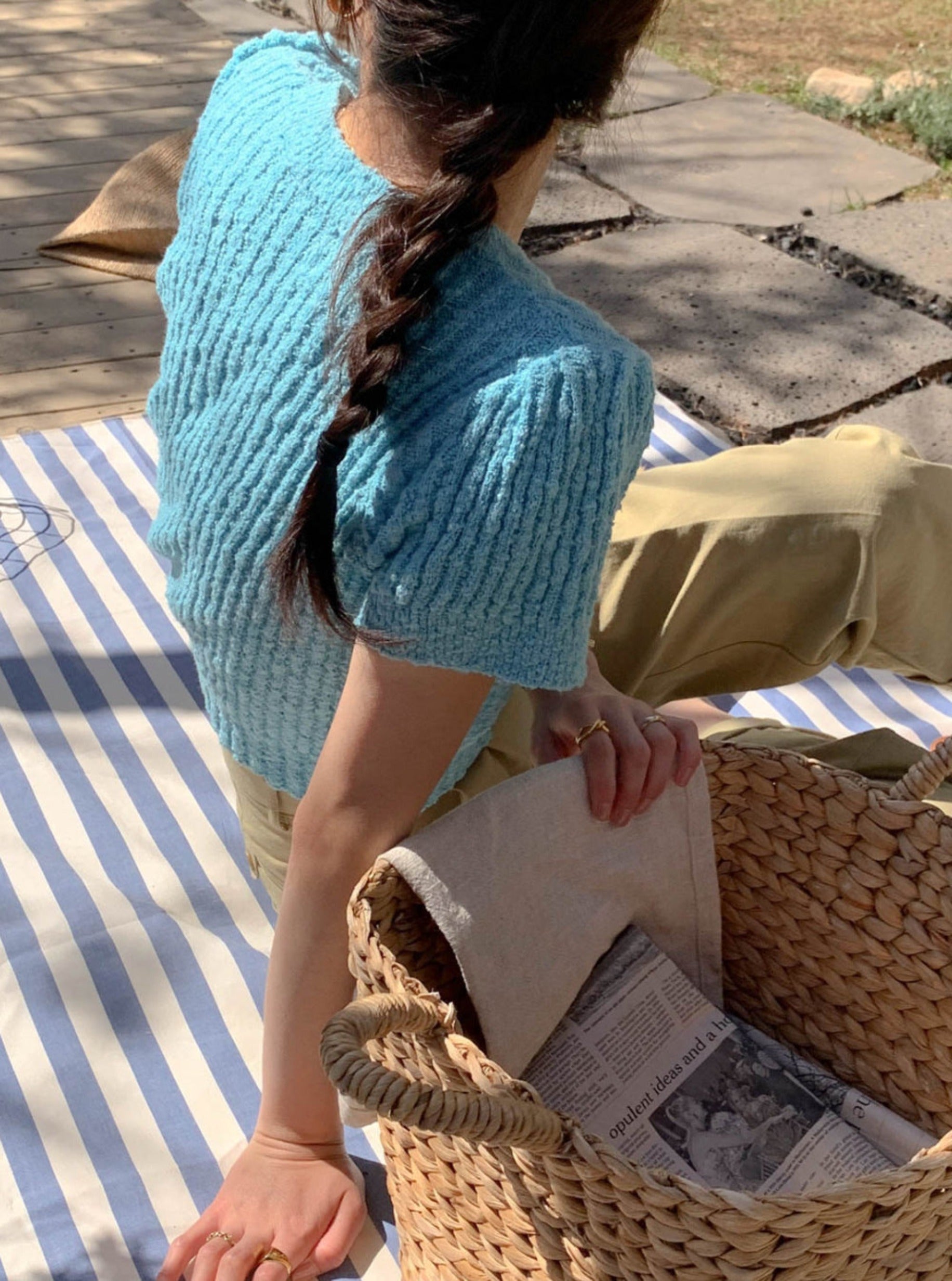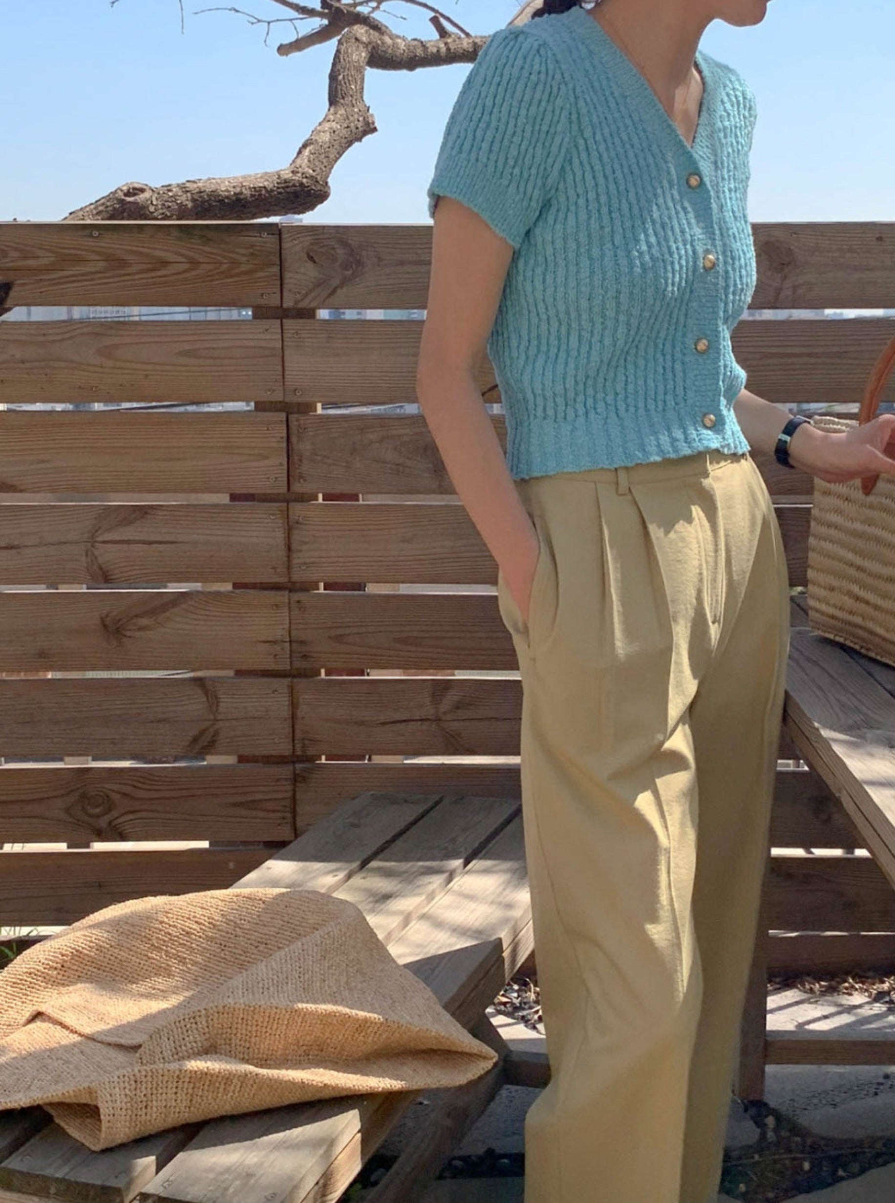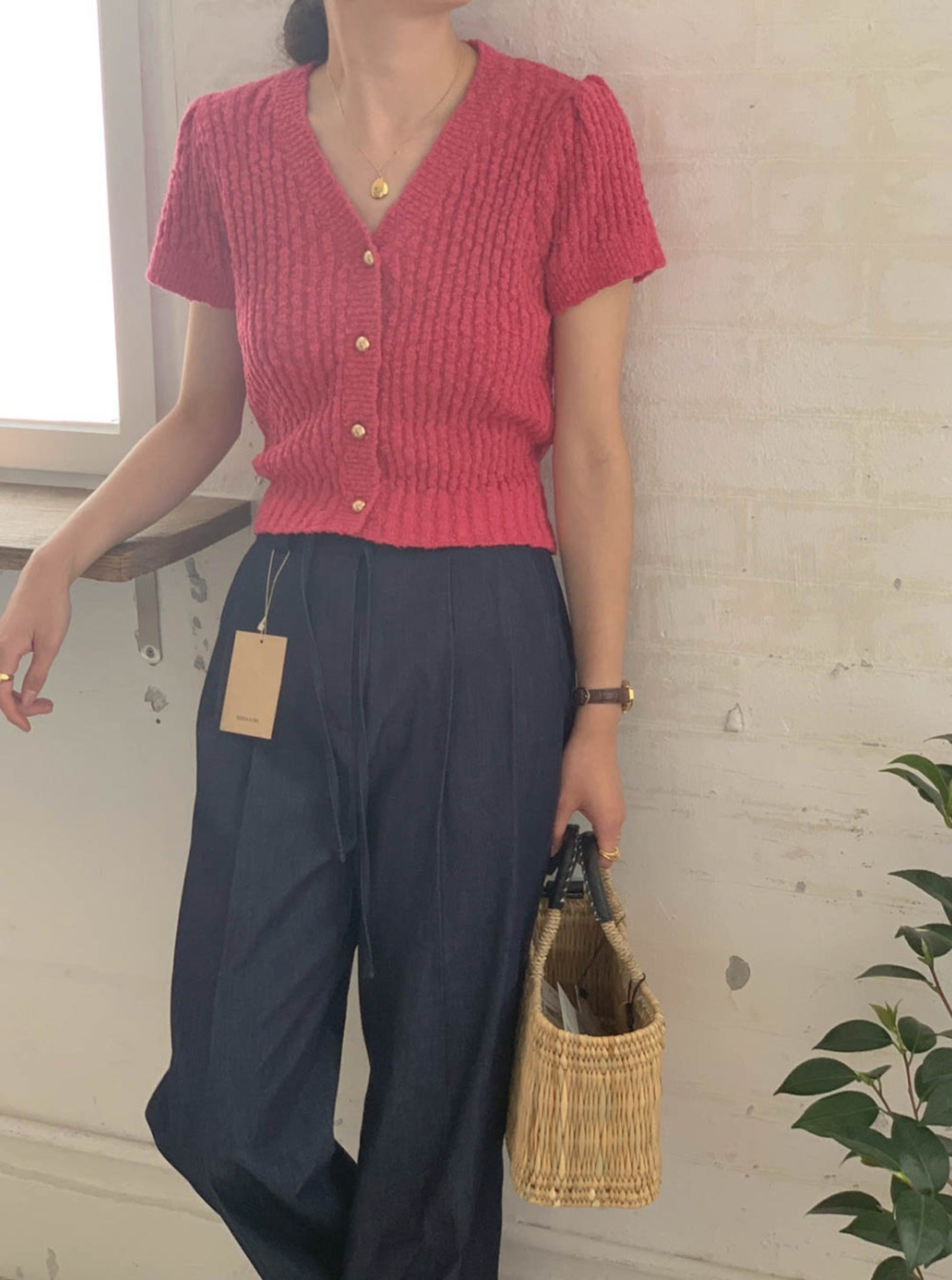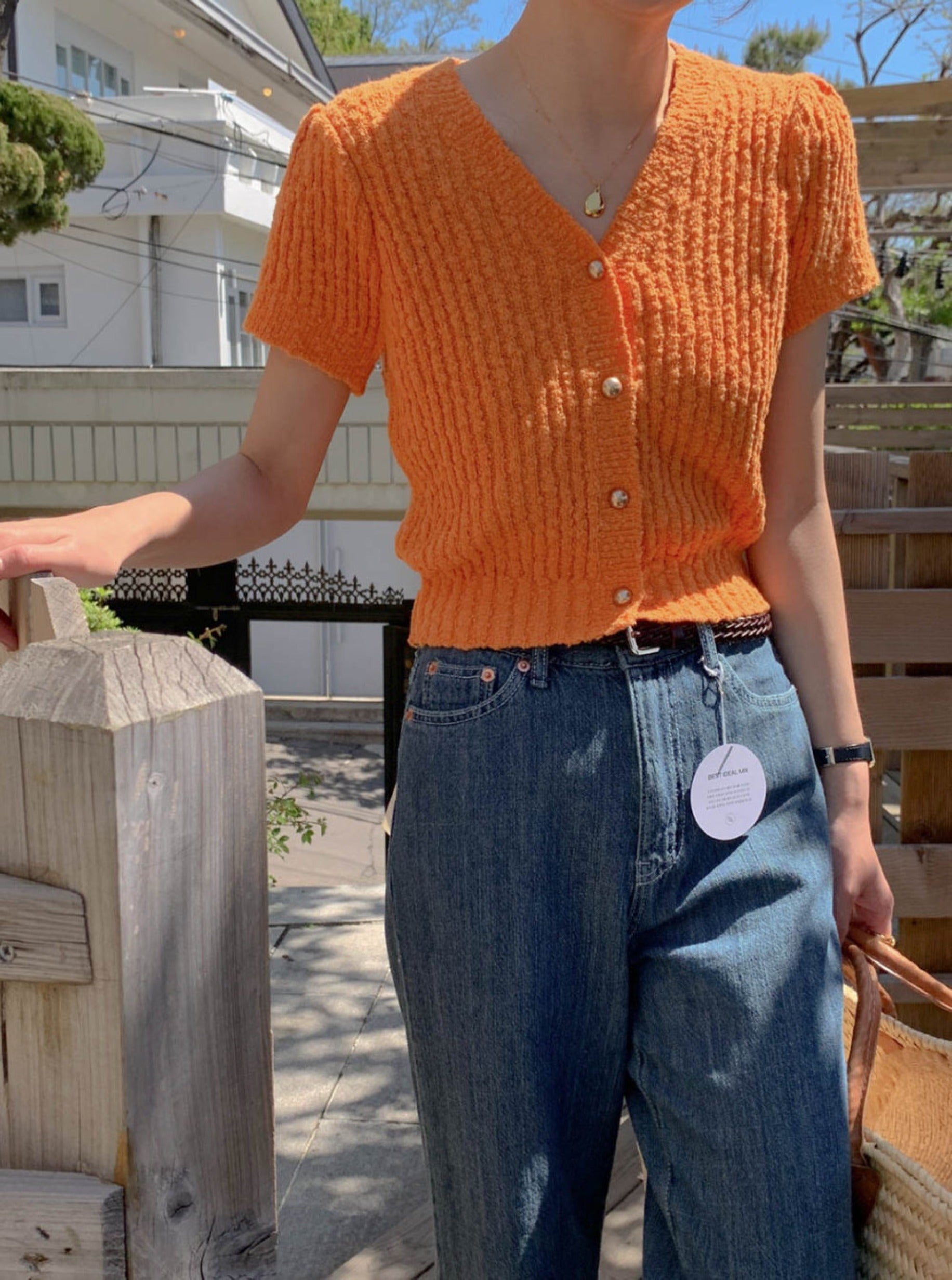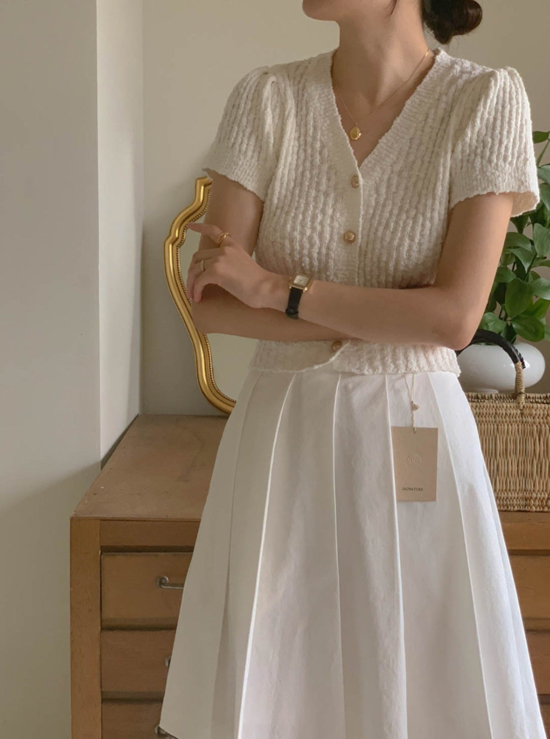 V neck, Button down, Short puff sleeve, Soft and cozy fabric