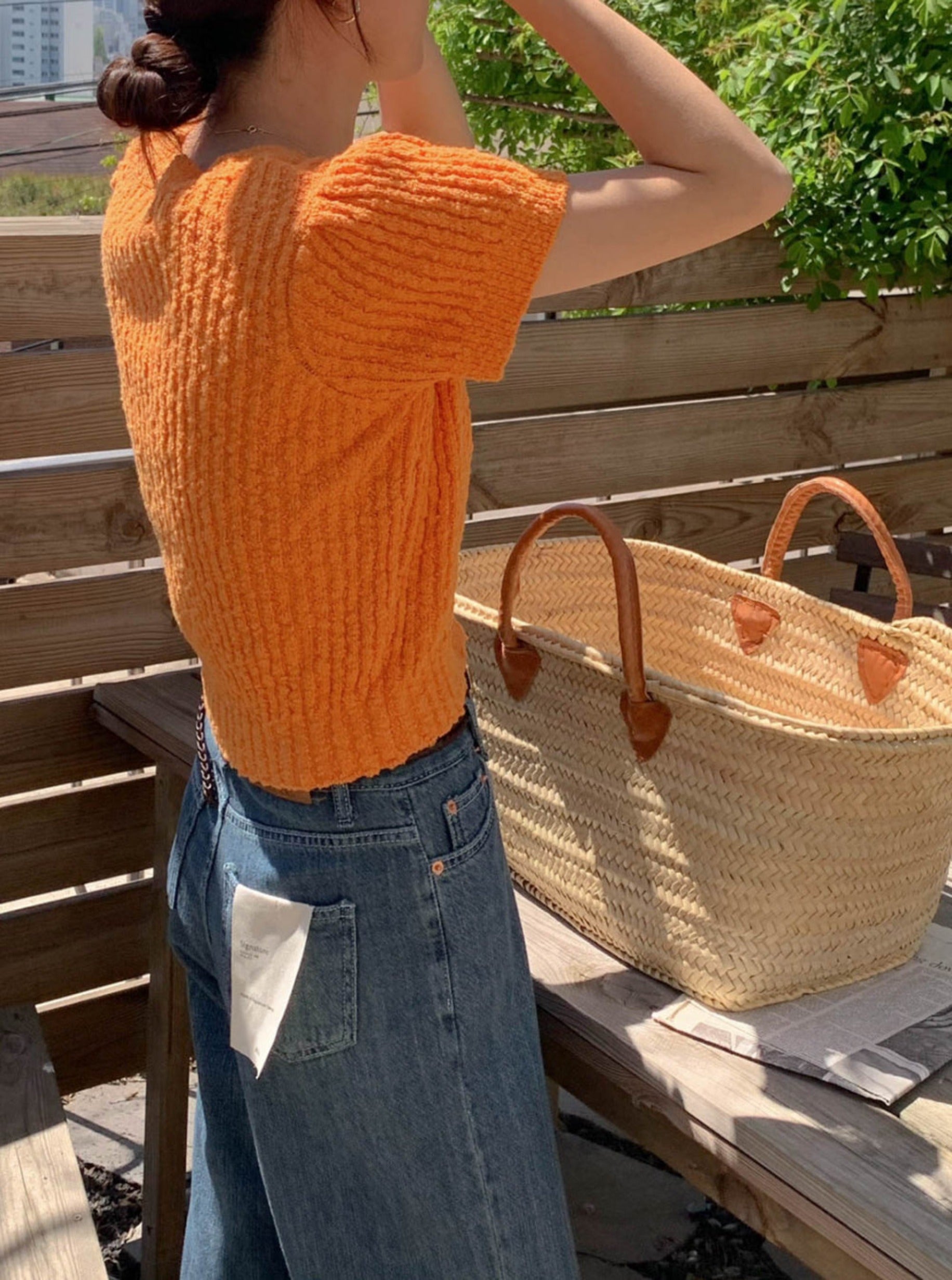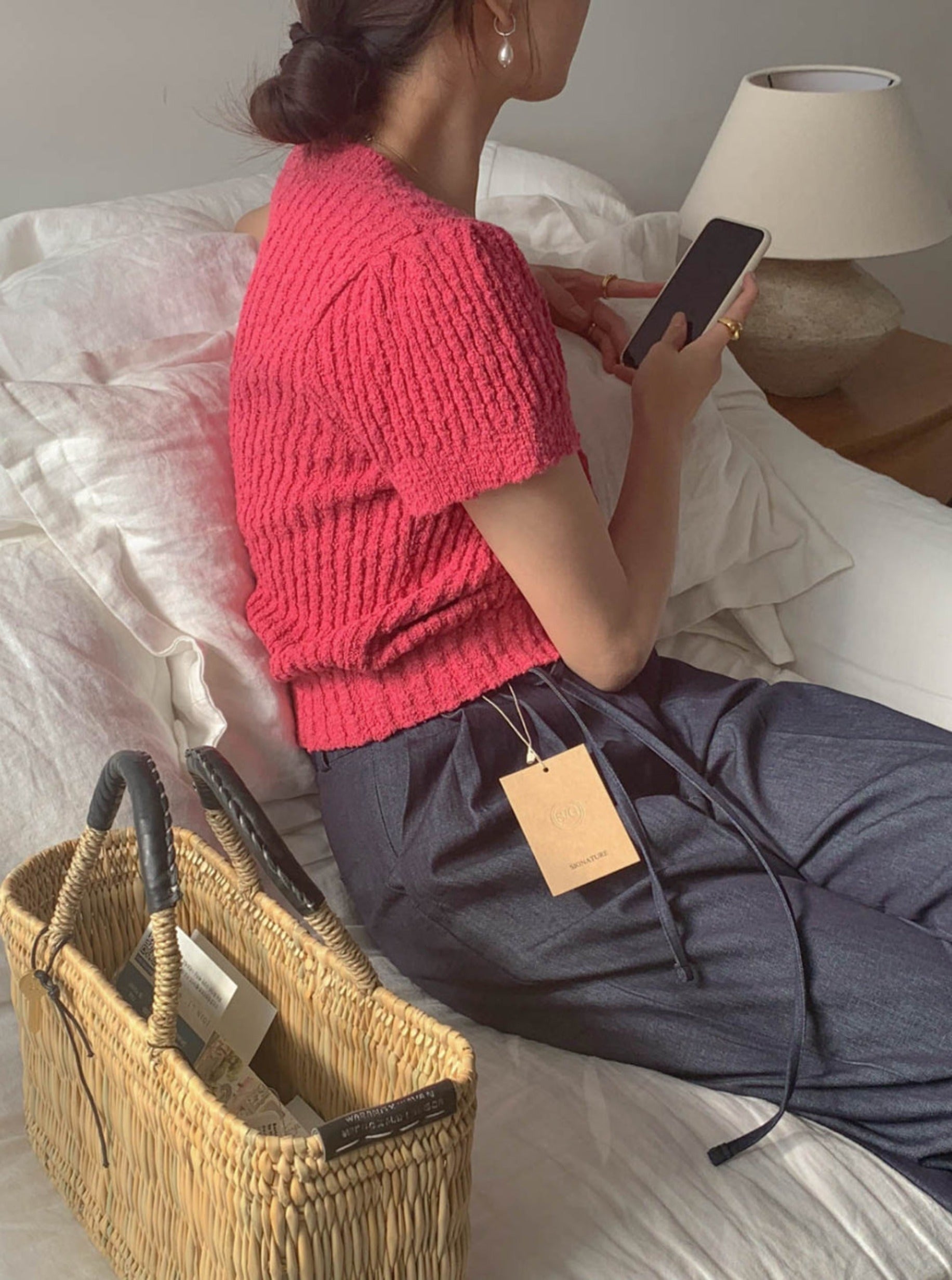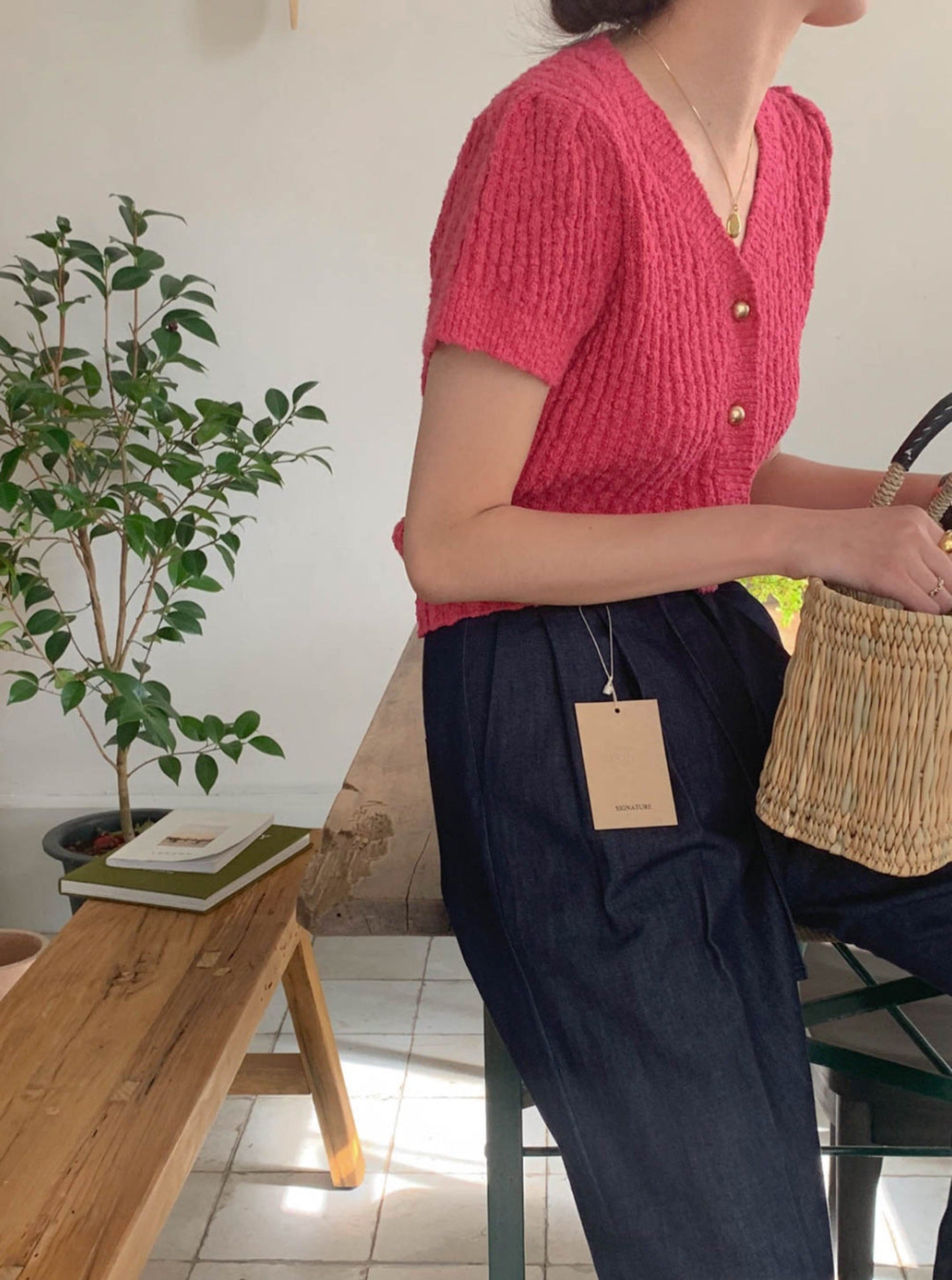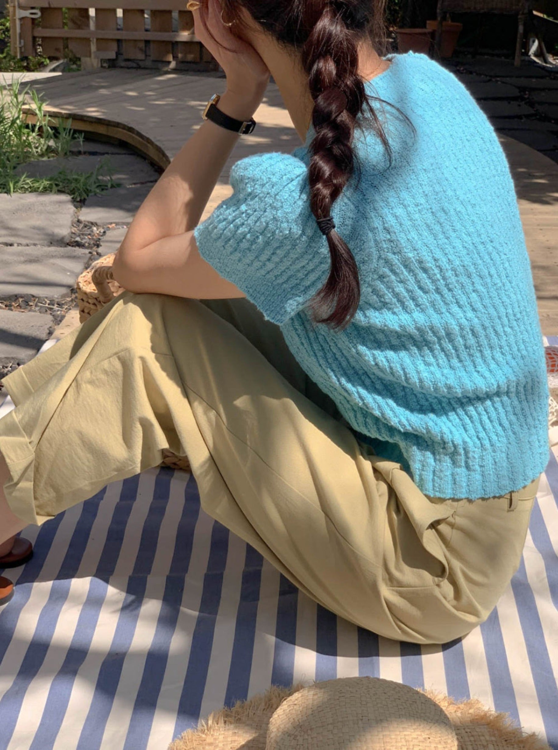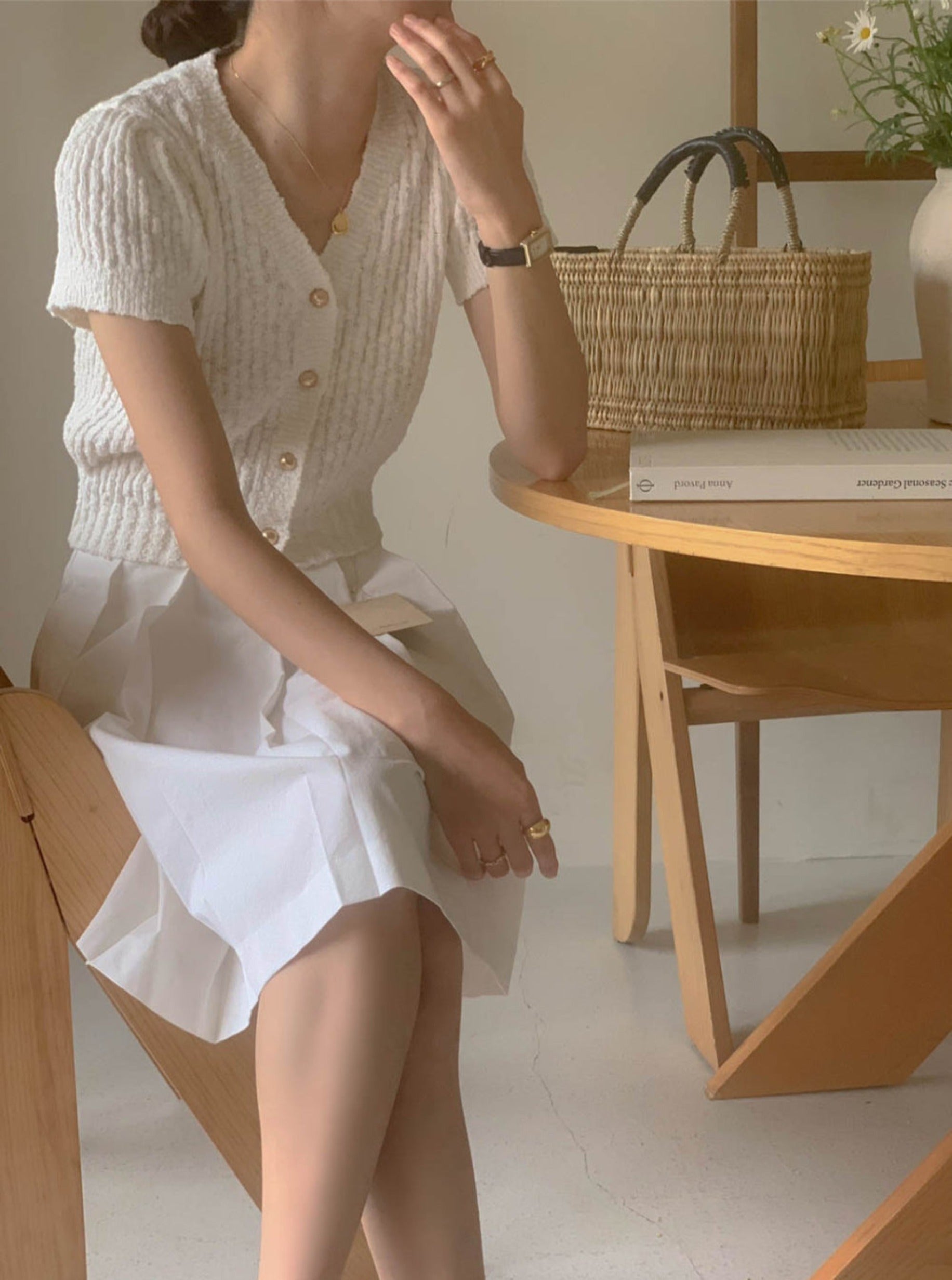 V neck, Button down, Short puff sleeve, Soft and cozy fabric