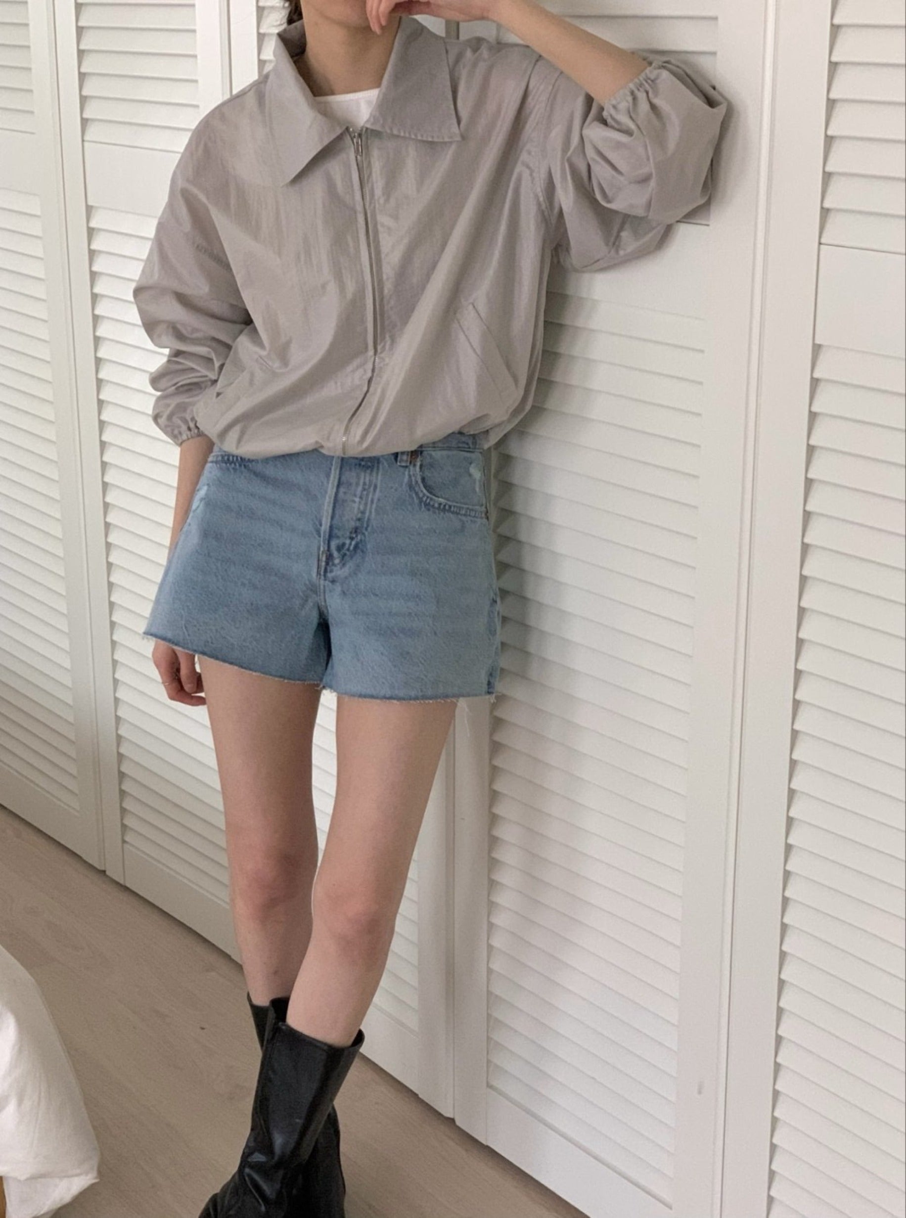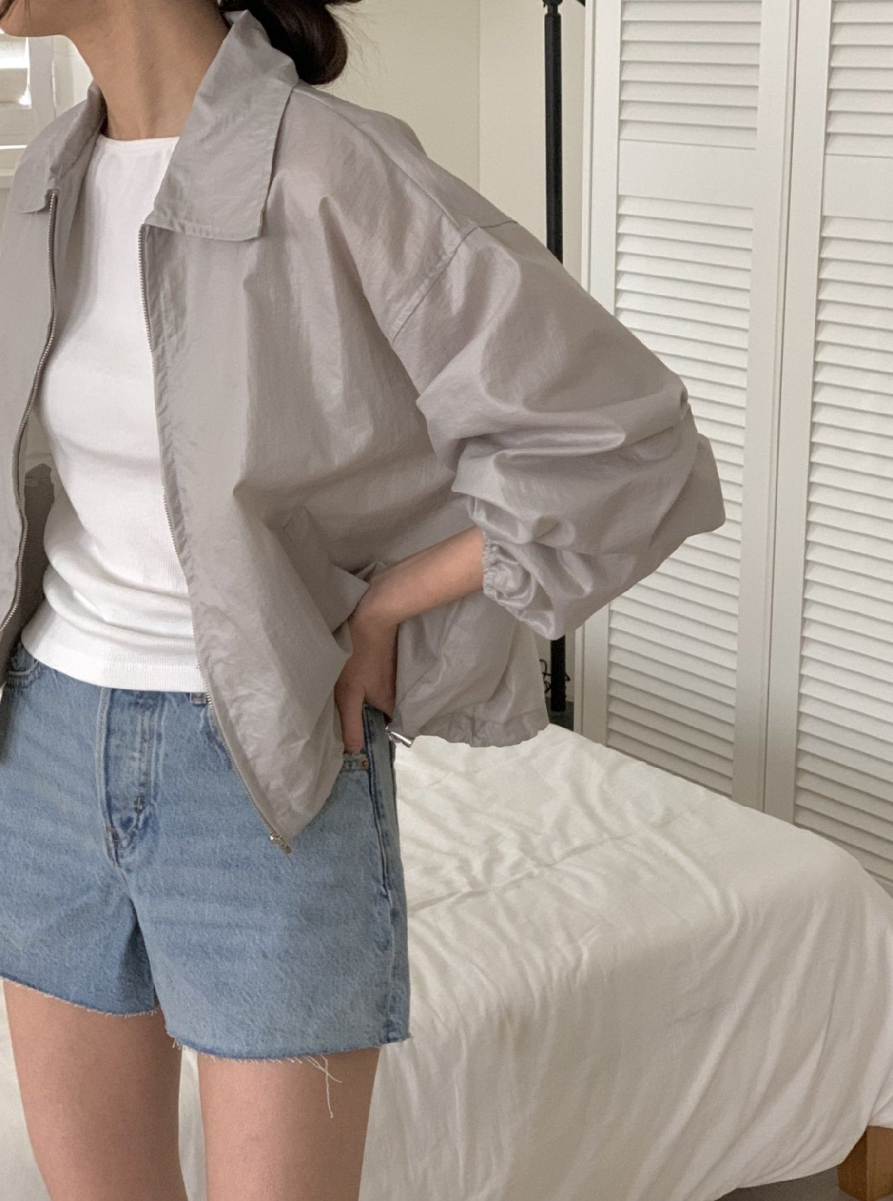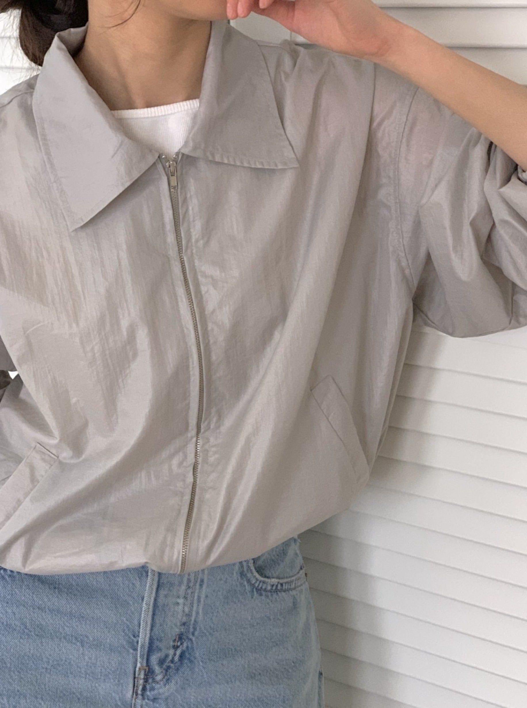 This jacket is featured in oversized, zipper with long sleeve.